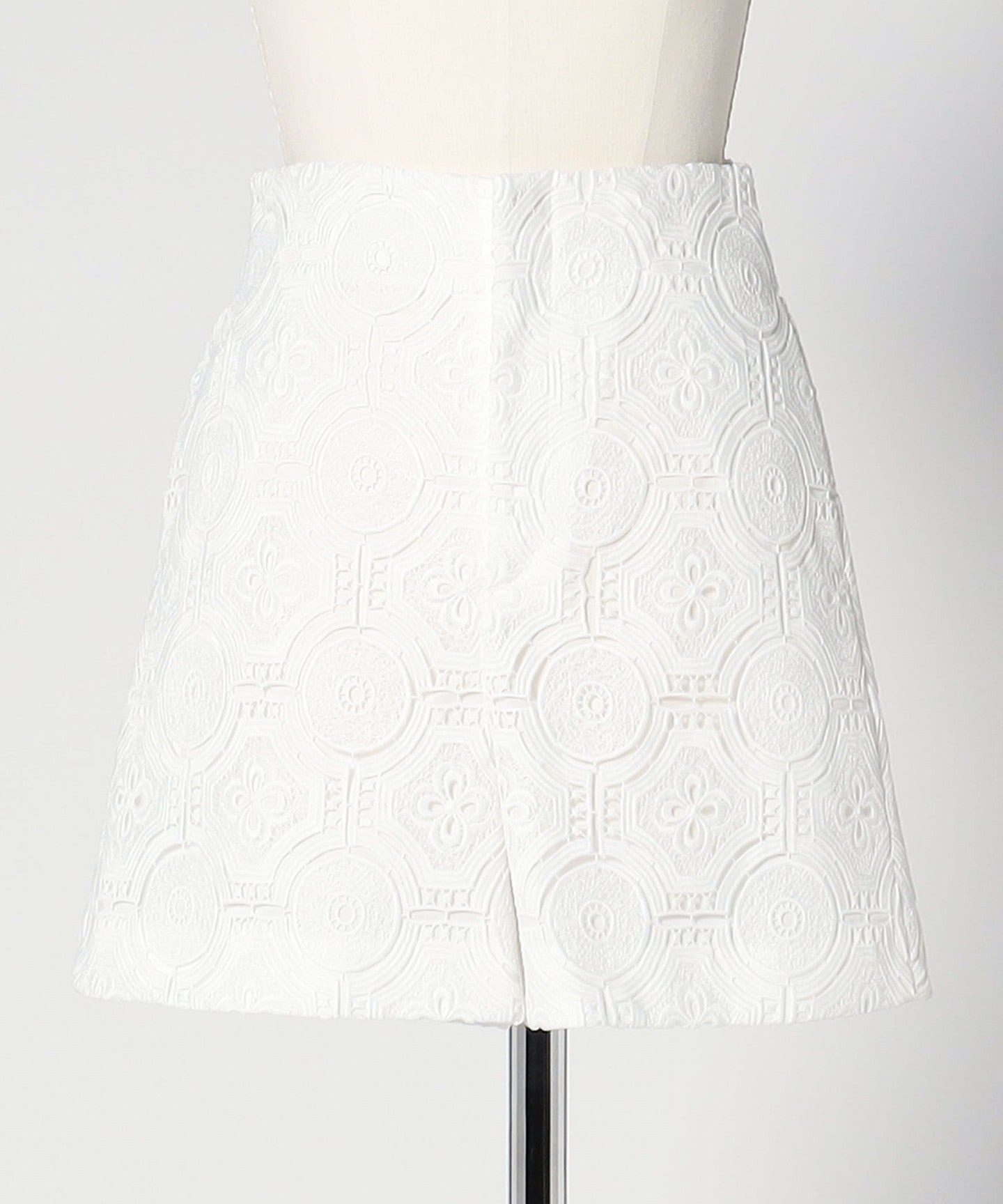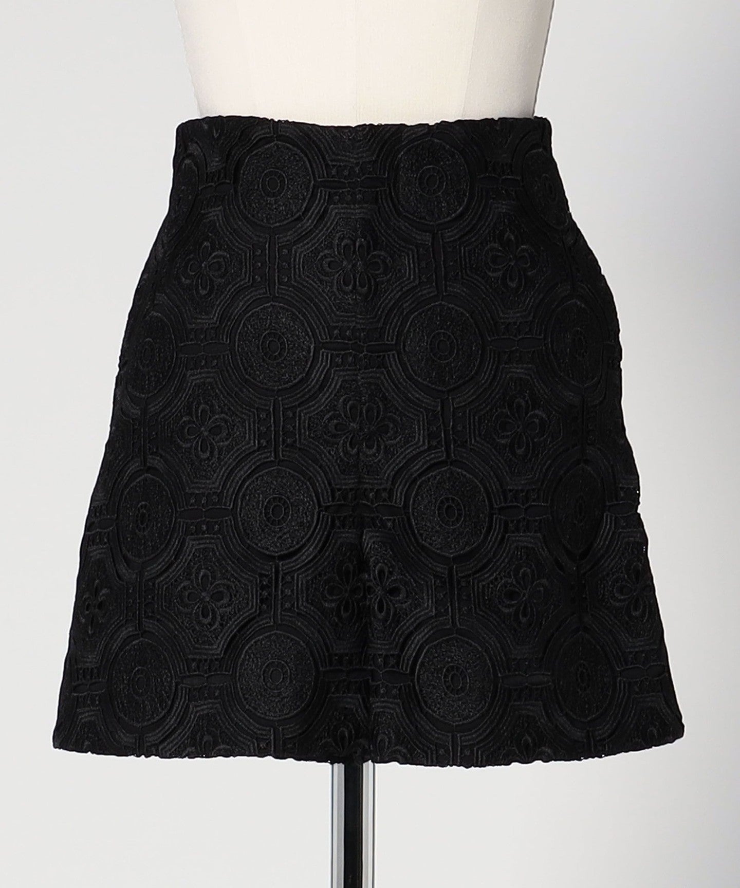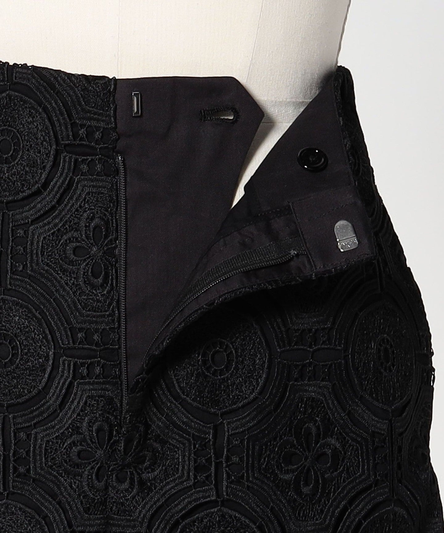 It is made of embroidered lace with an arabesque pattern.