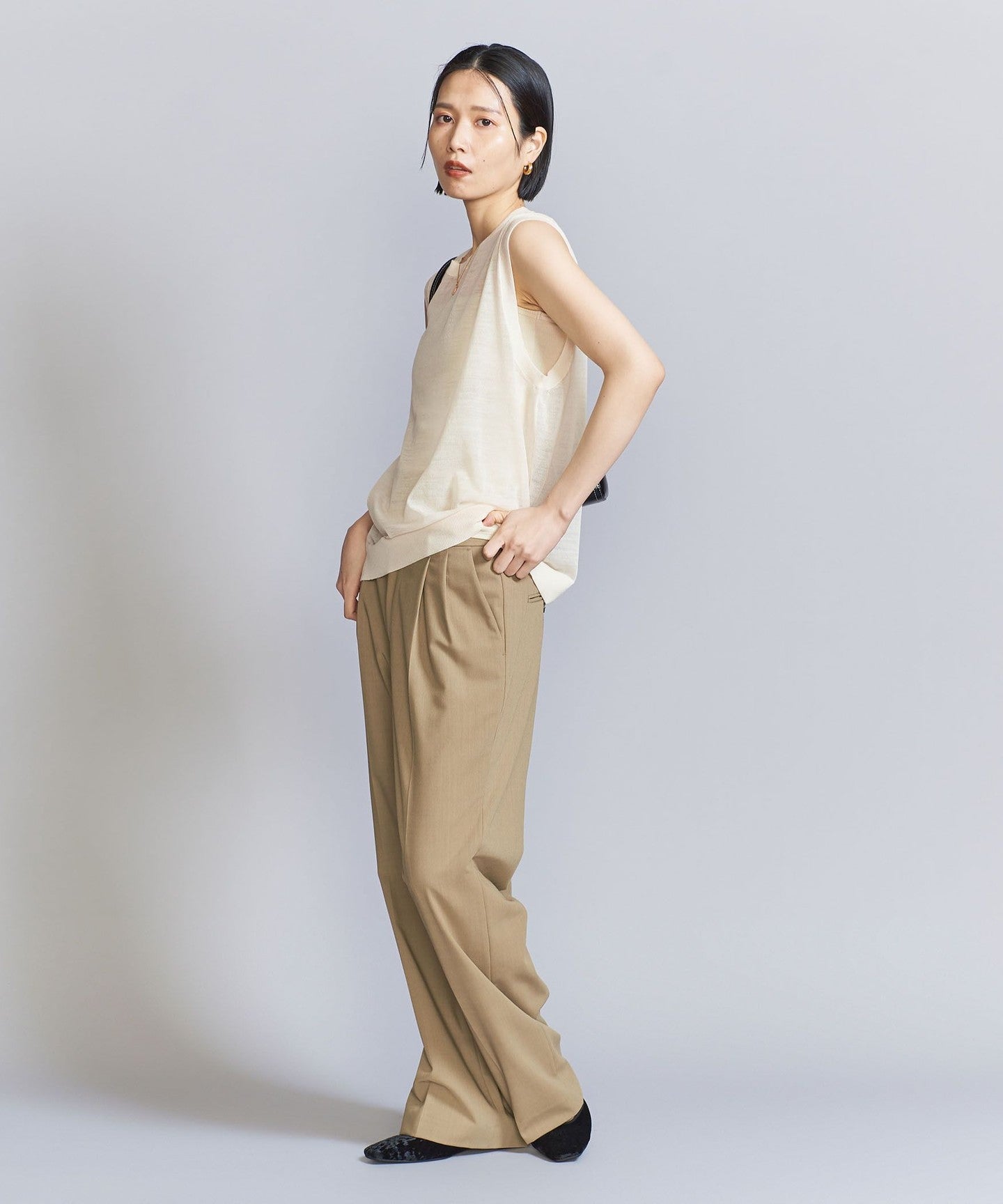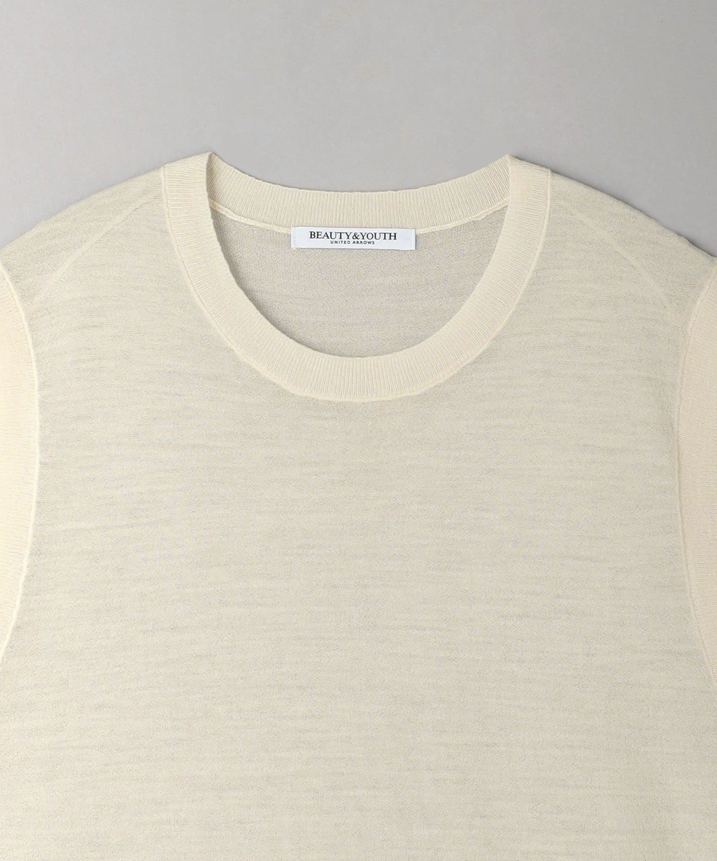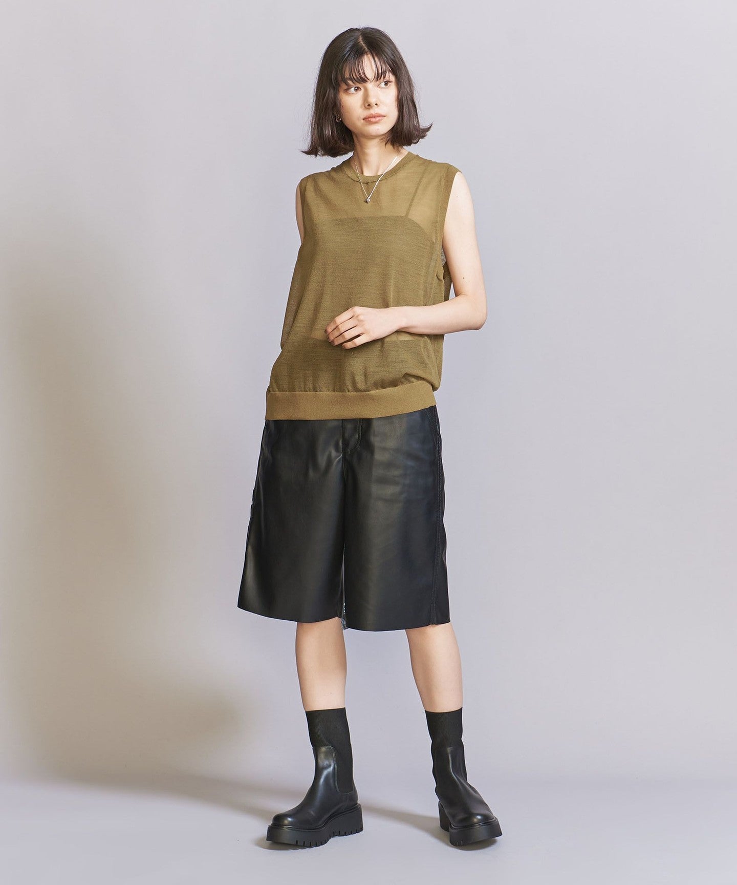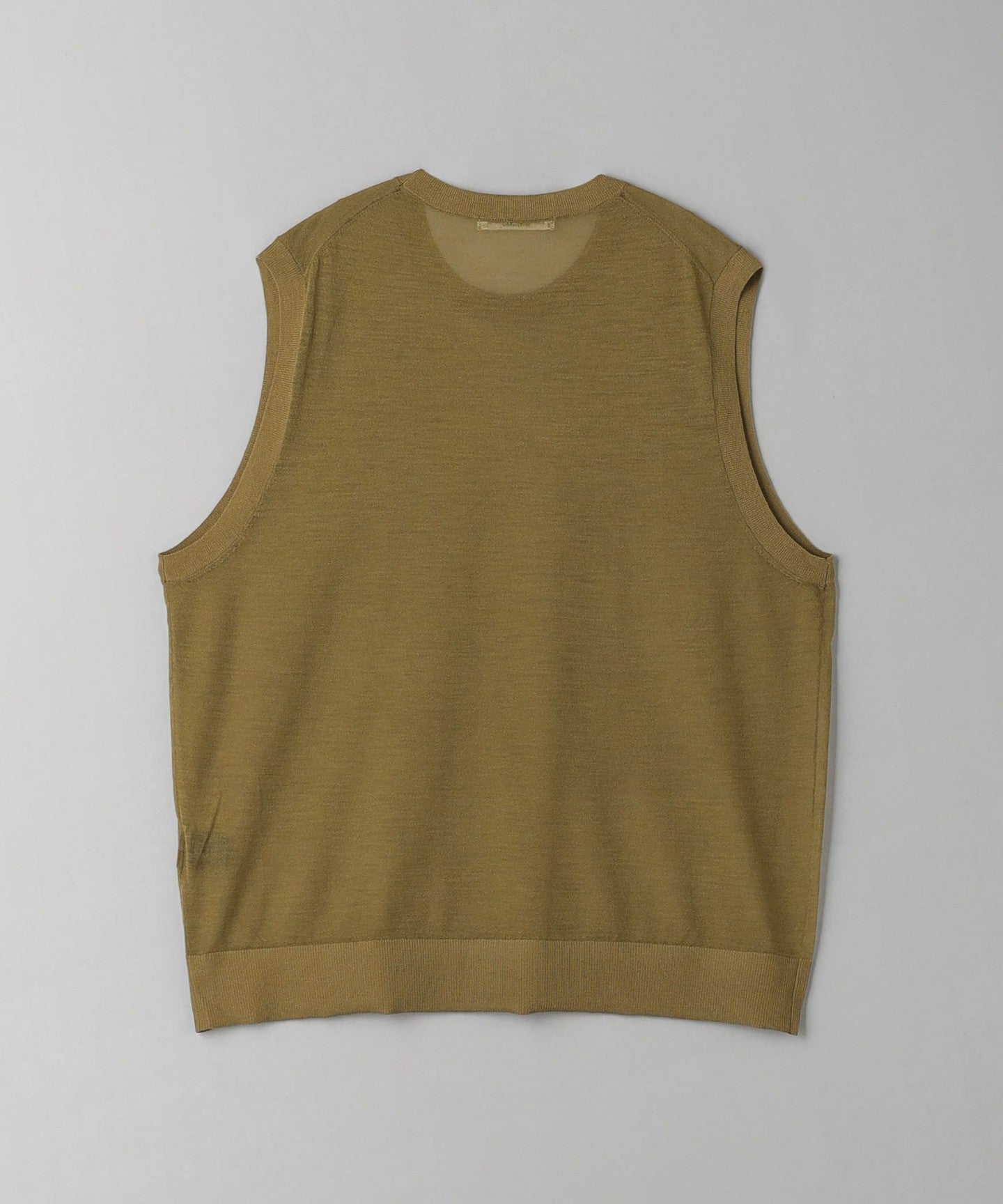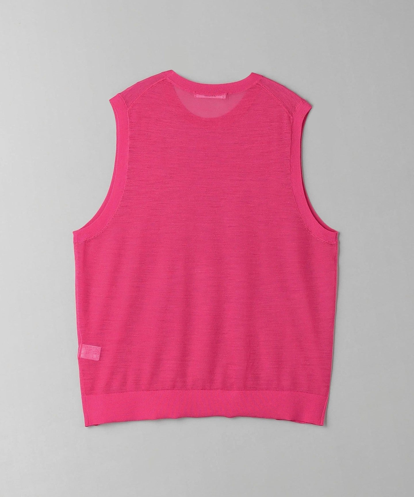 A sheer knit sleeveless top made from a high-gauge wool blend material.