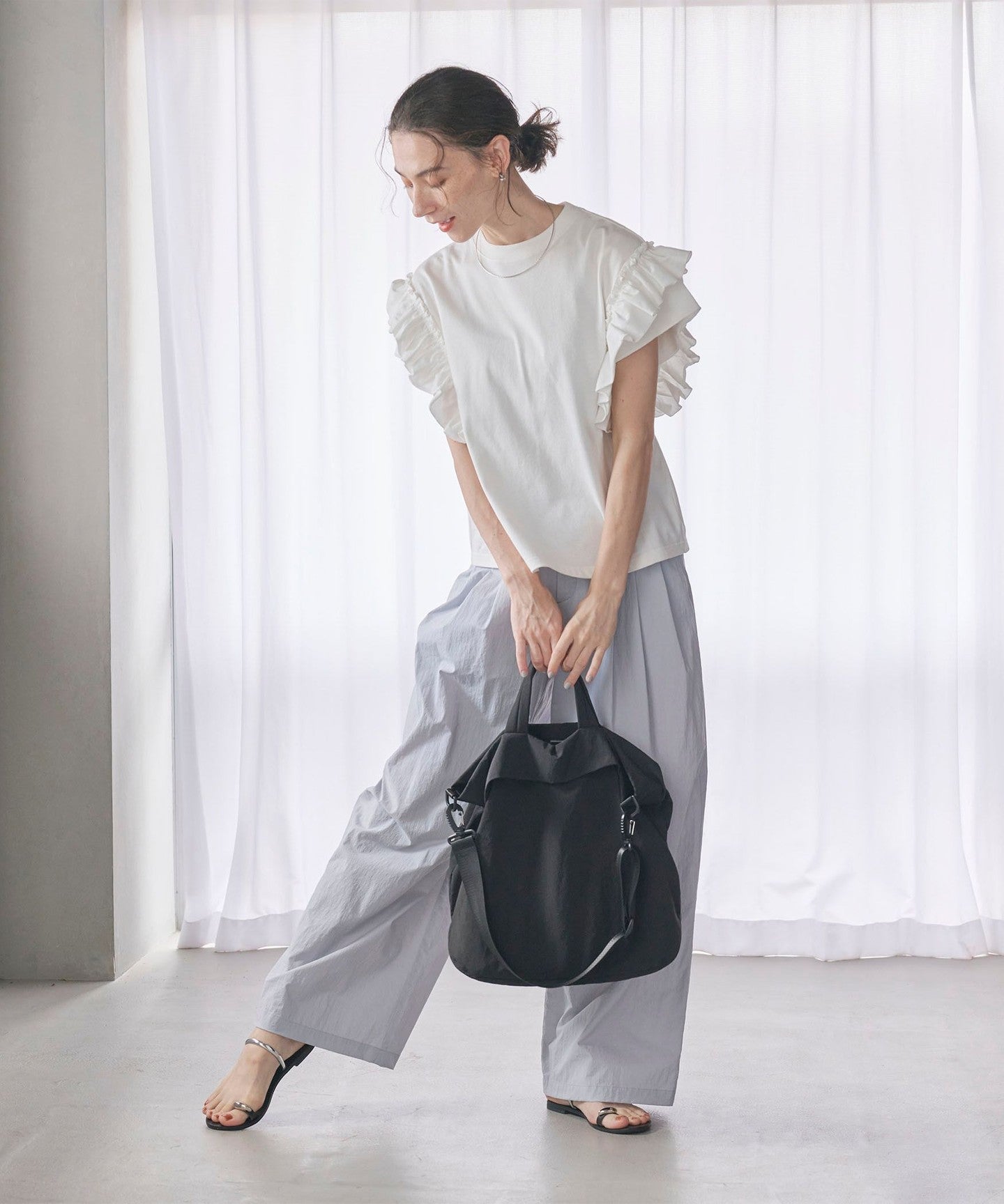 The outer material is made of matte nylon with a crisp feel, giving it an elegant impression without being too casual.