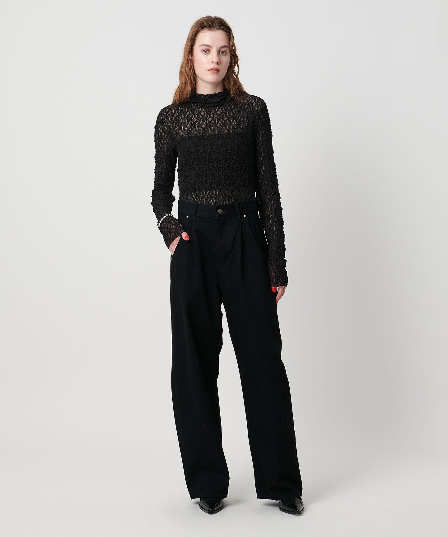 We also recommend adding a touch of glamour by letting a lace hood peek out from the collar of a blouson or vest.