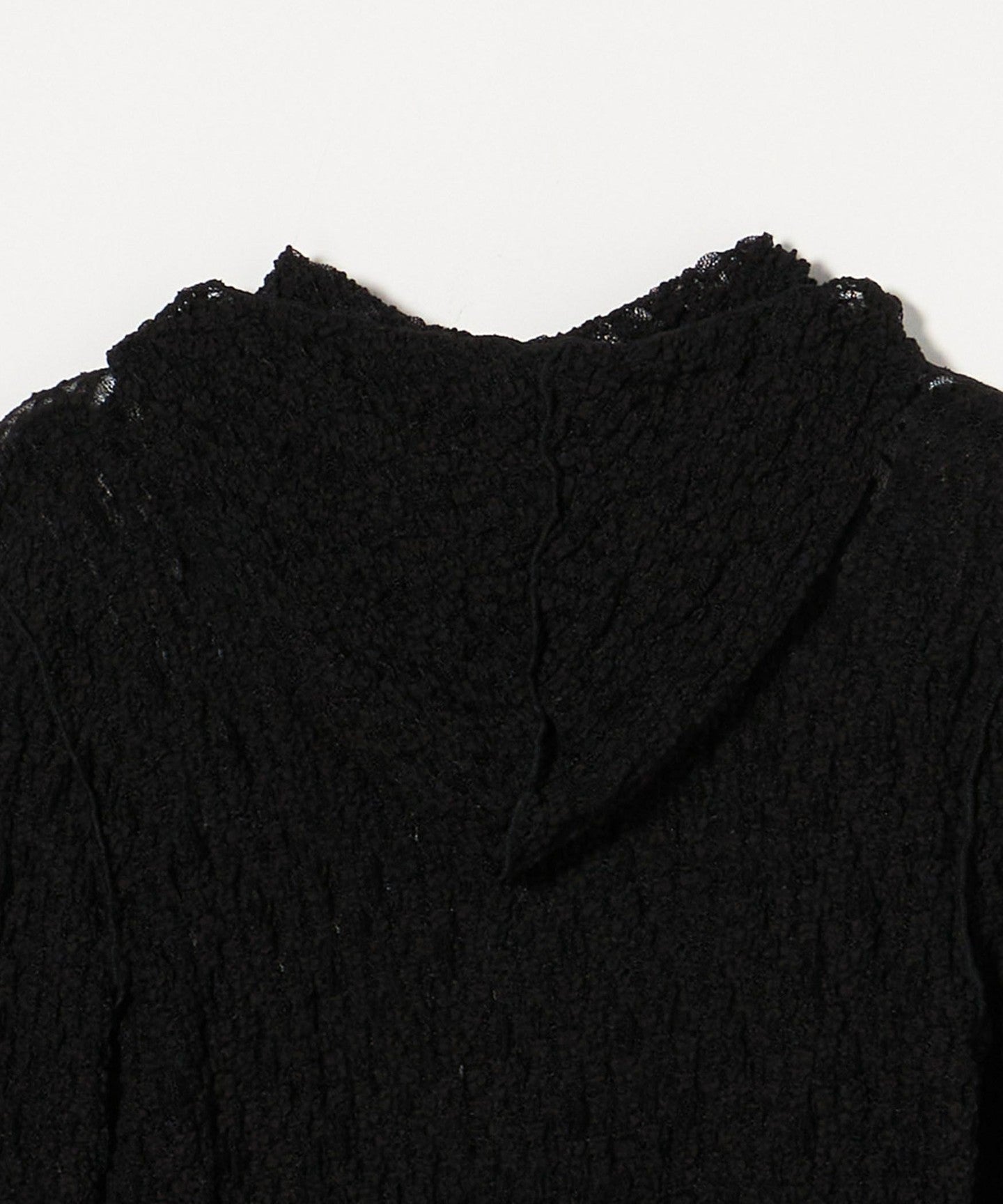 A sheer, feminine hoodie-style cut-and-sew top.
