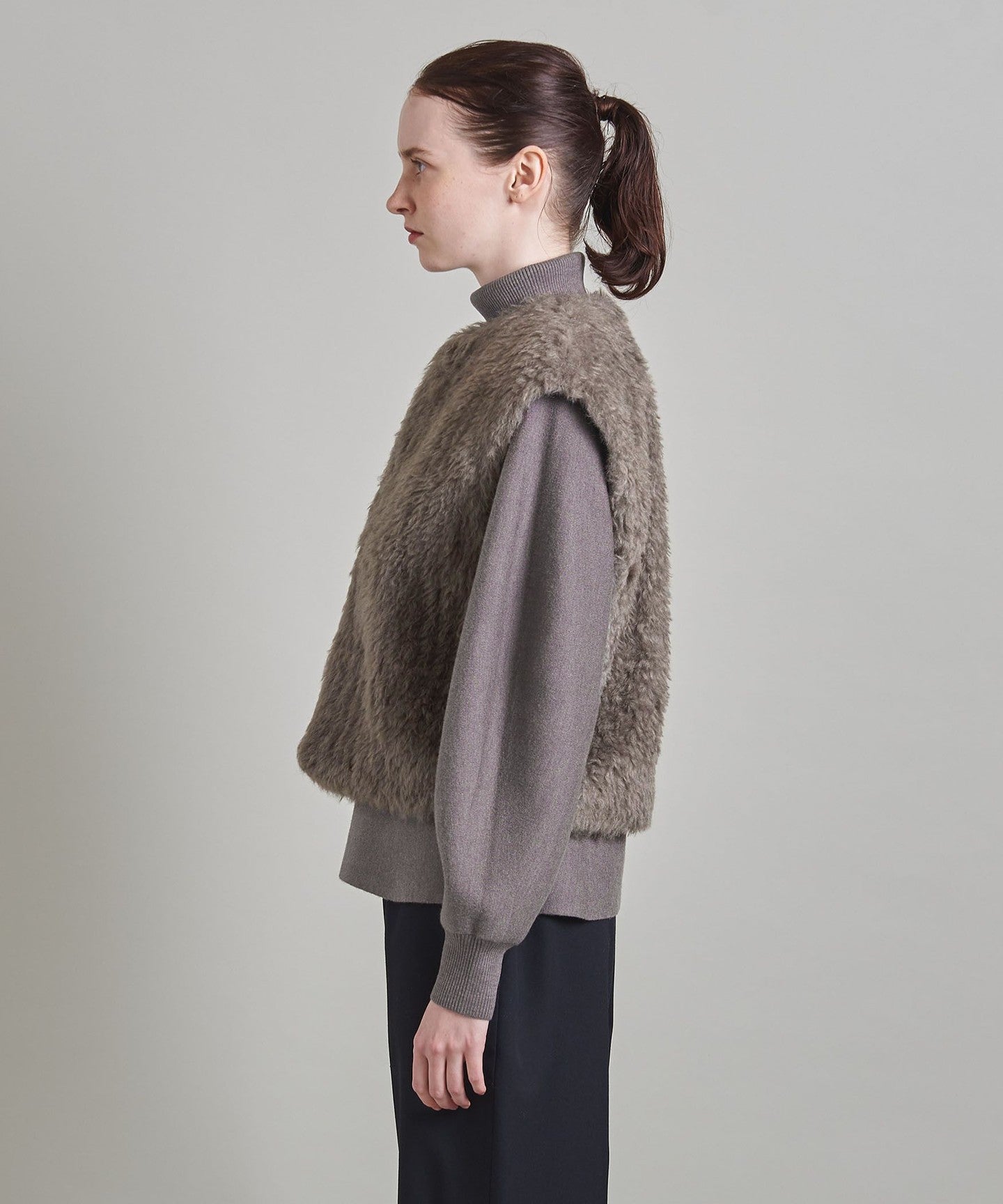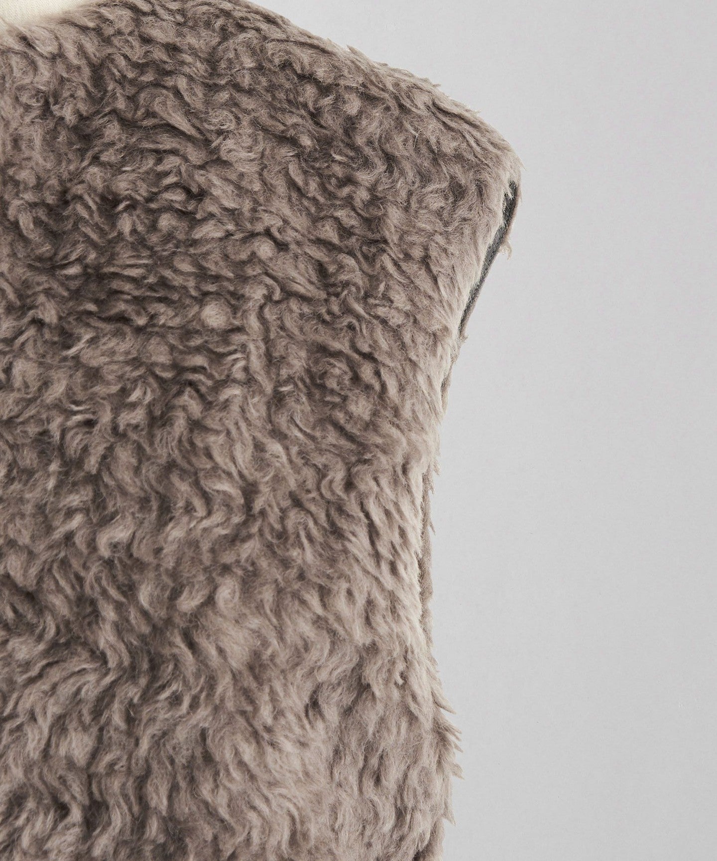 This warm vest has a gorgeous impression, but also has a not-too-long pile and a chic grayish-beige color.