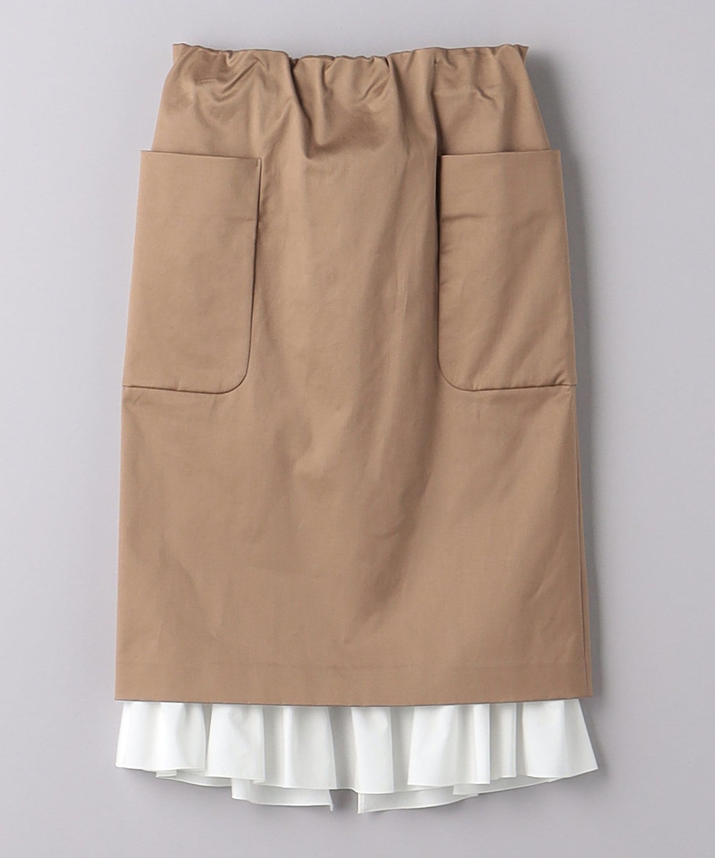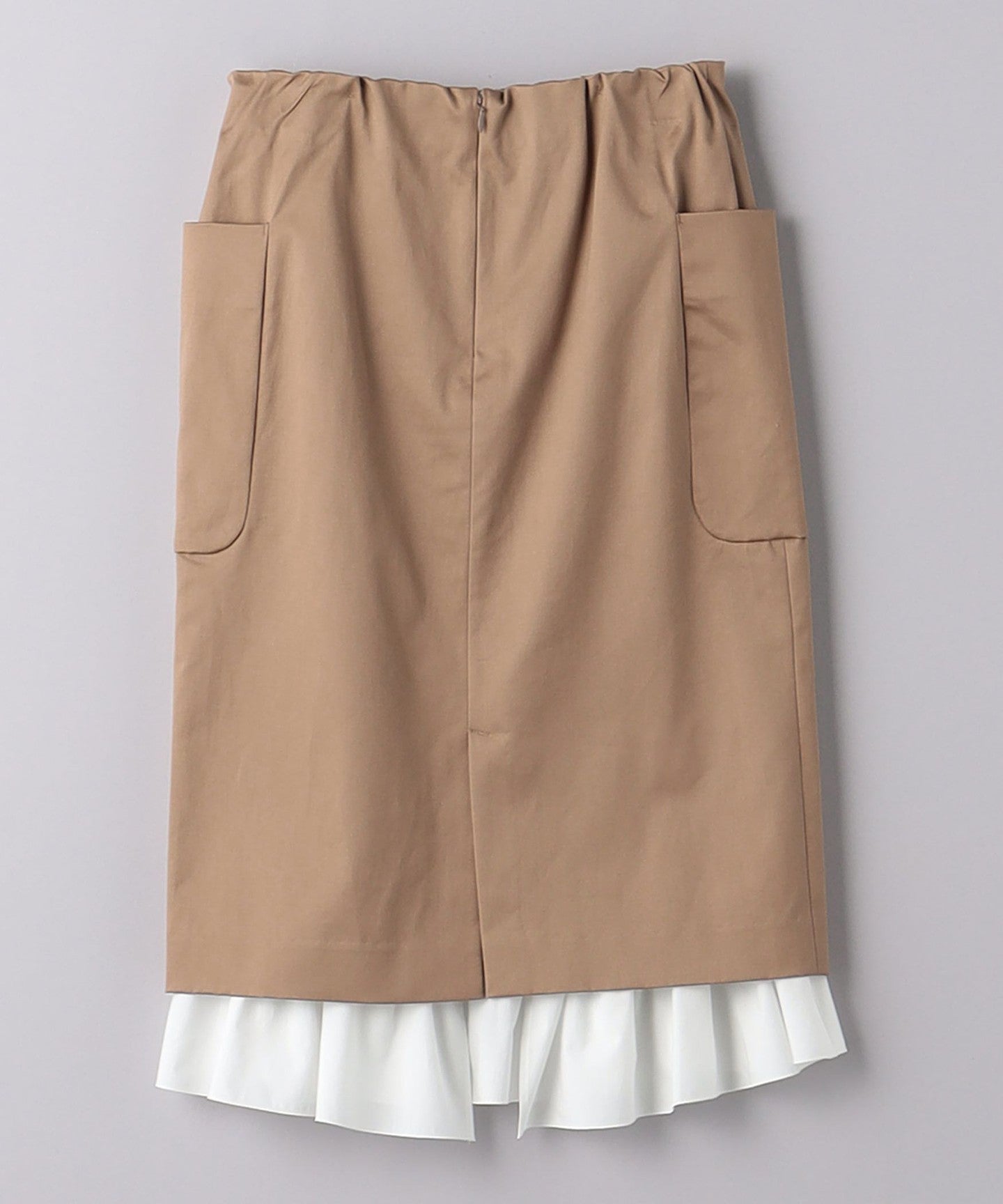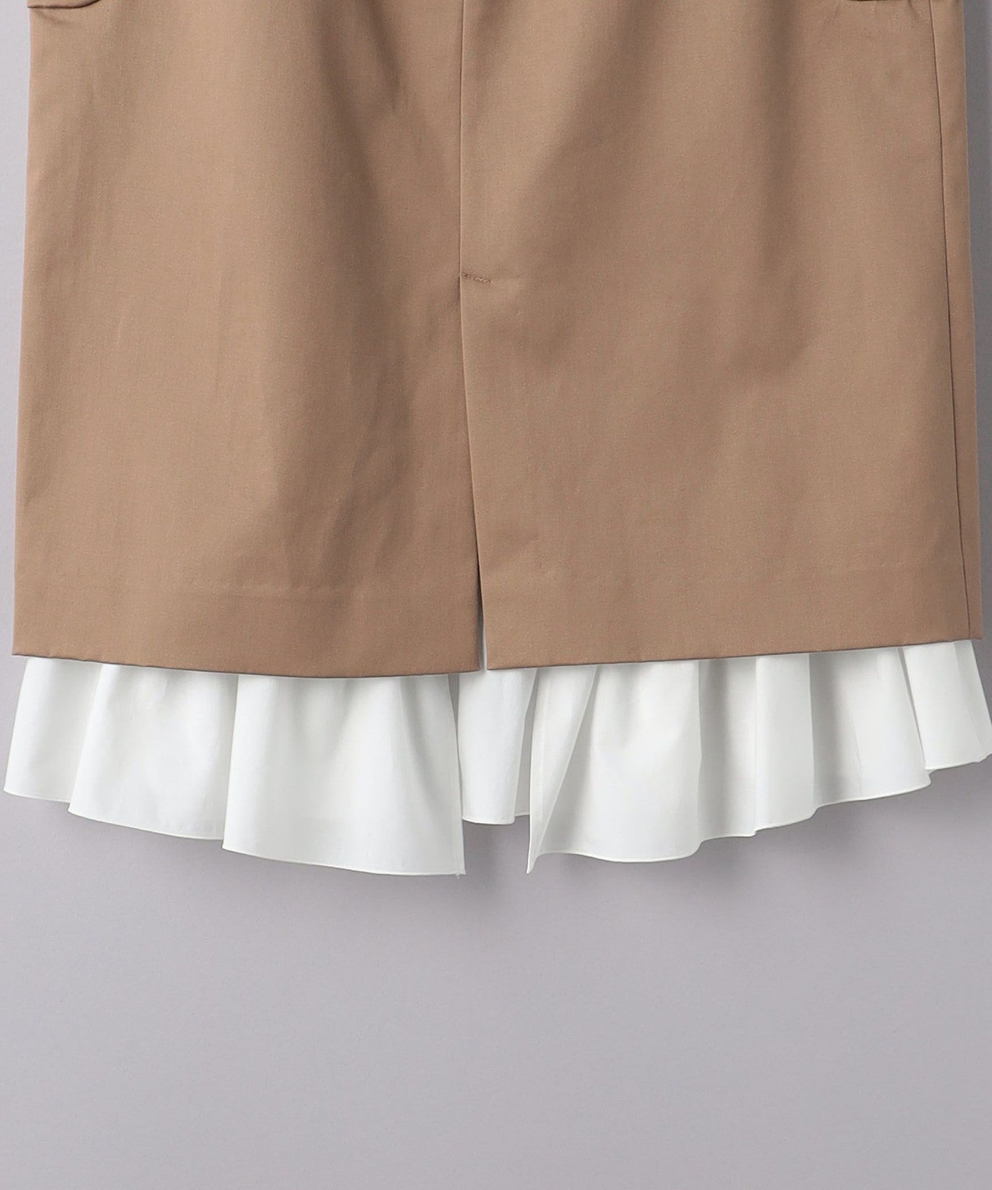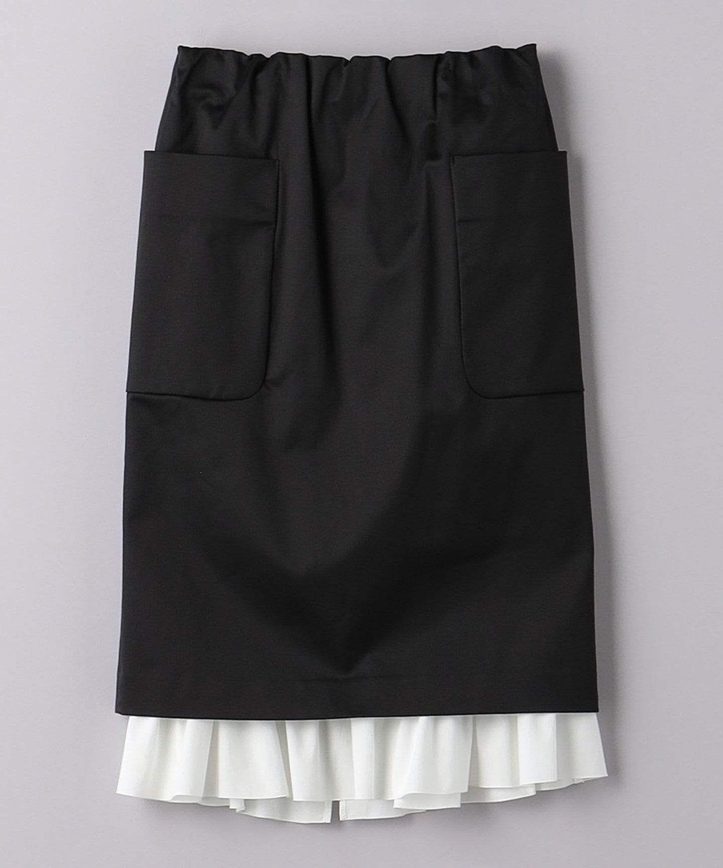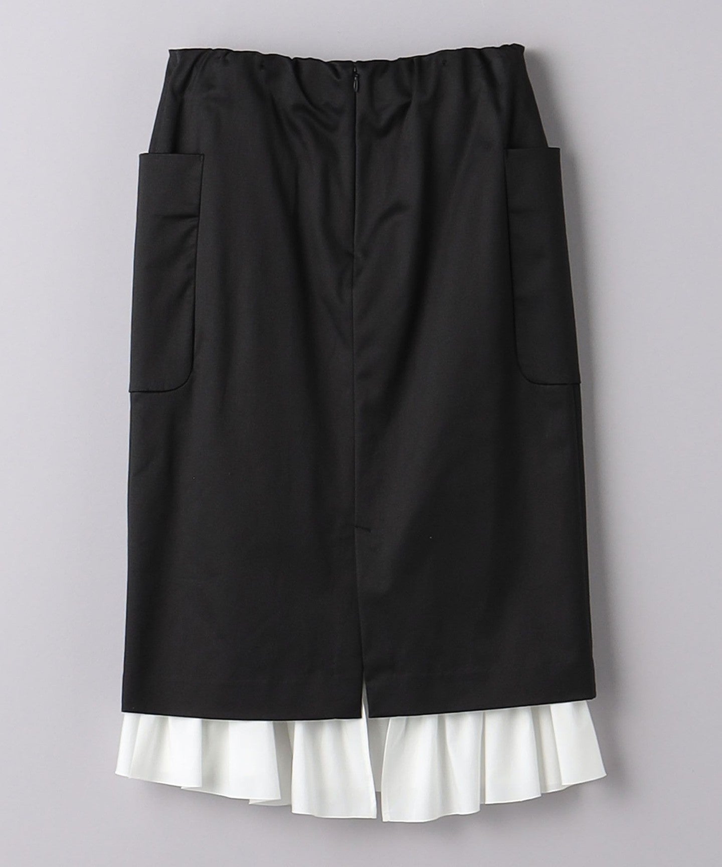A combination design of a tight skirt and an underskirt with a ruffled hem.