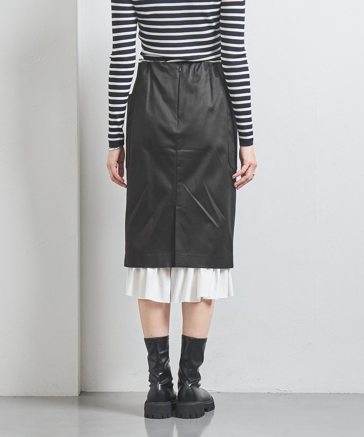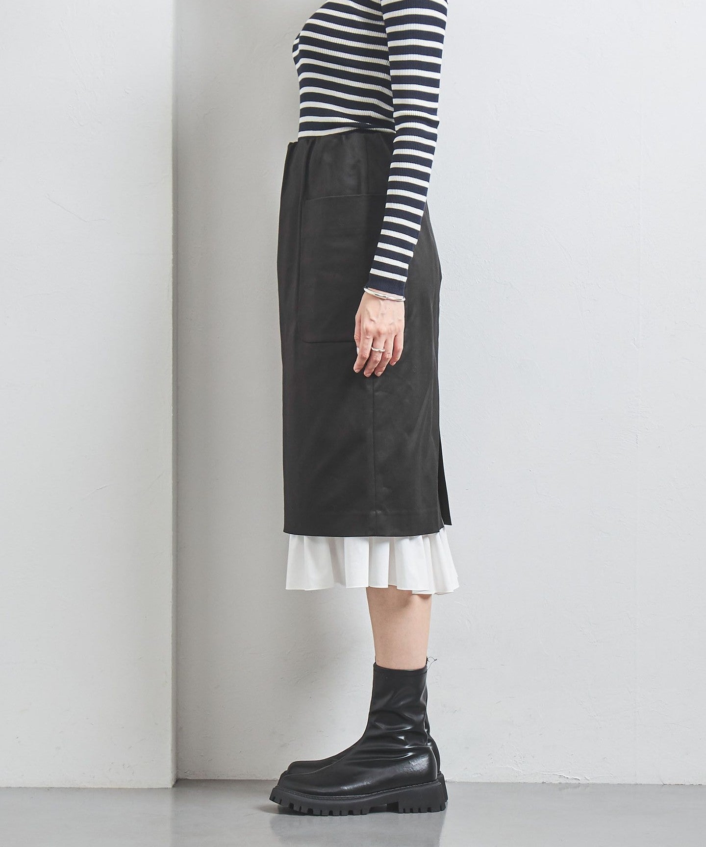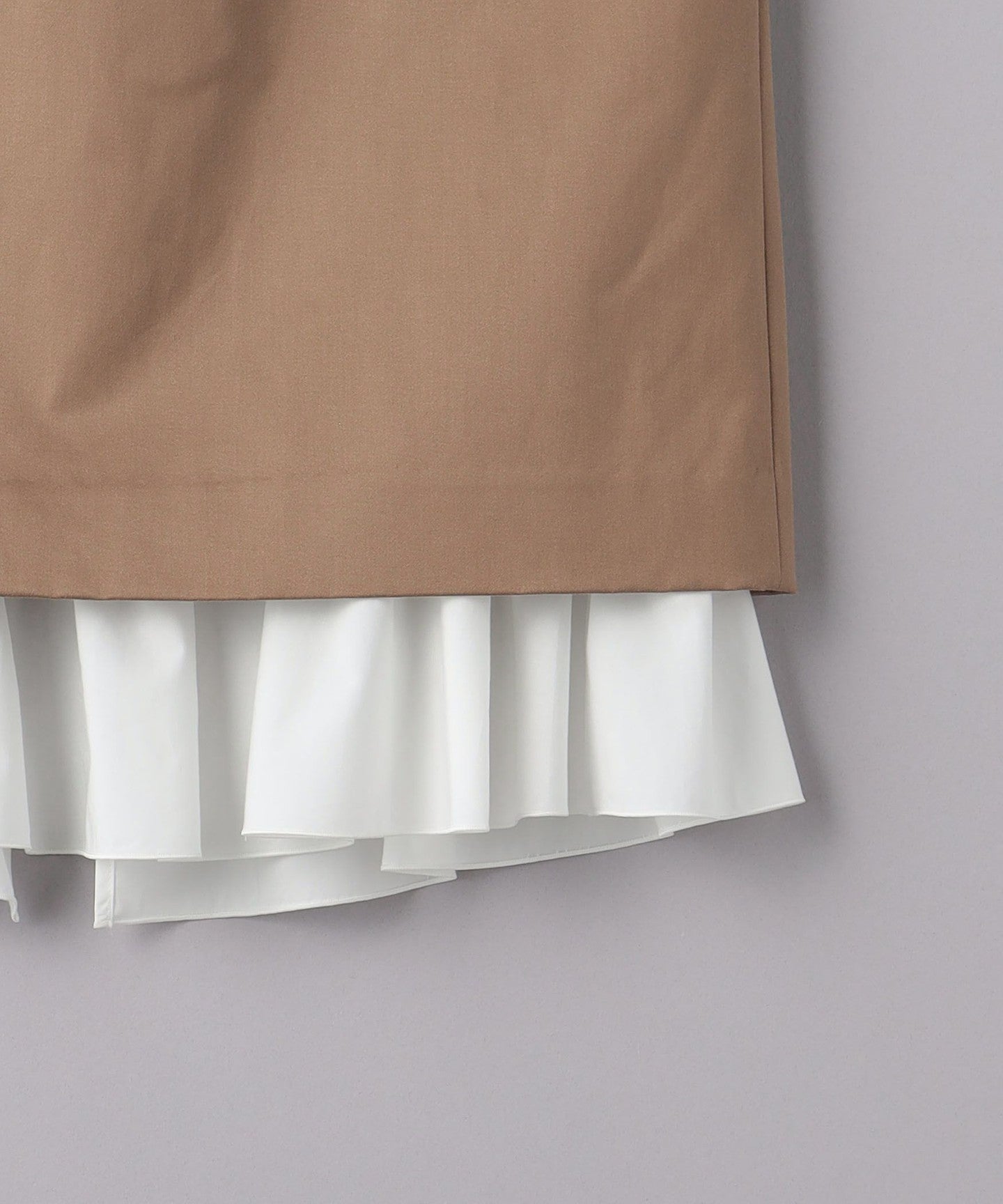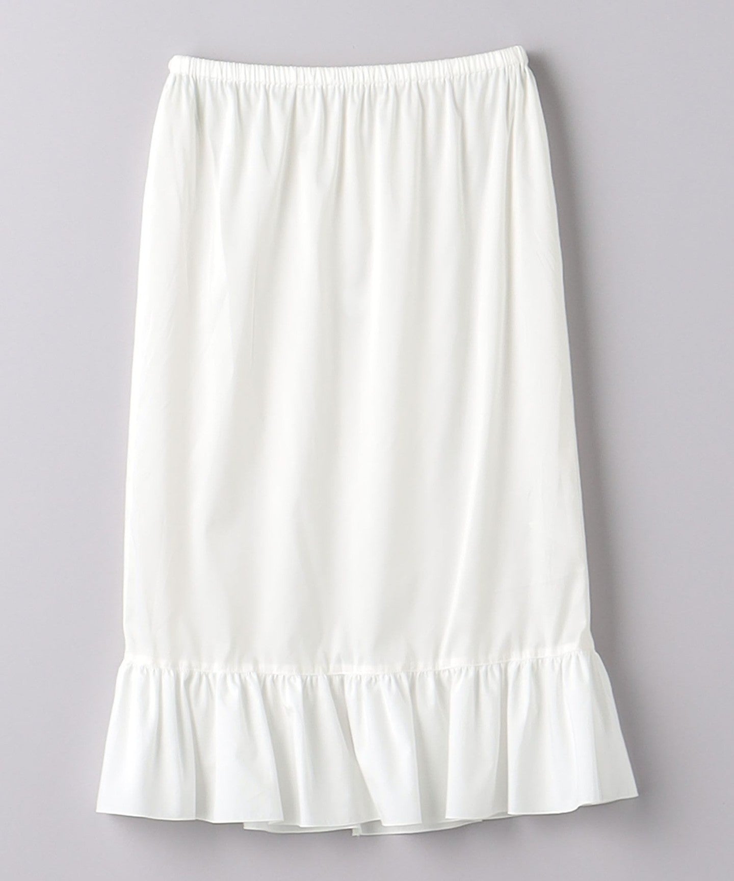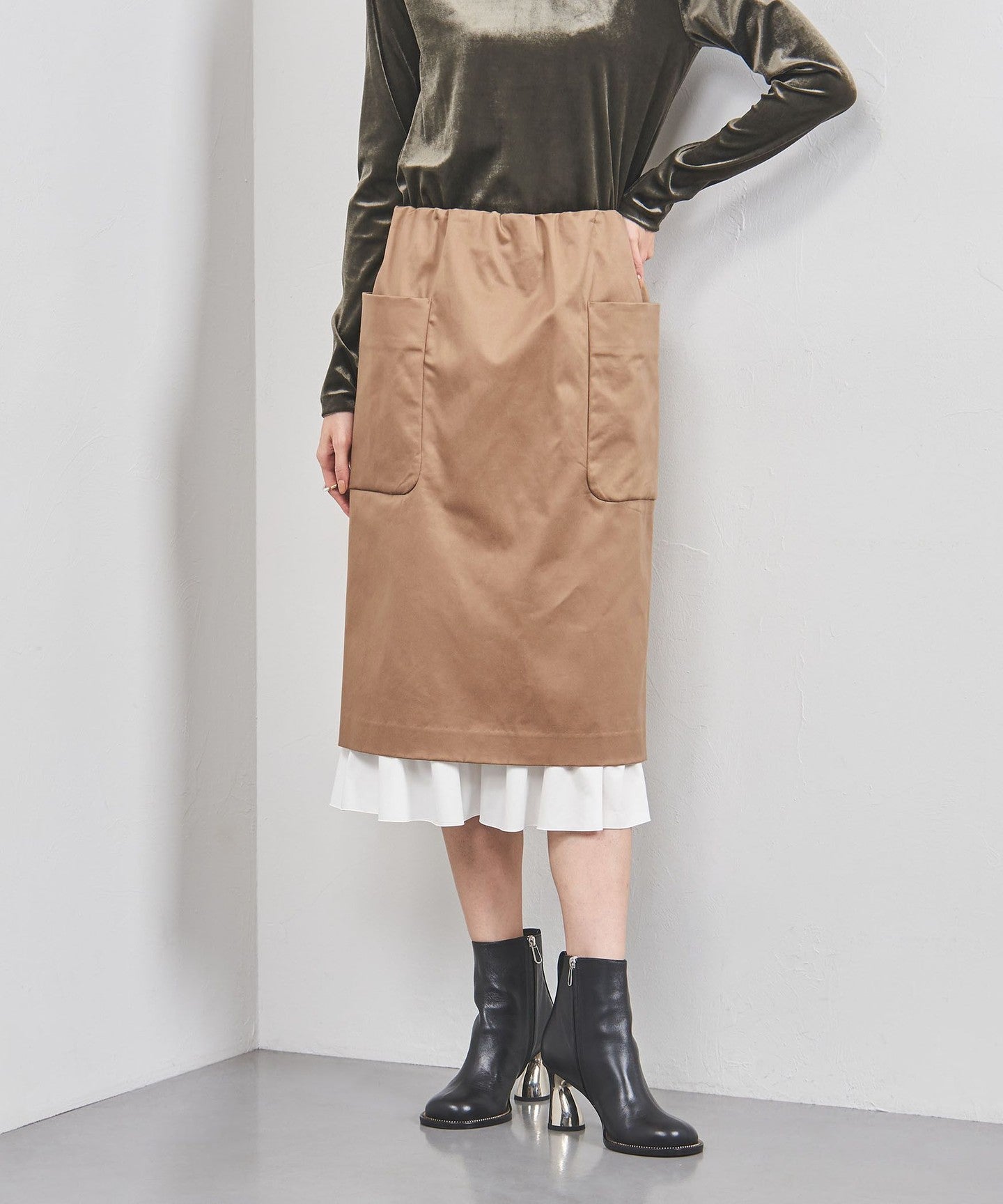 A combination design of a tight skirt and an underskirt with a ruffled hem.