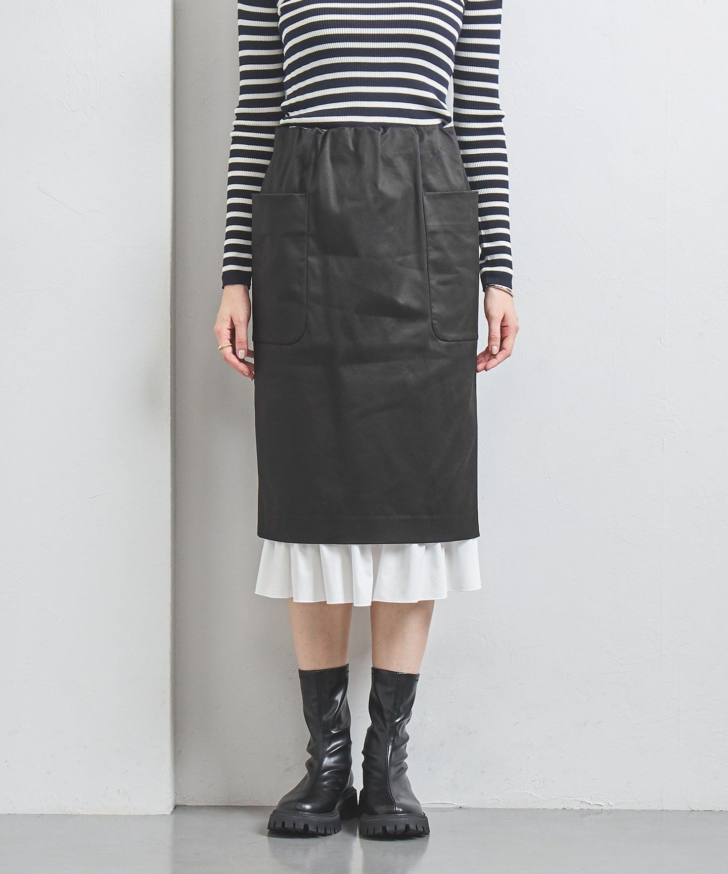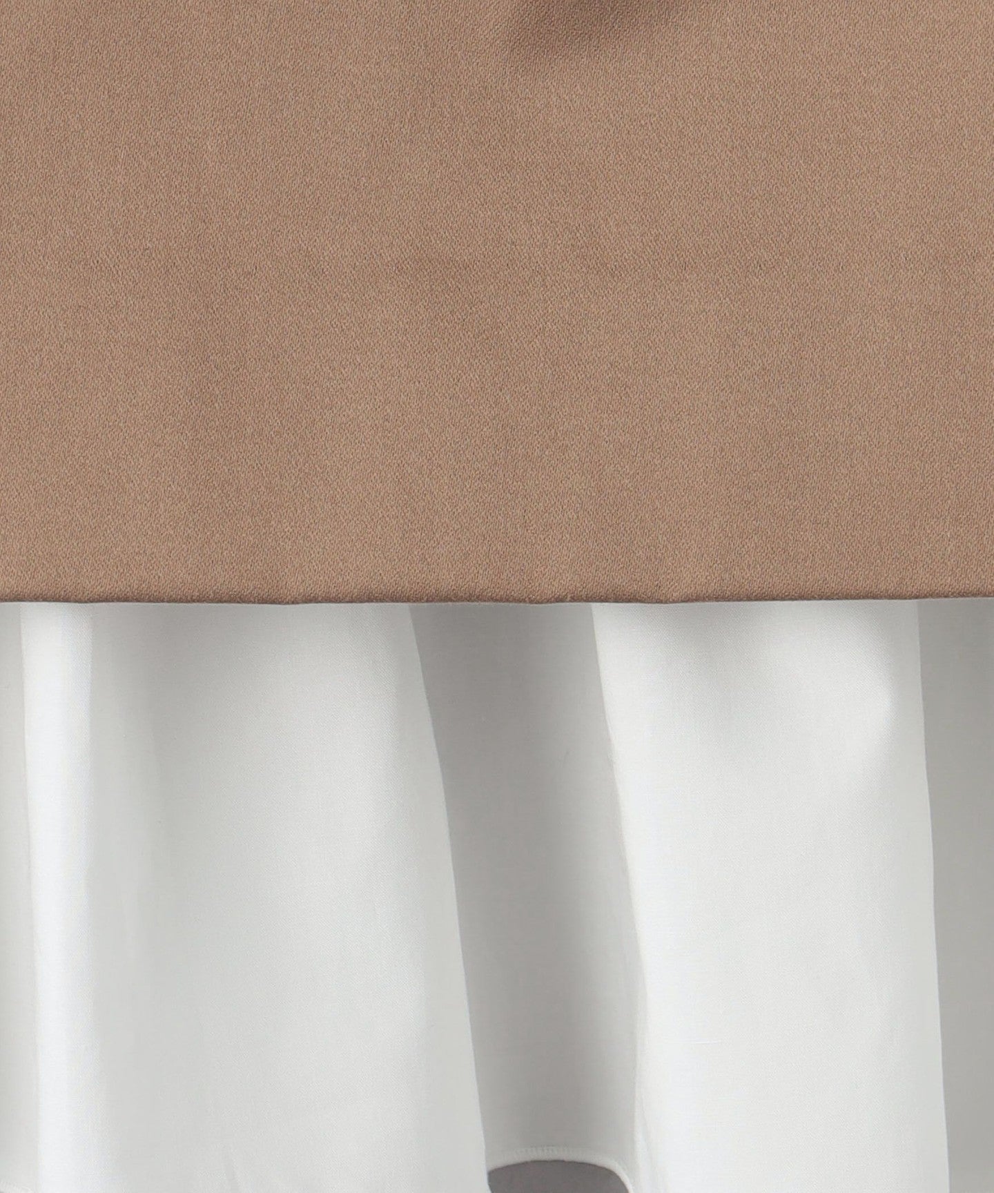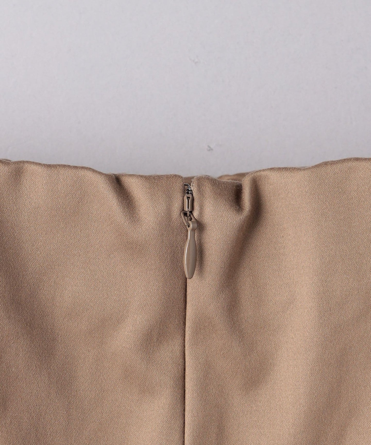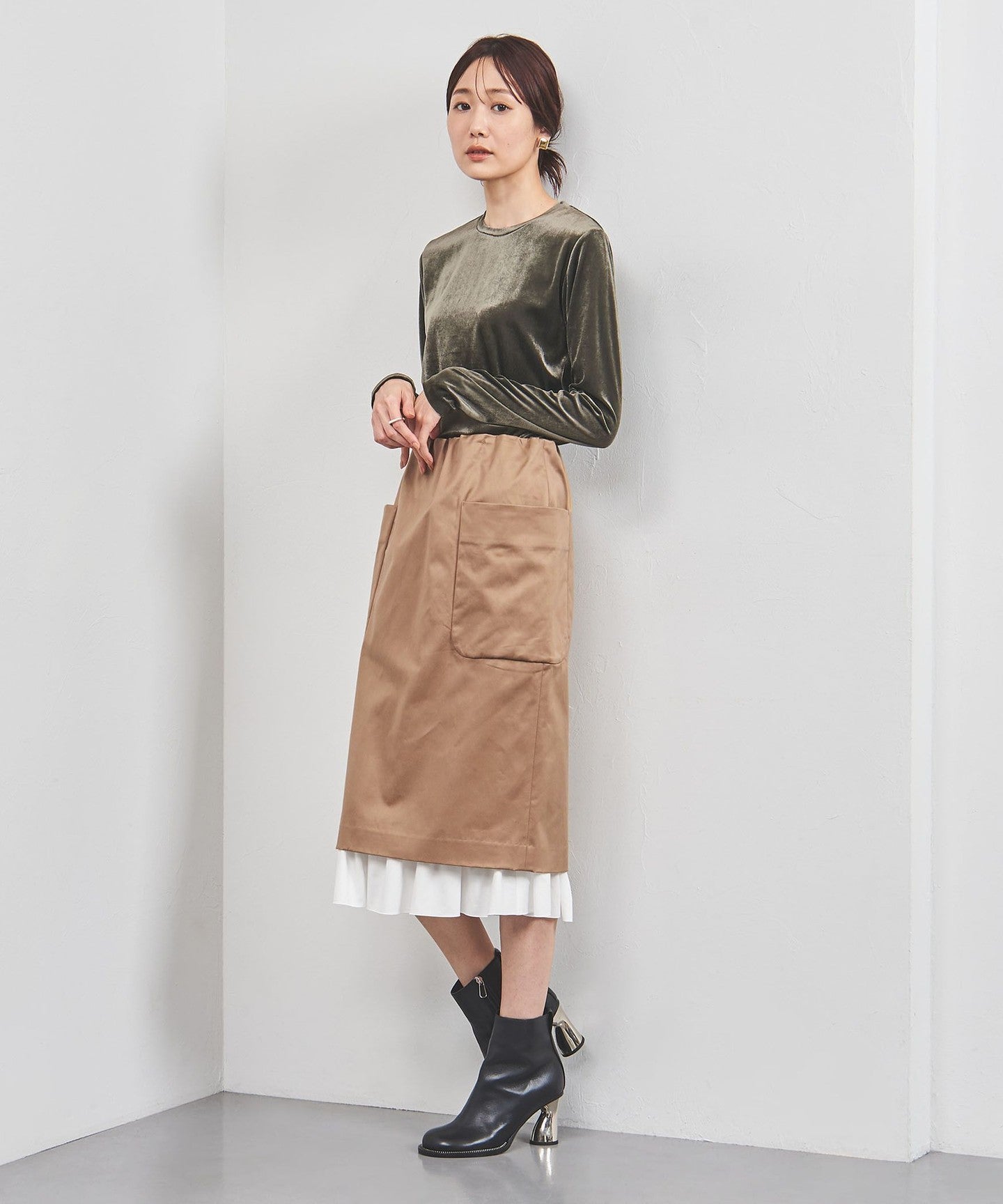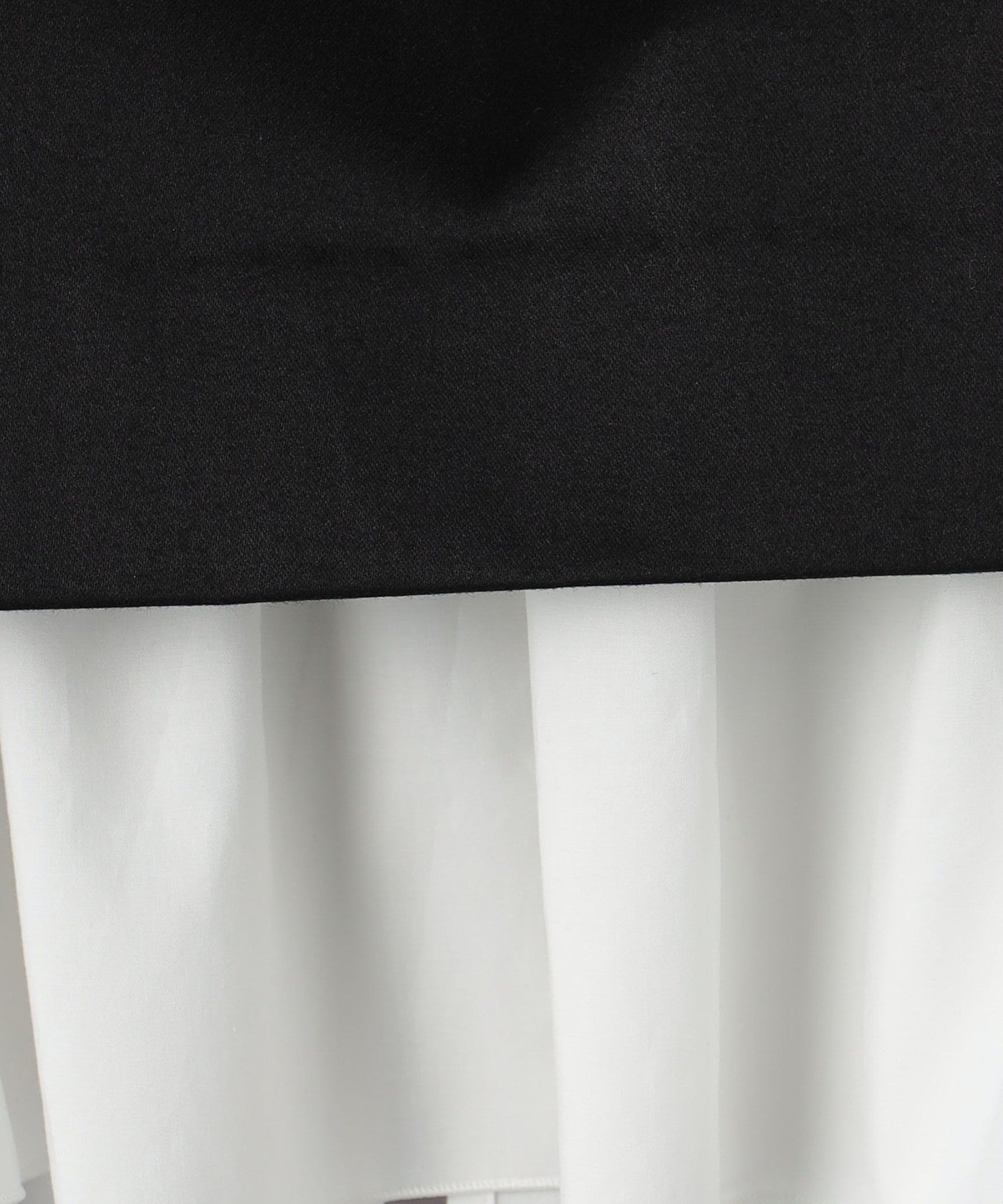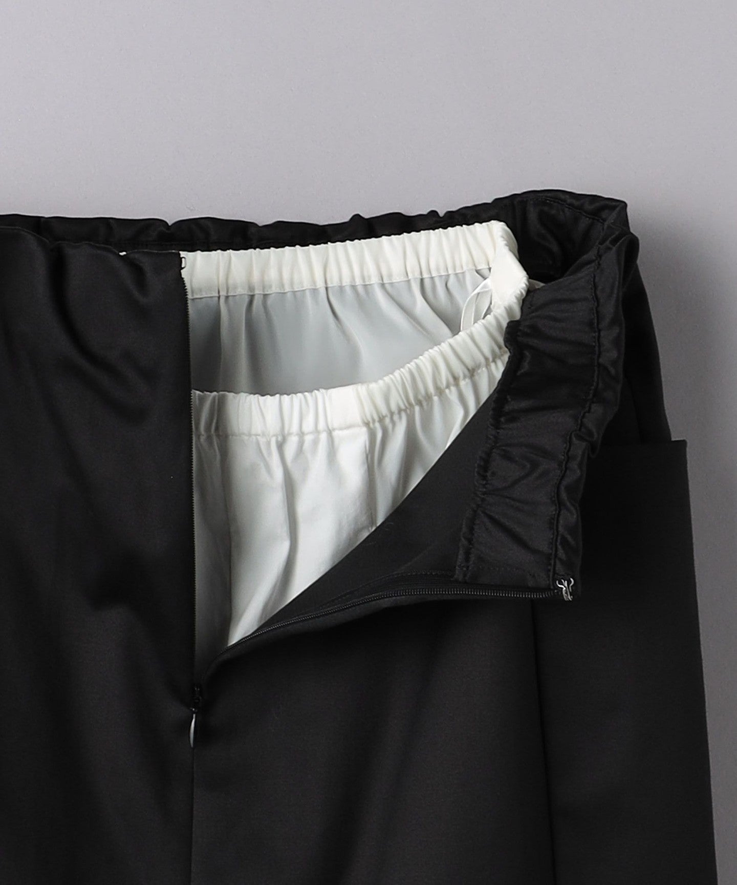 A combination design of a tight skirt and an underskirt with a ruffled hem.