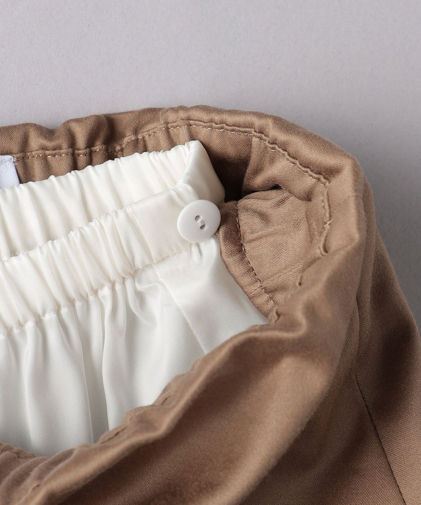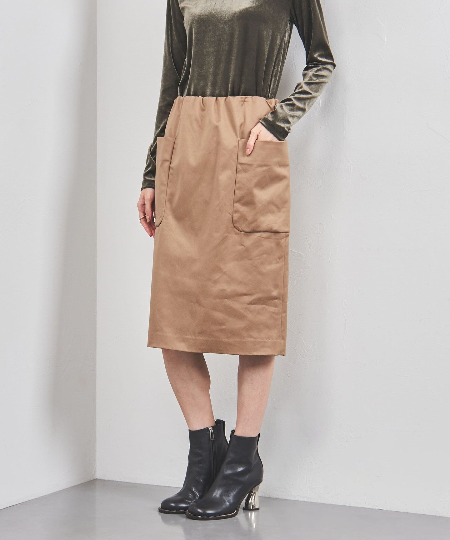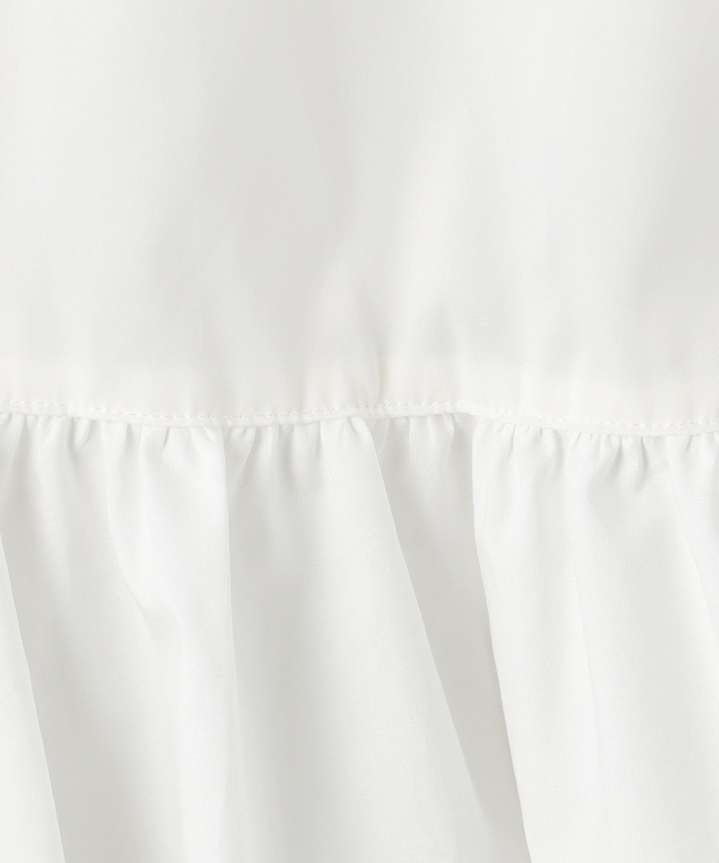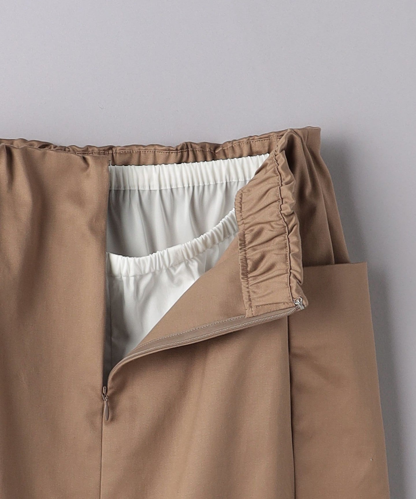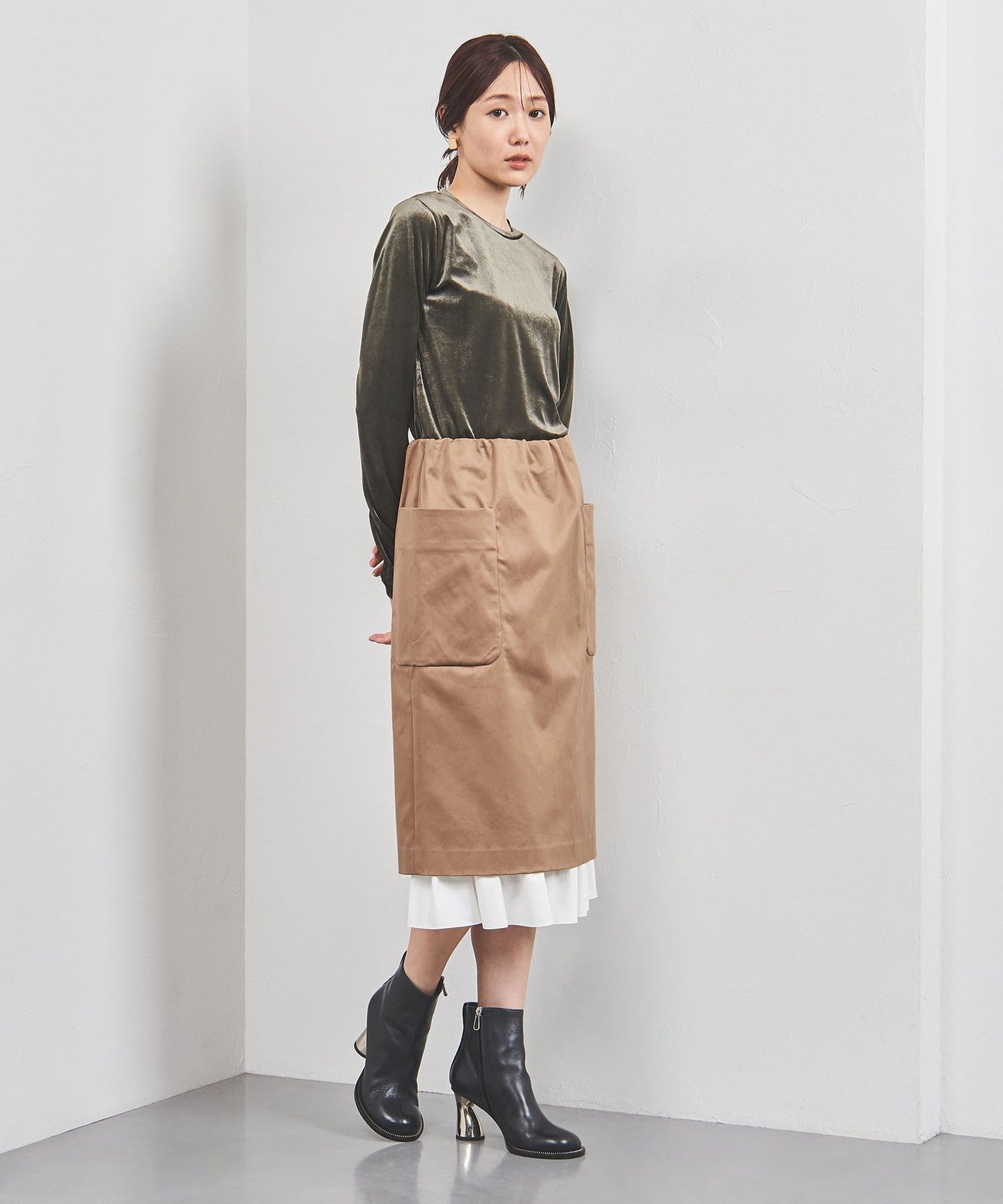 A combination design of a tight skirt and an underskirt with a ruffled hem.