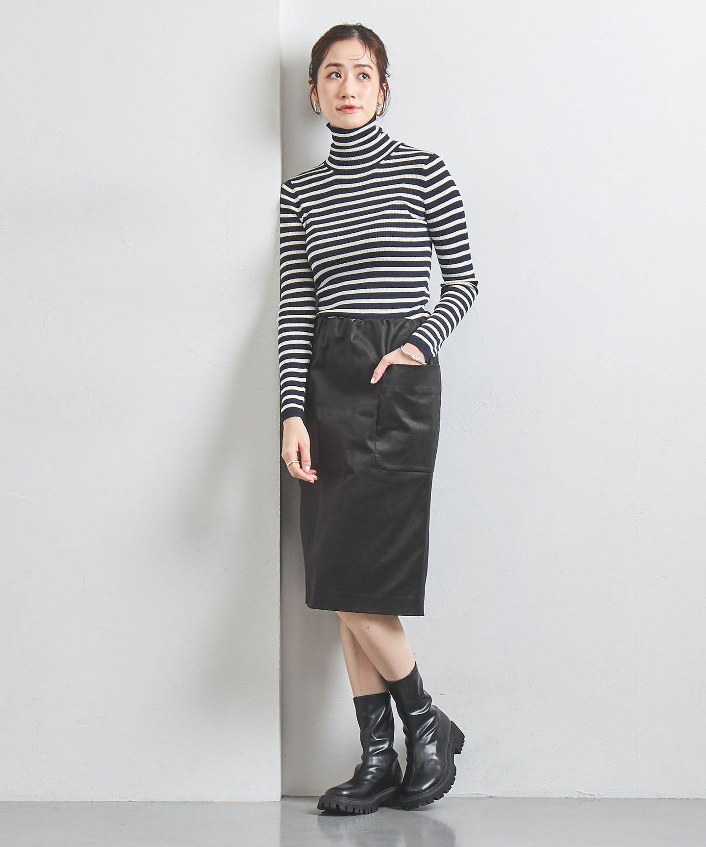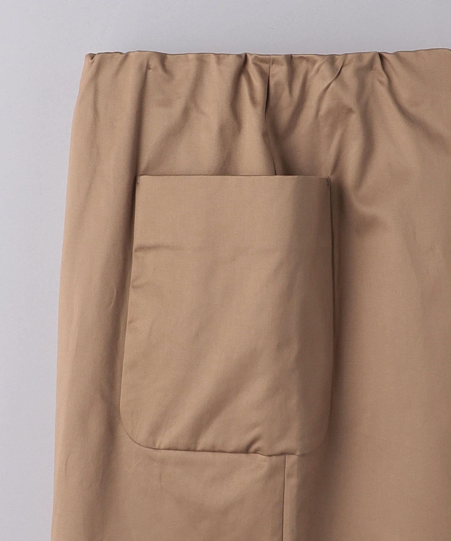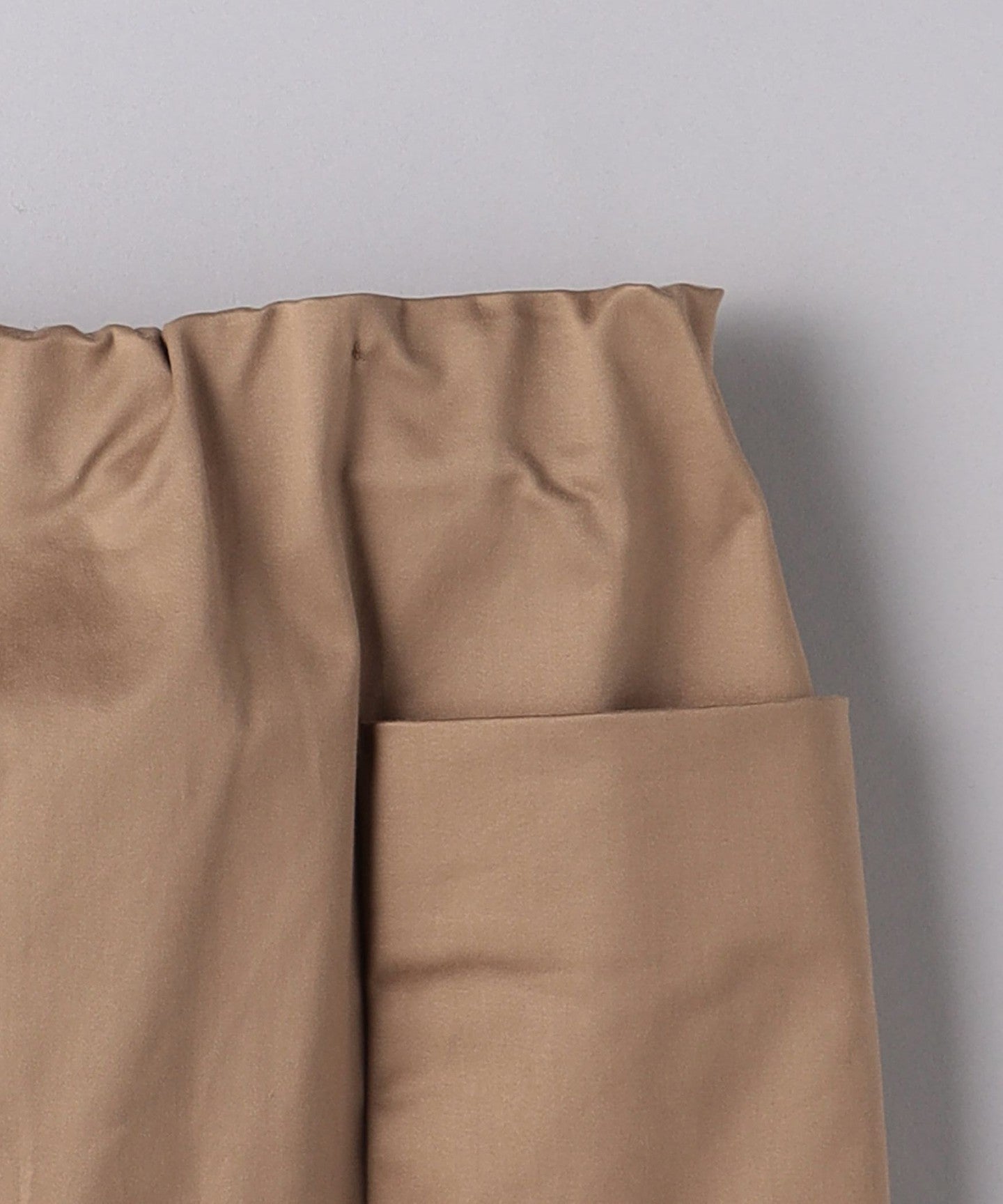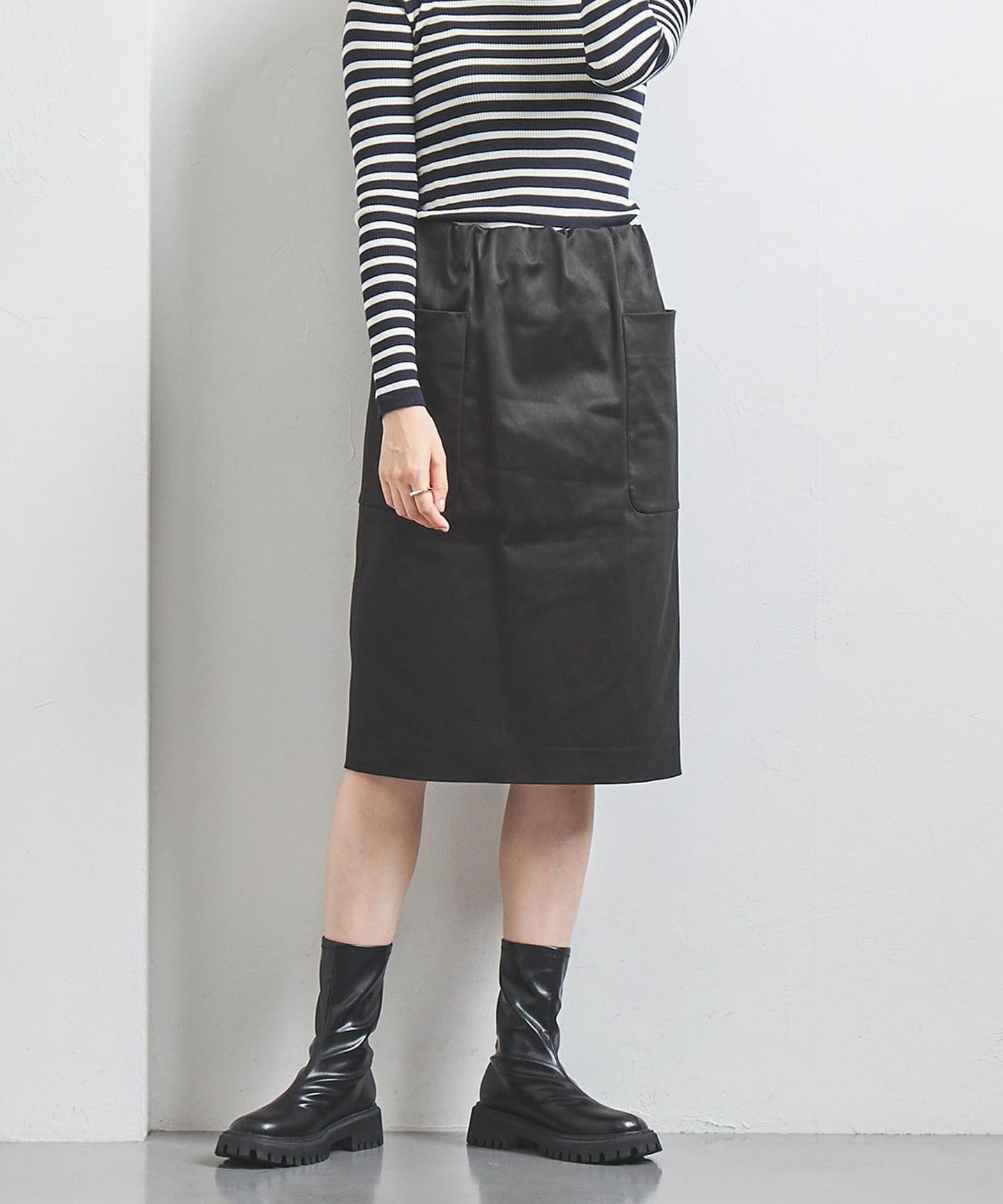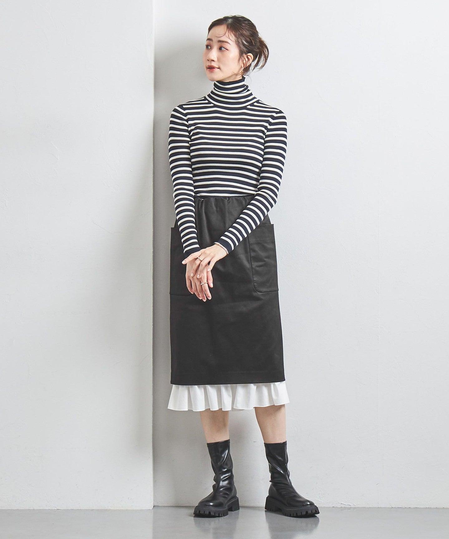 A combination design of a tight skirt and an underskirt with a ruffled hem.