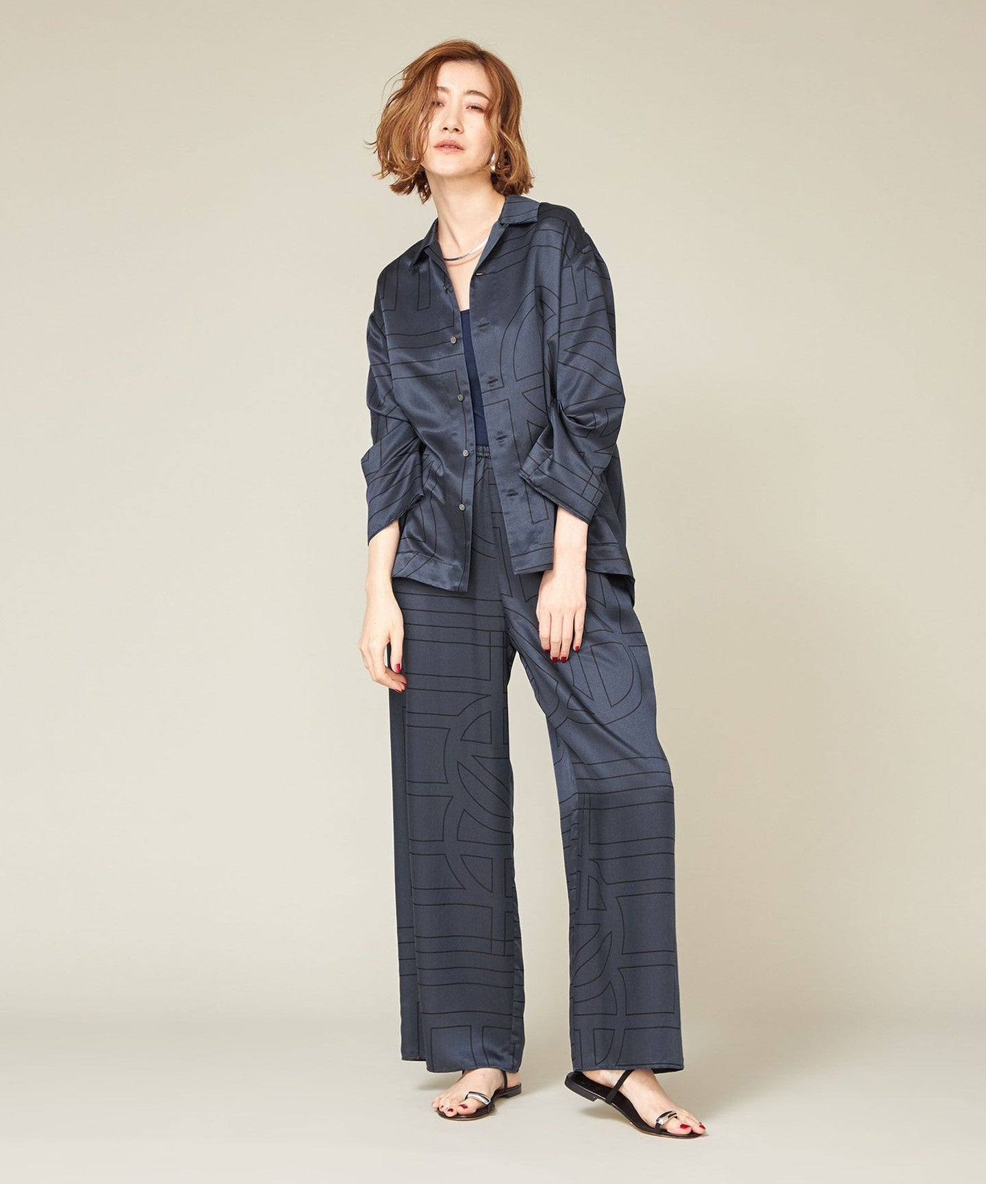 The large monogram print design, which is an adaptation of the original logo, and the calm, chic colors give this piece an elegant and sophisticated impression.