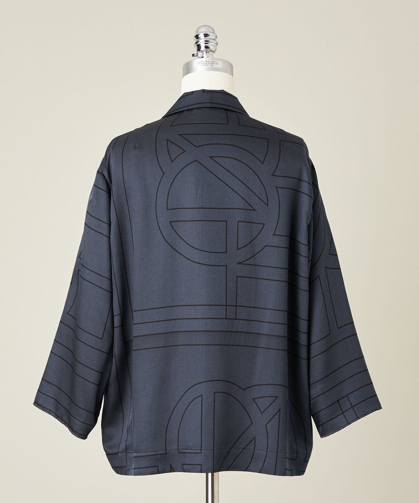 An elegant open-collar shirt with a monogram logo design and chic colors.