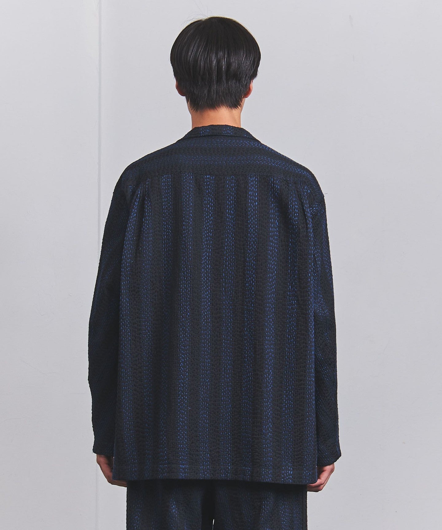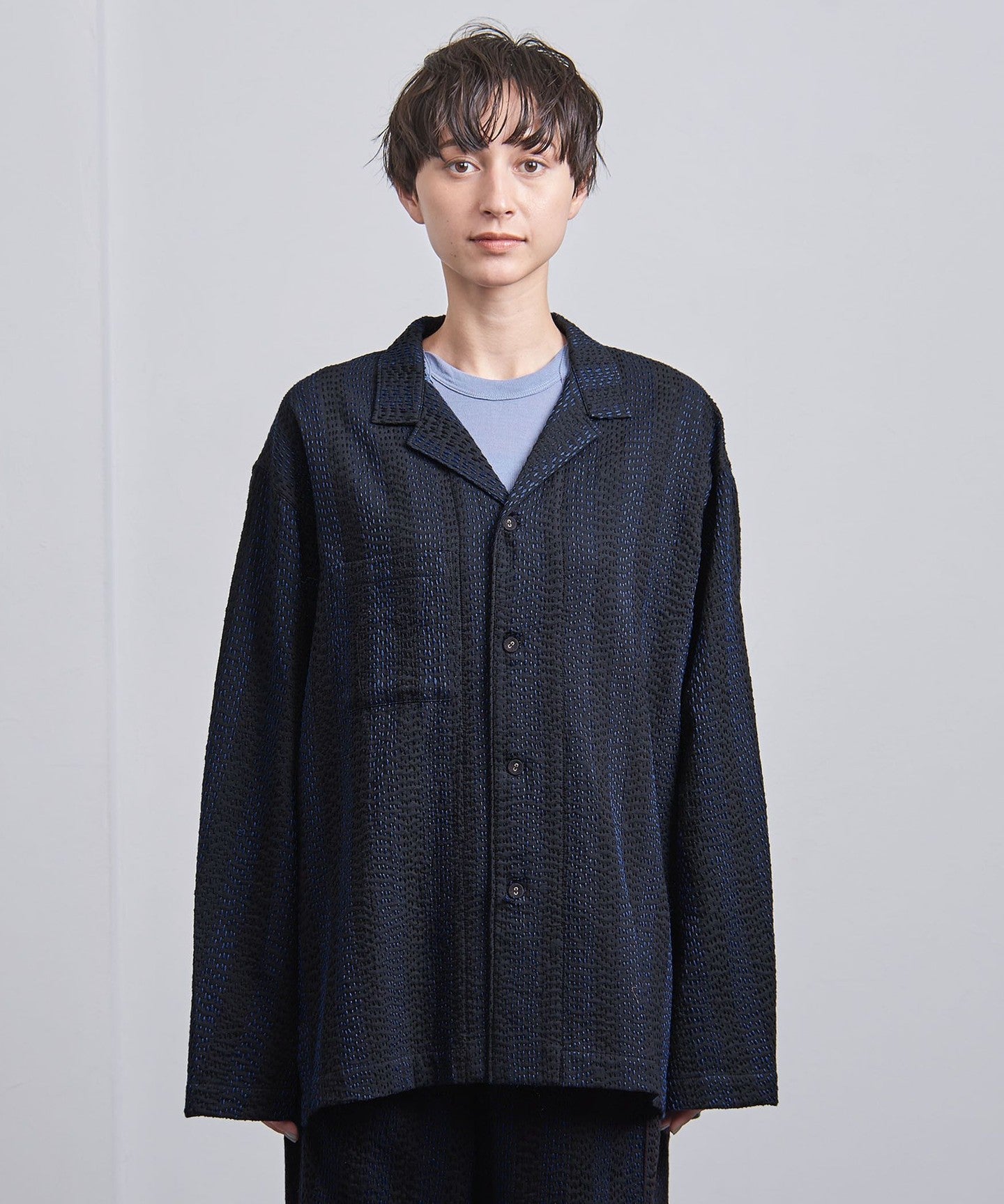 The entire piece is adorned with hand-made embroidery called "kantha," which is done stitch by stitch using only a needle and thread, luxuriously bringing out the delicate texture.