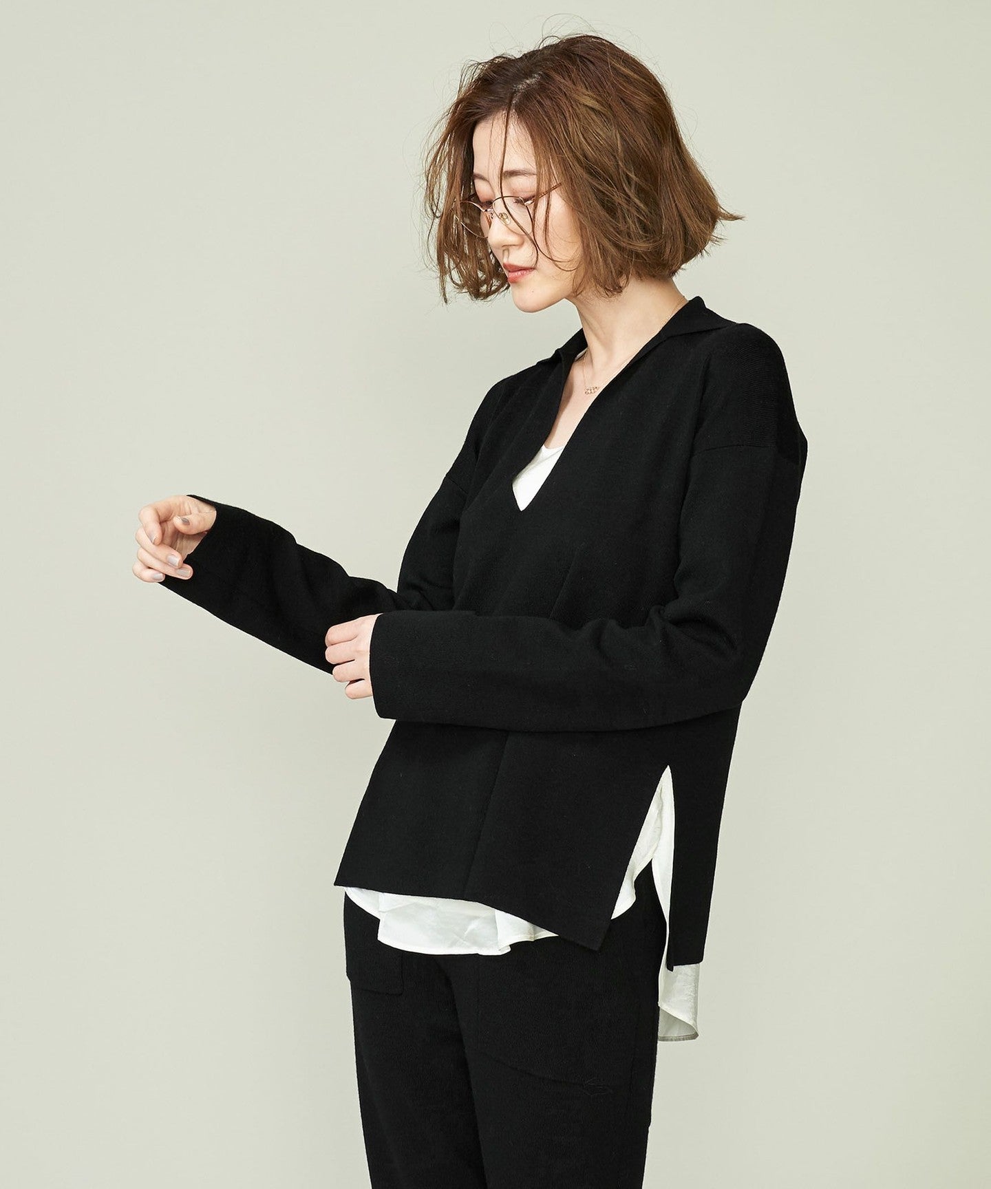conteHigh gauge deep V-neck knit