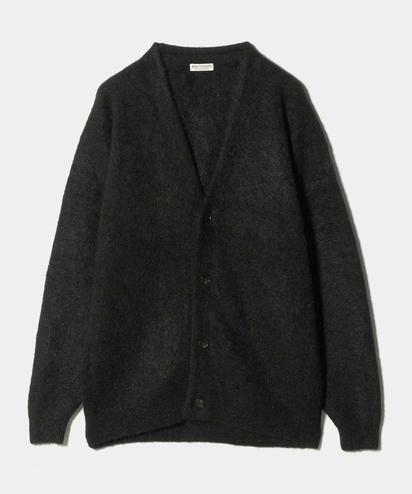 ヴィンテージのモヘヤカーディガンをデザインソースに開発した、贅沢なモヘヤシャギー素材を使用したVネックカーディガン。