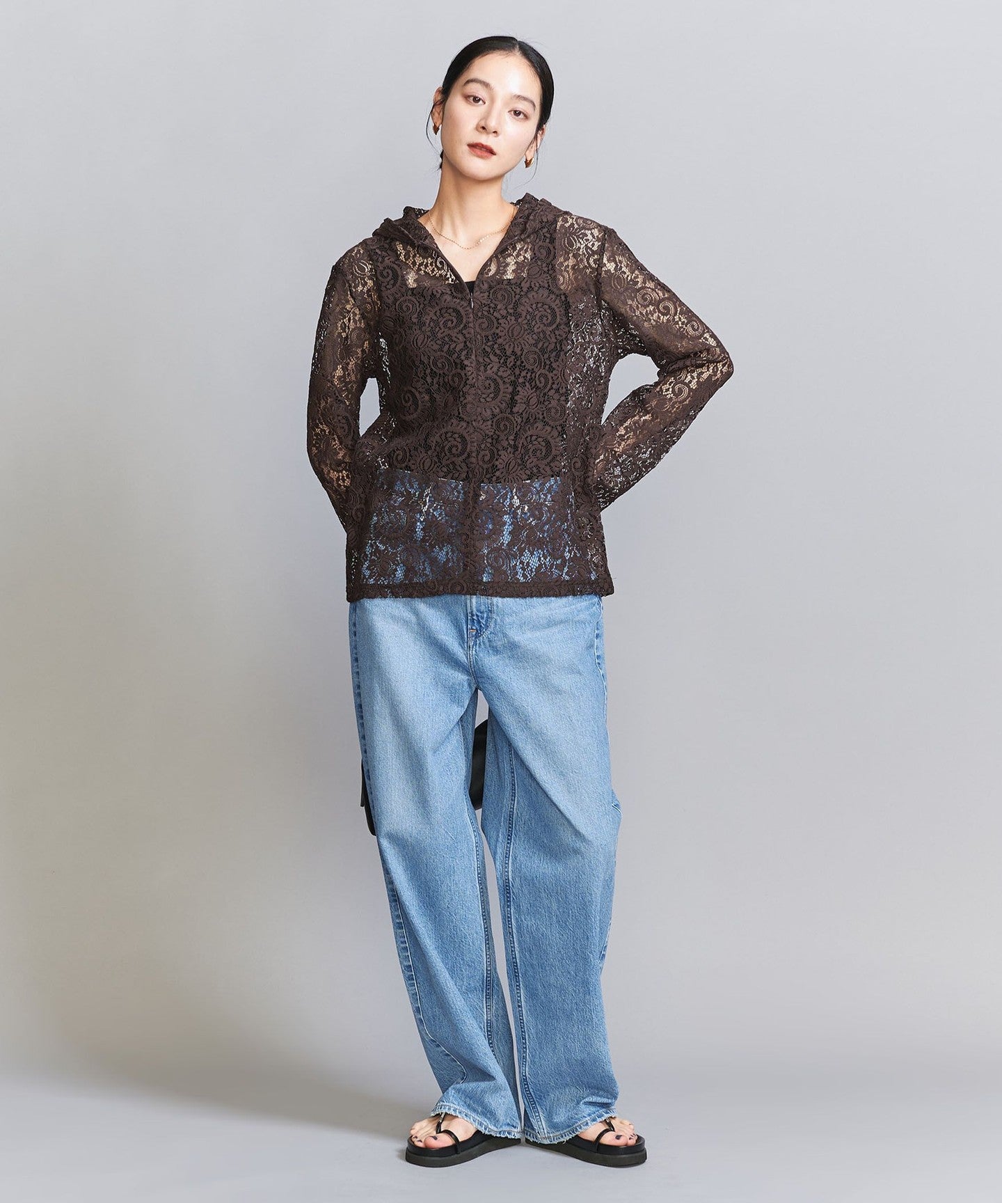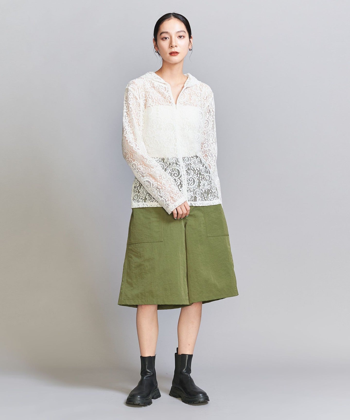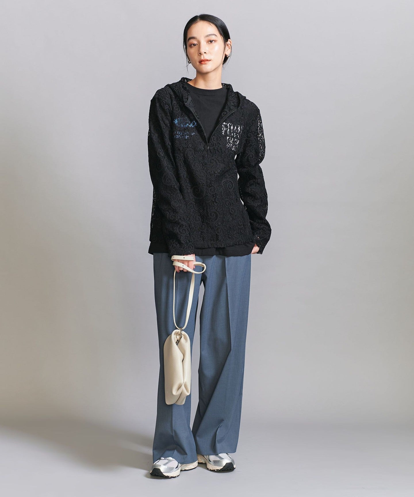 A new layered style proposal. A lace top that combines sporty and feminine styles.