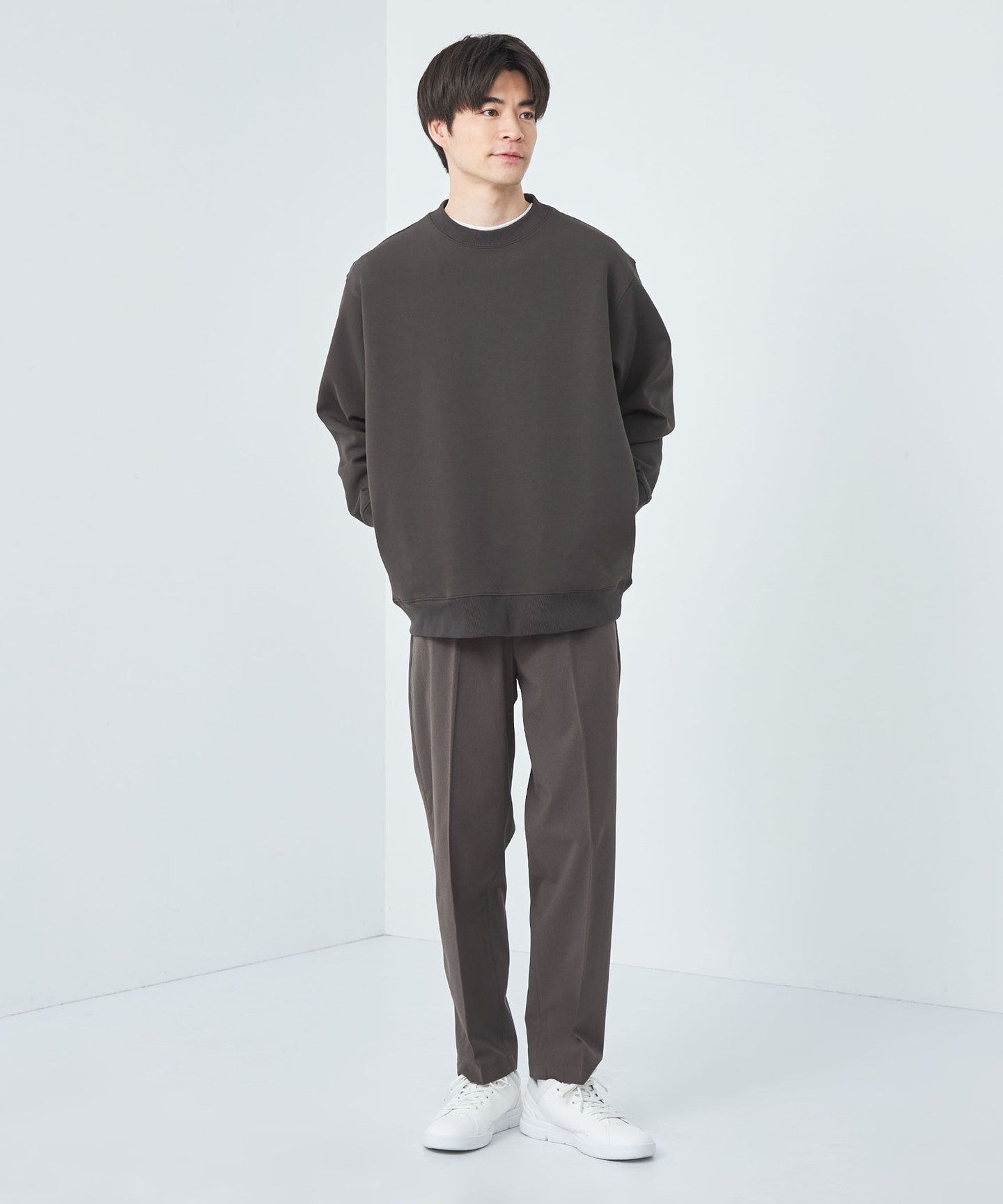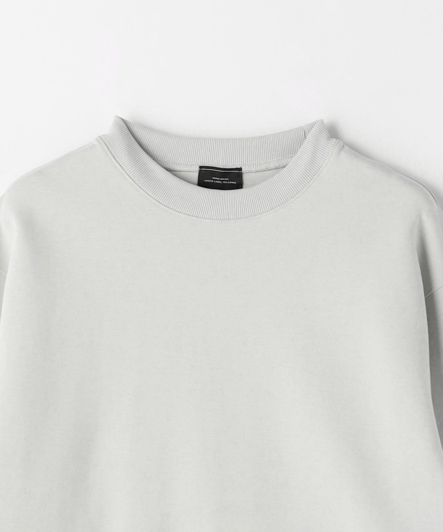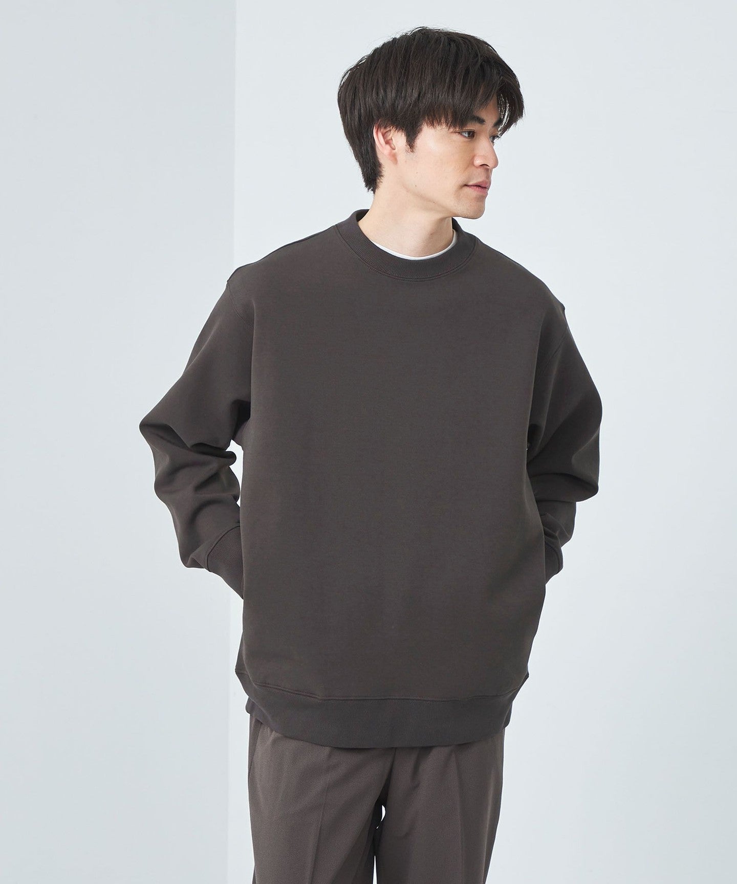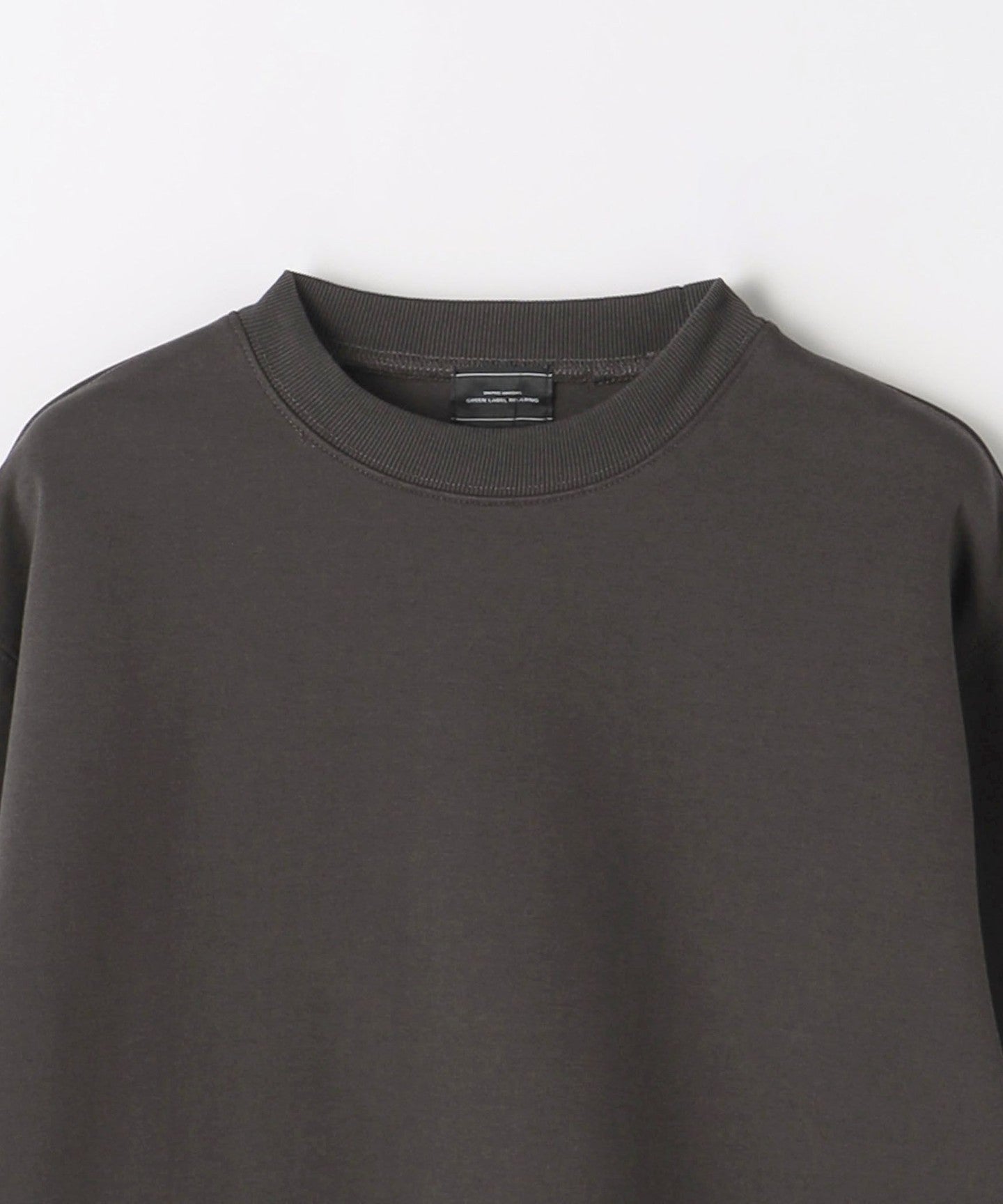 This is a crew neck pullover cut-and-sew with a loose fit.