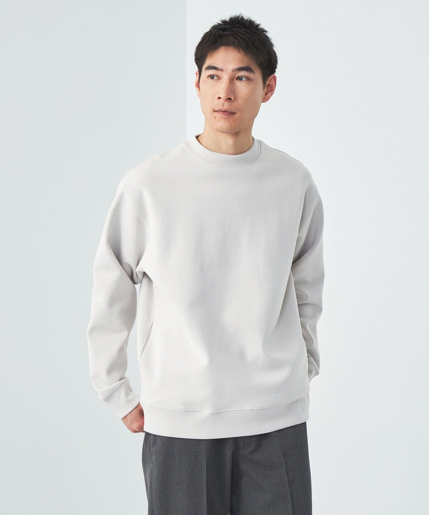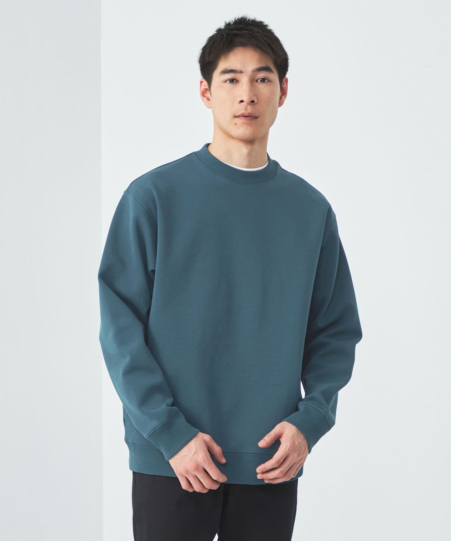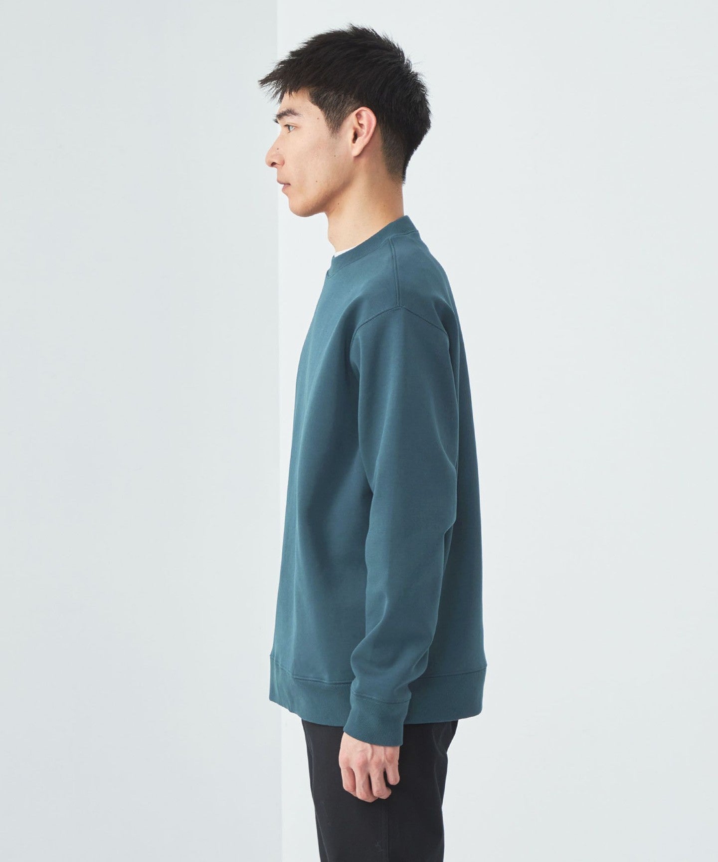 This is a crew neck pullover cut-and-sew with a loose fit.