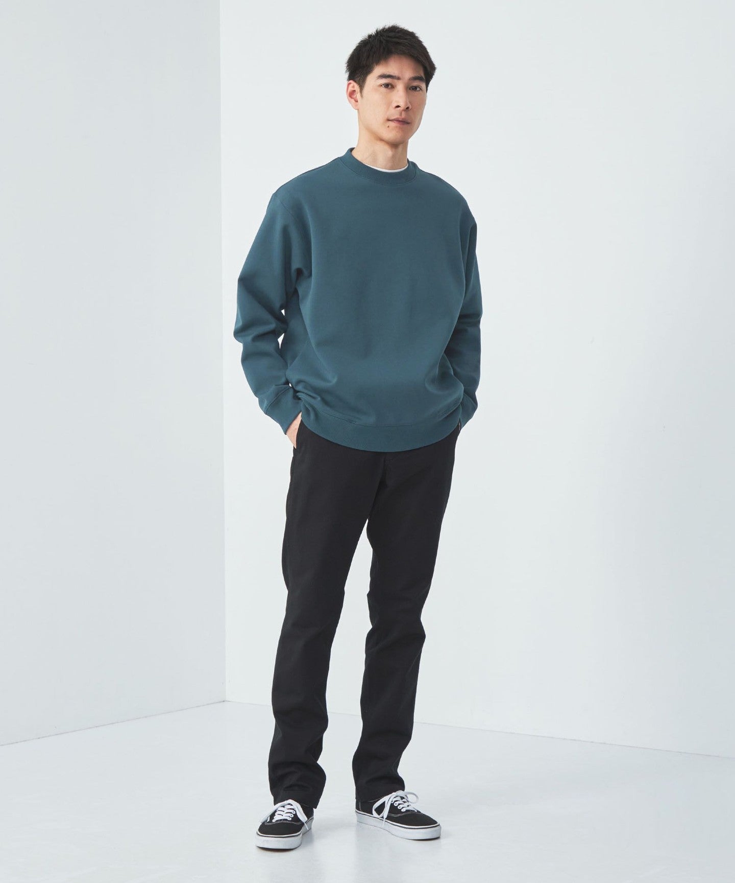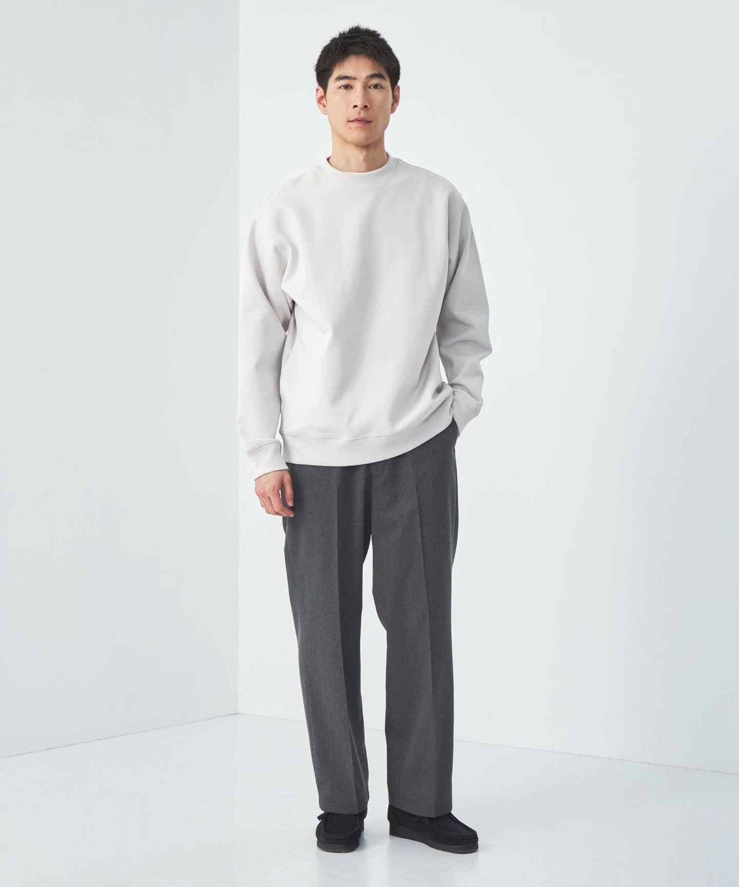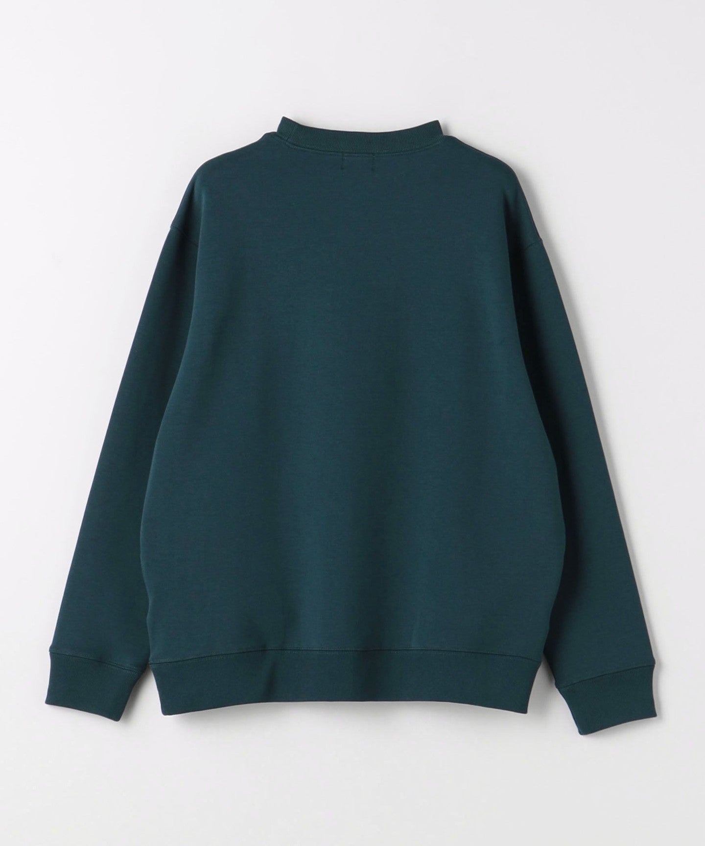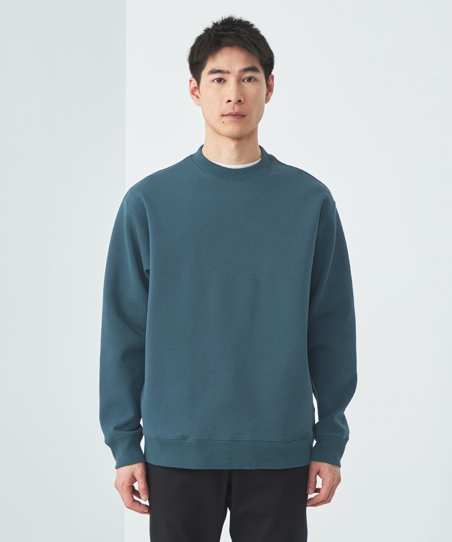 This is a crew neck pullover cut-and-sew with a loose fit.