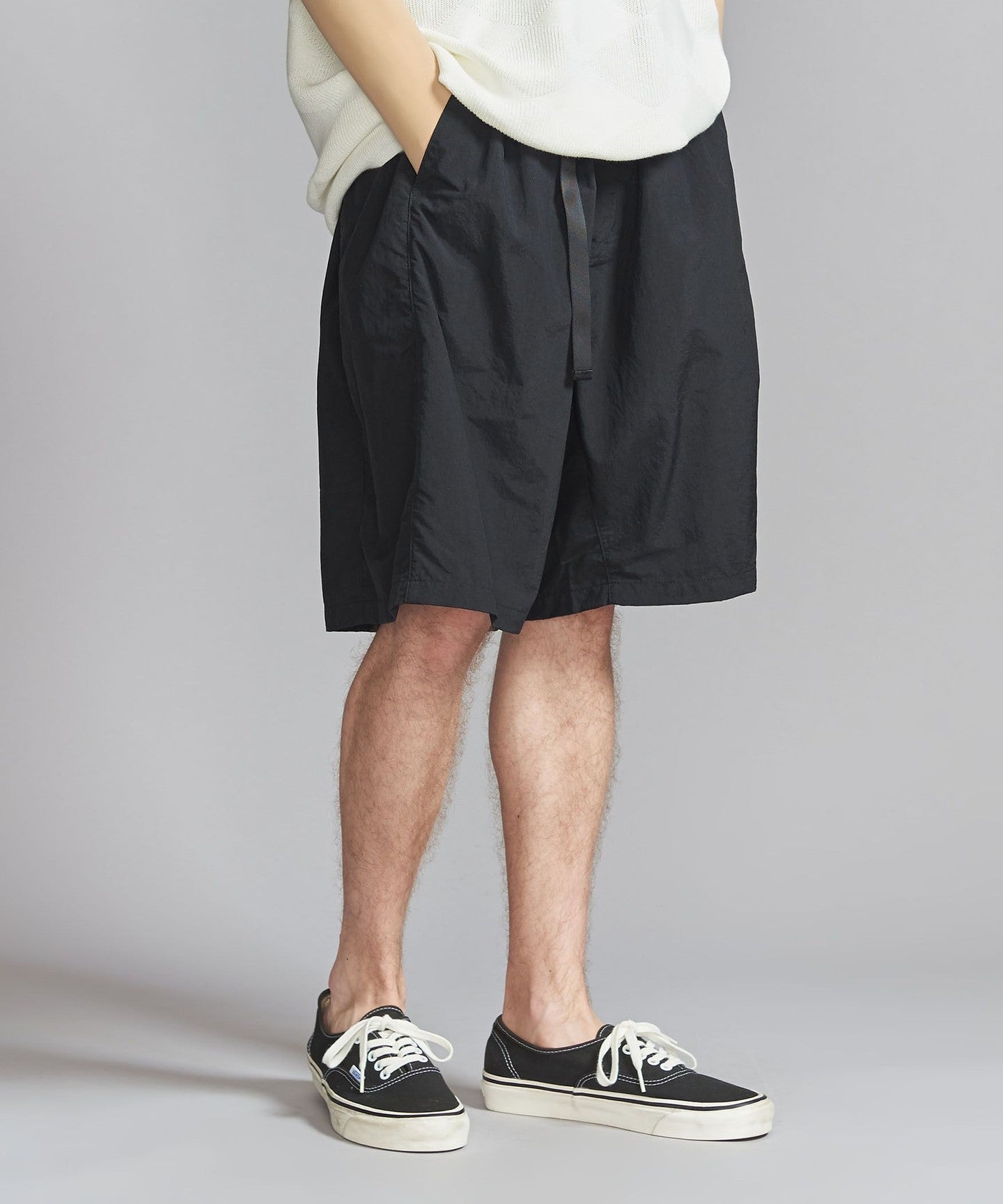 These wide-cut shorts use nylon for the outer fabric, which is dry to the touch and breathable against the skin.