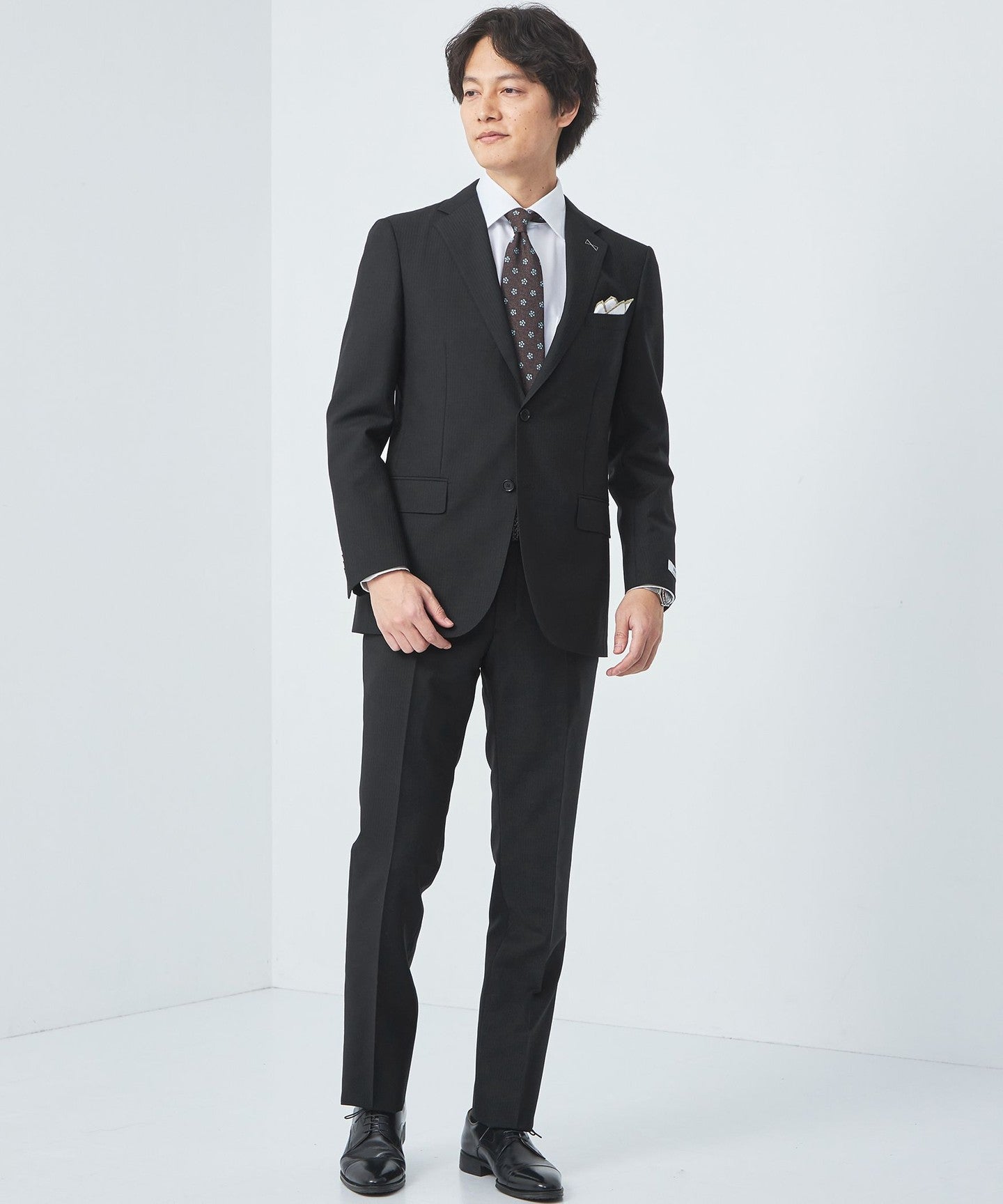 BLACK is white broadcloth SHIRT to Silver and shiny neck TIE Combined with this, it creates a look that is perfect for formal occasions.