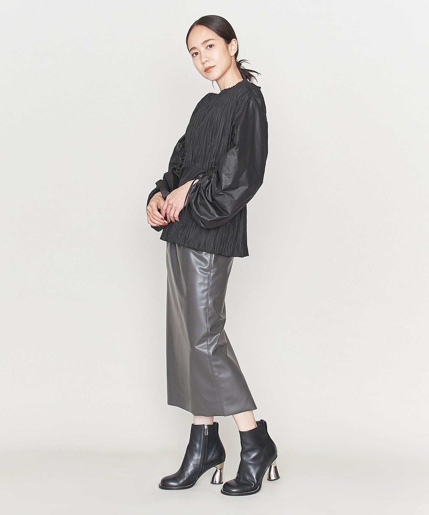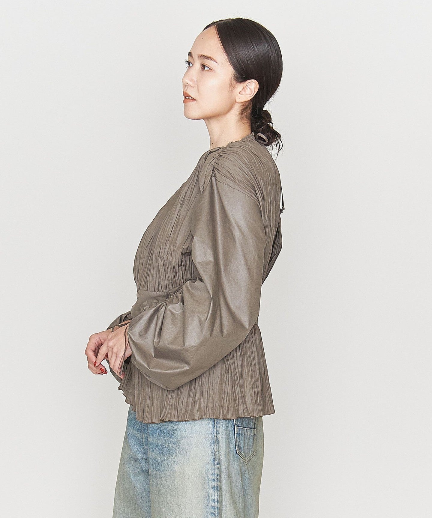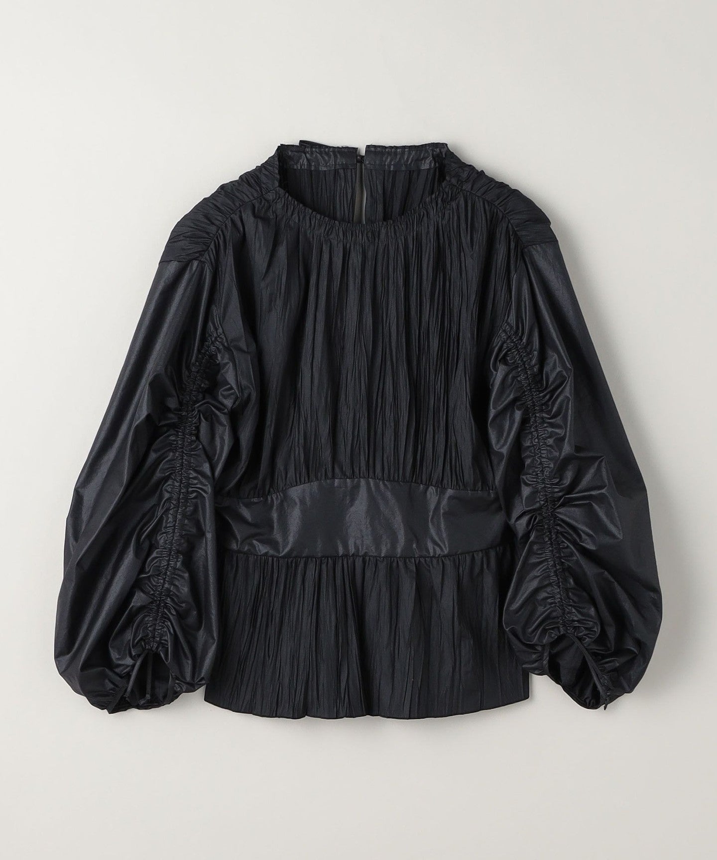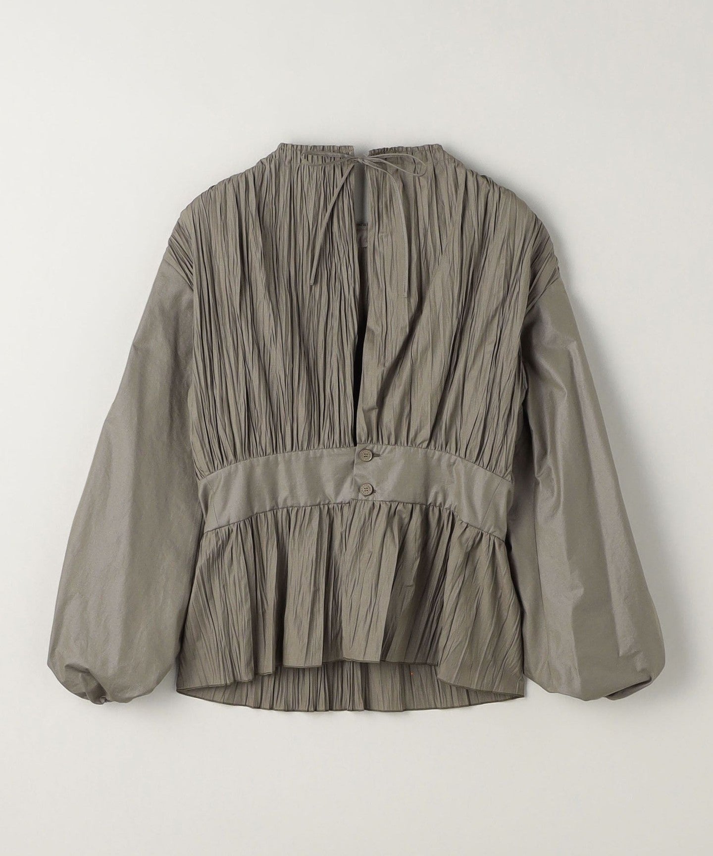 Pleated Drawcord Puff Sleeve Blouse