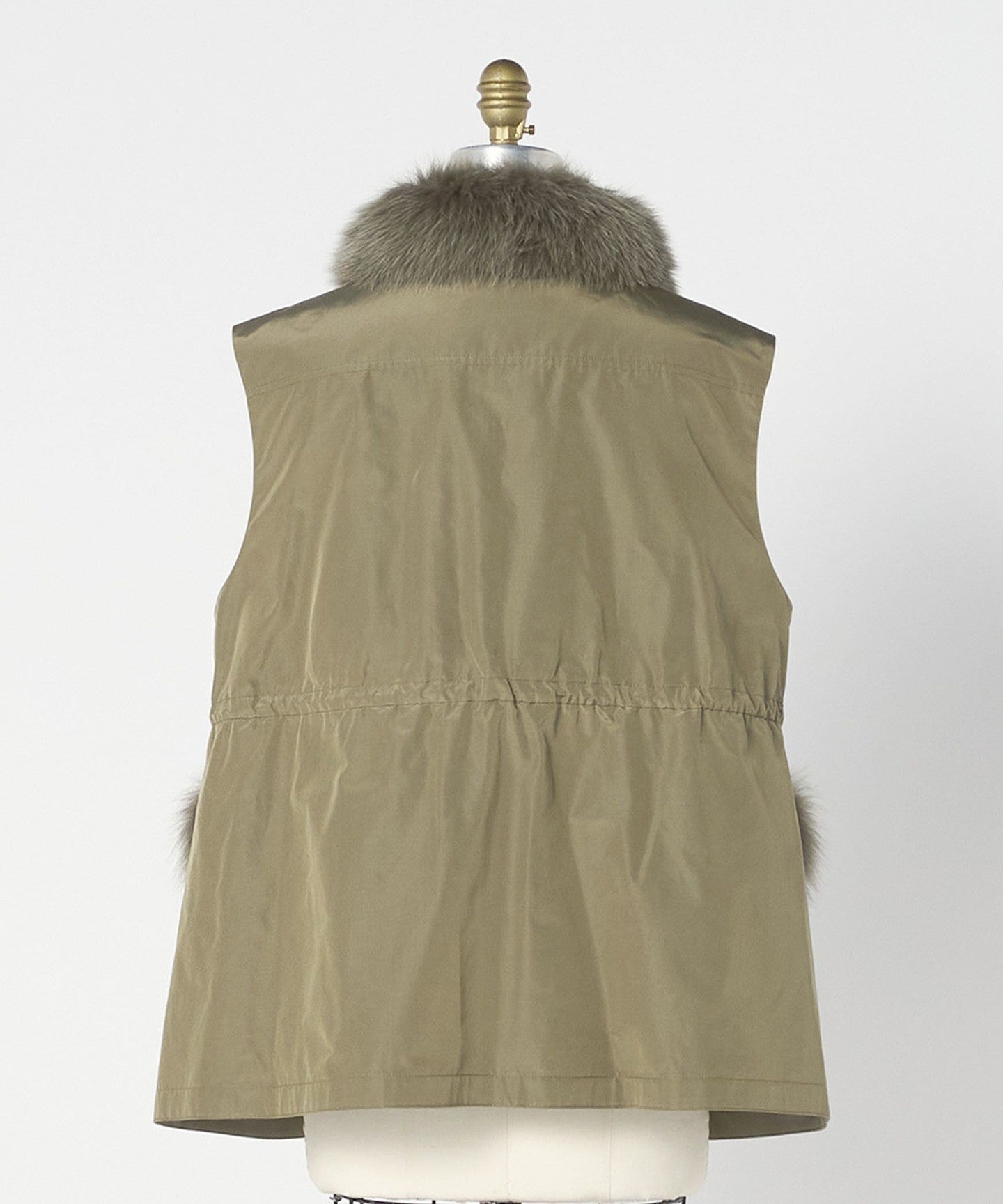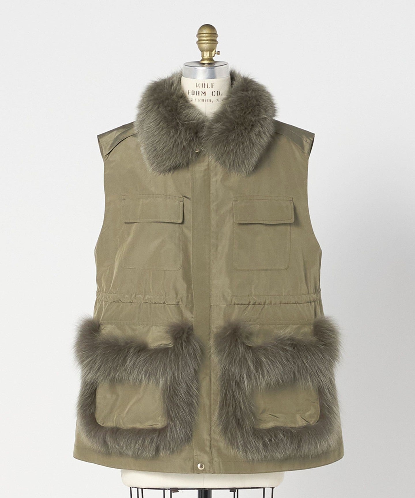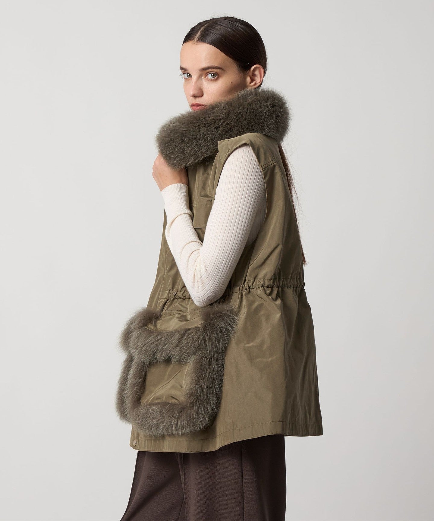 OLIVE:本体; 表生地;コットン67% シルク33% 裏生地;ポリエステル100% テープ部分;レーヨン100% ファー部分;毛皮(フォックス)