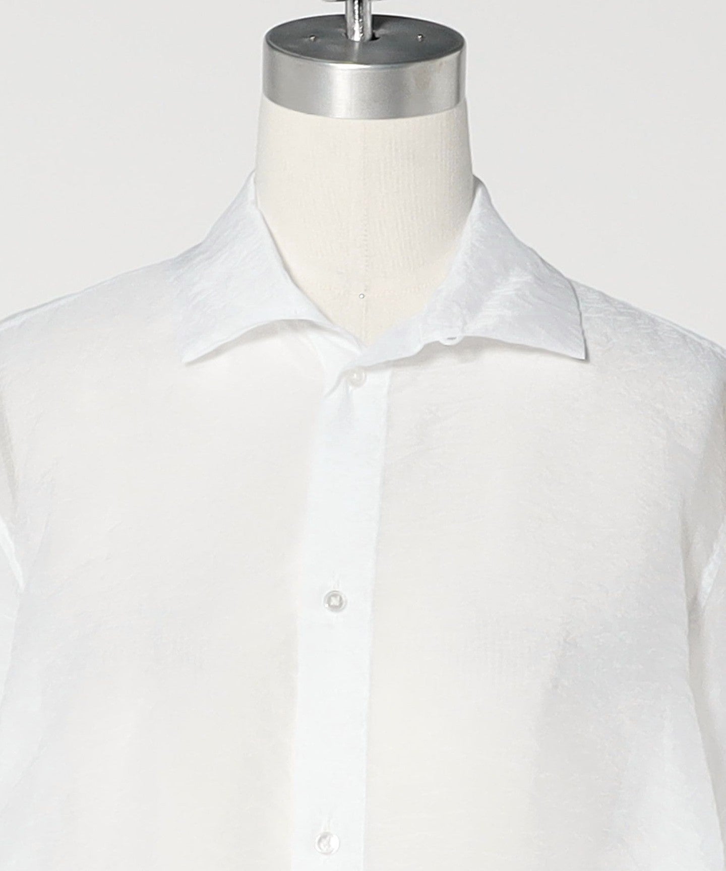 This is a long, loose-fitting shirt with a regular collar that is almost a wing collar.