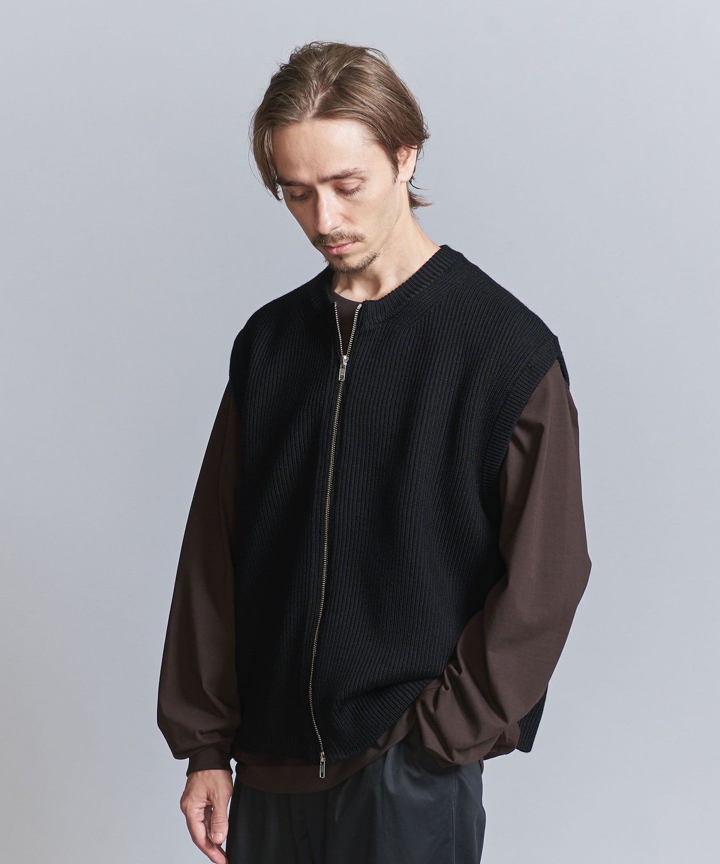 A minimalist knit zip vest with silver-colored zippers that give it a classy and clean look.