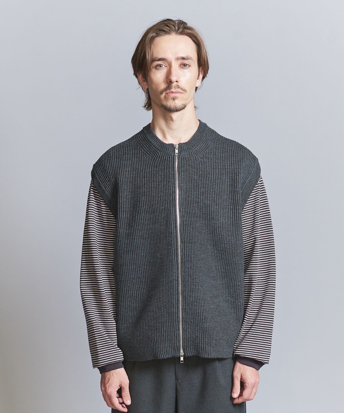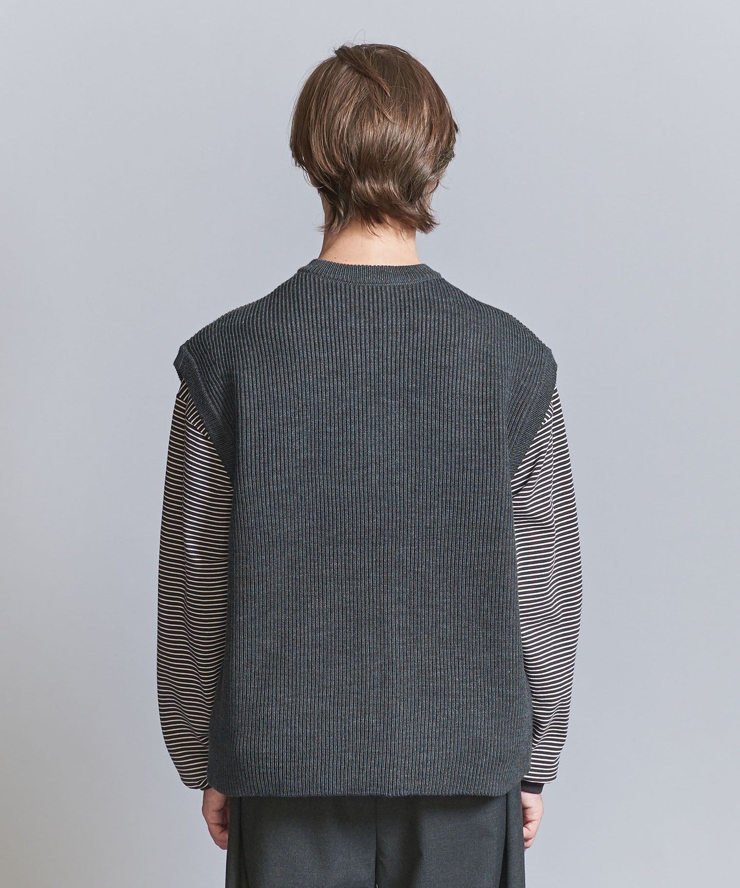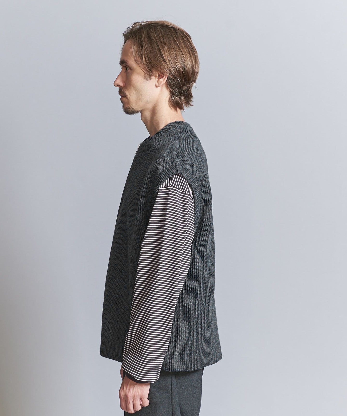 We recommend pairing it with bottoms that have a moderately loose silhouette to create a relaxed look.