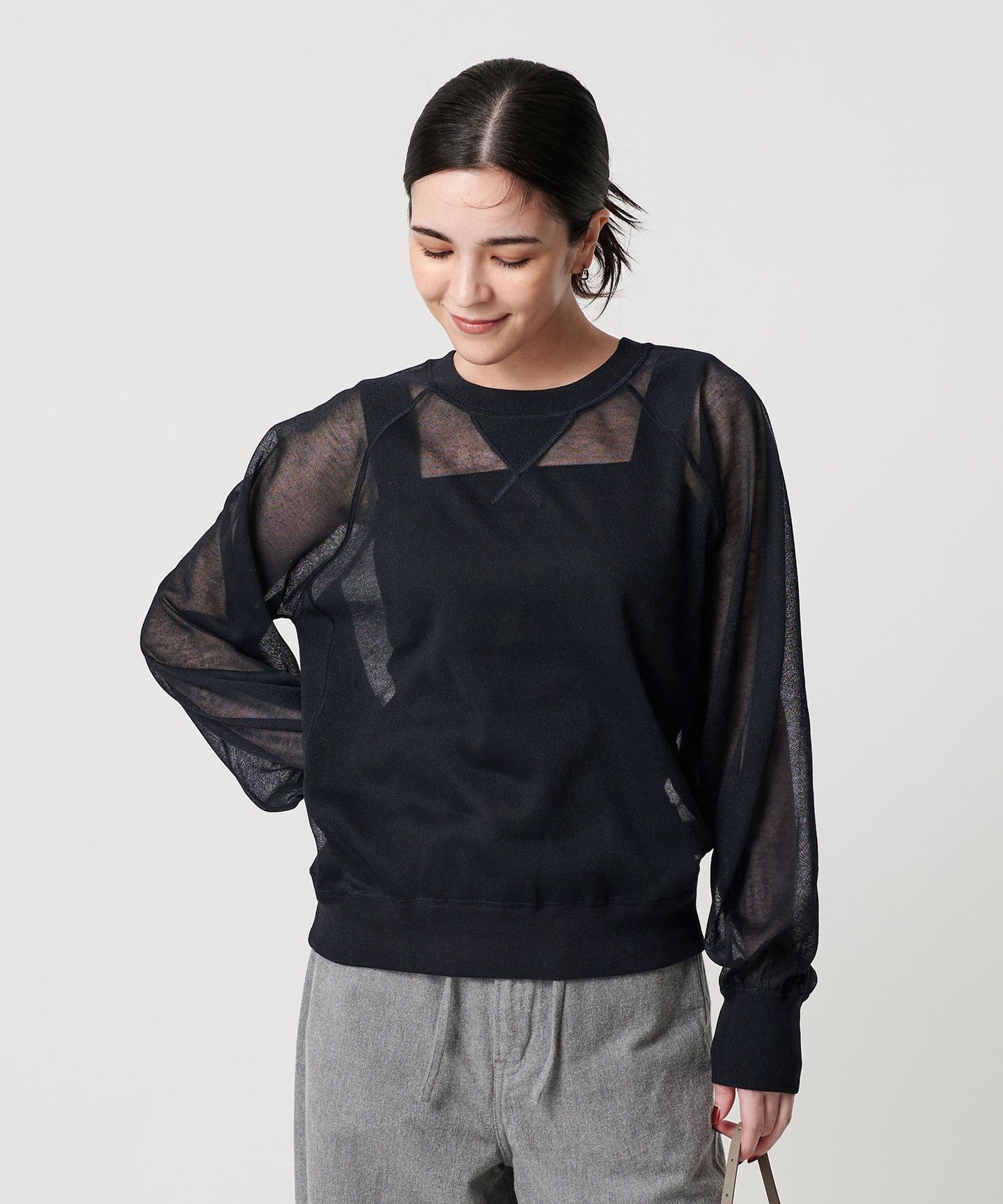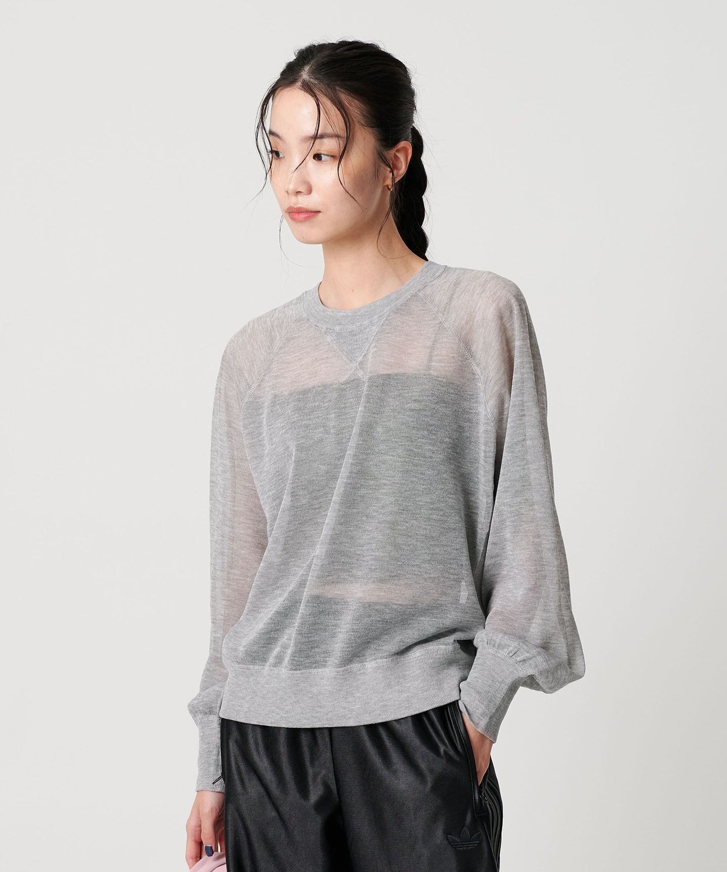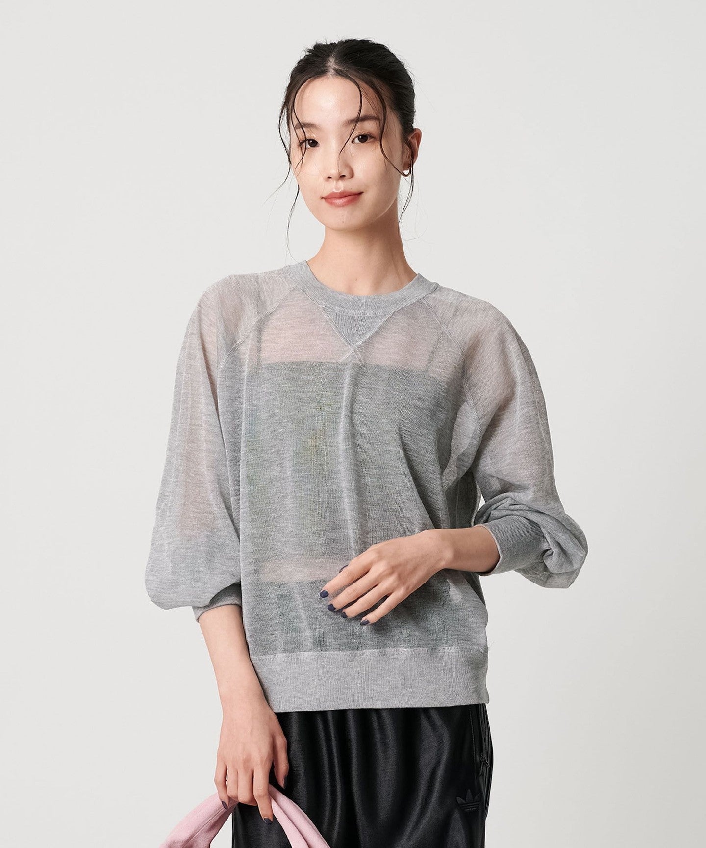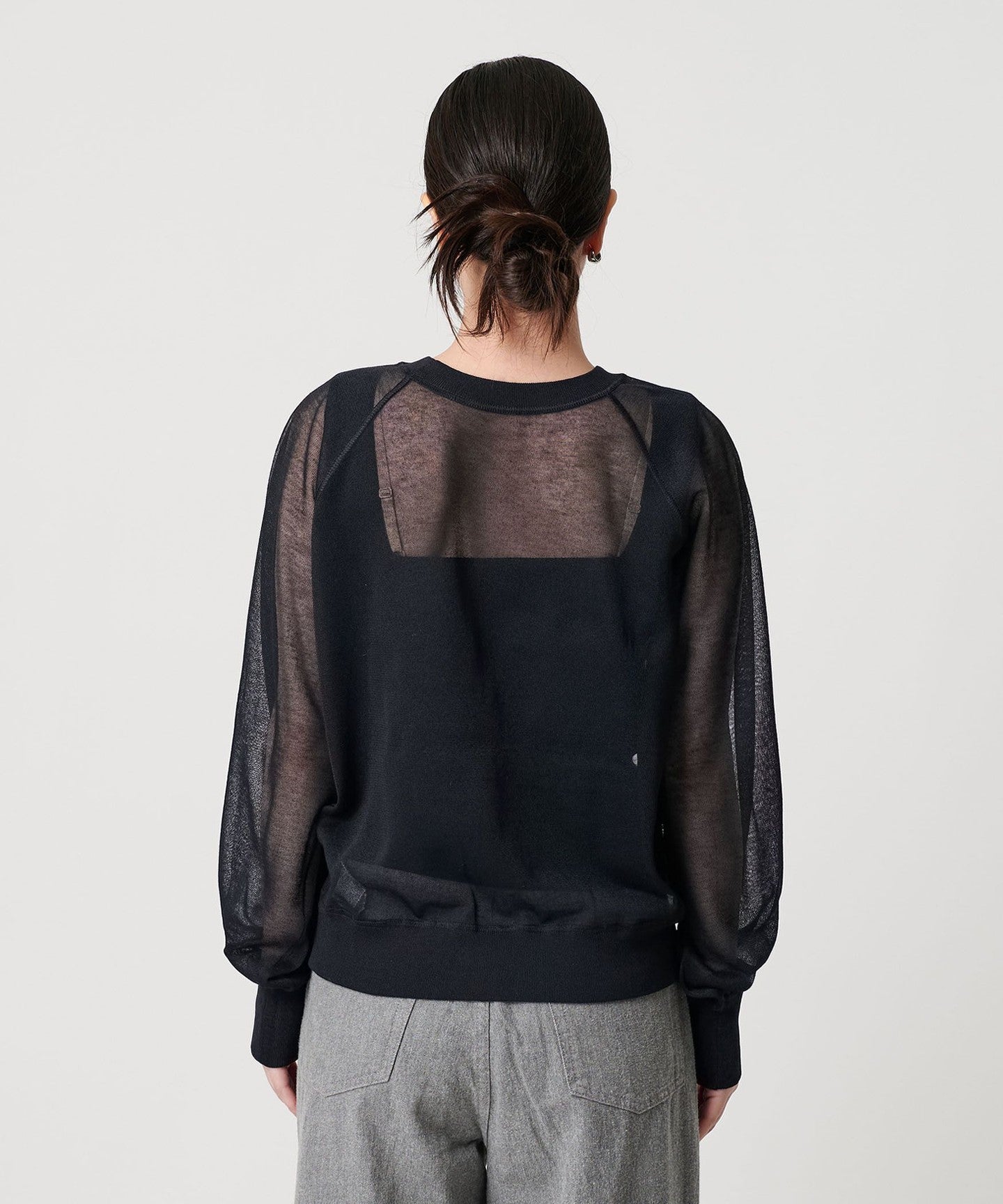 A sheer knit with sweatshirt details that captivates with its sheerness
