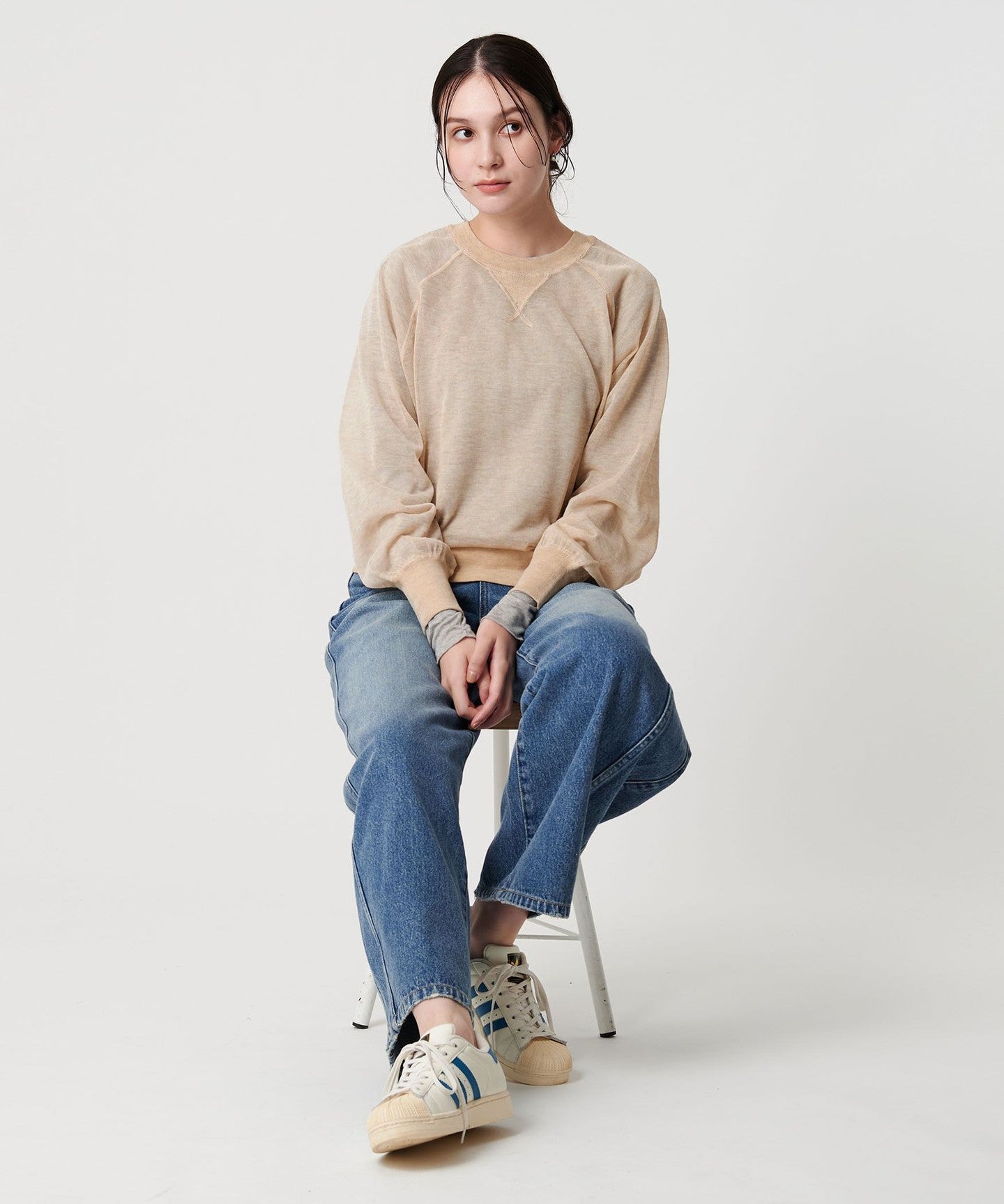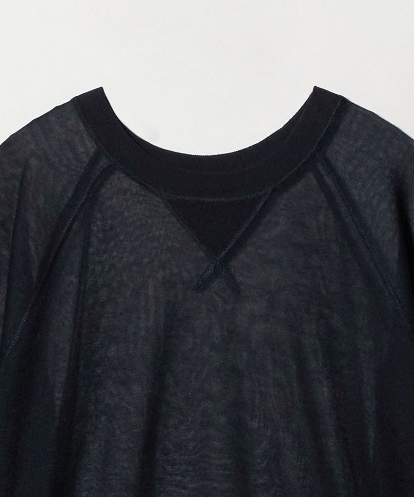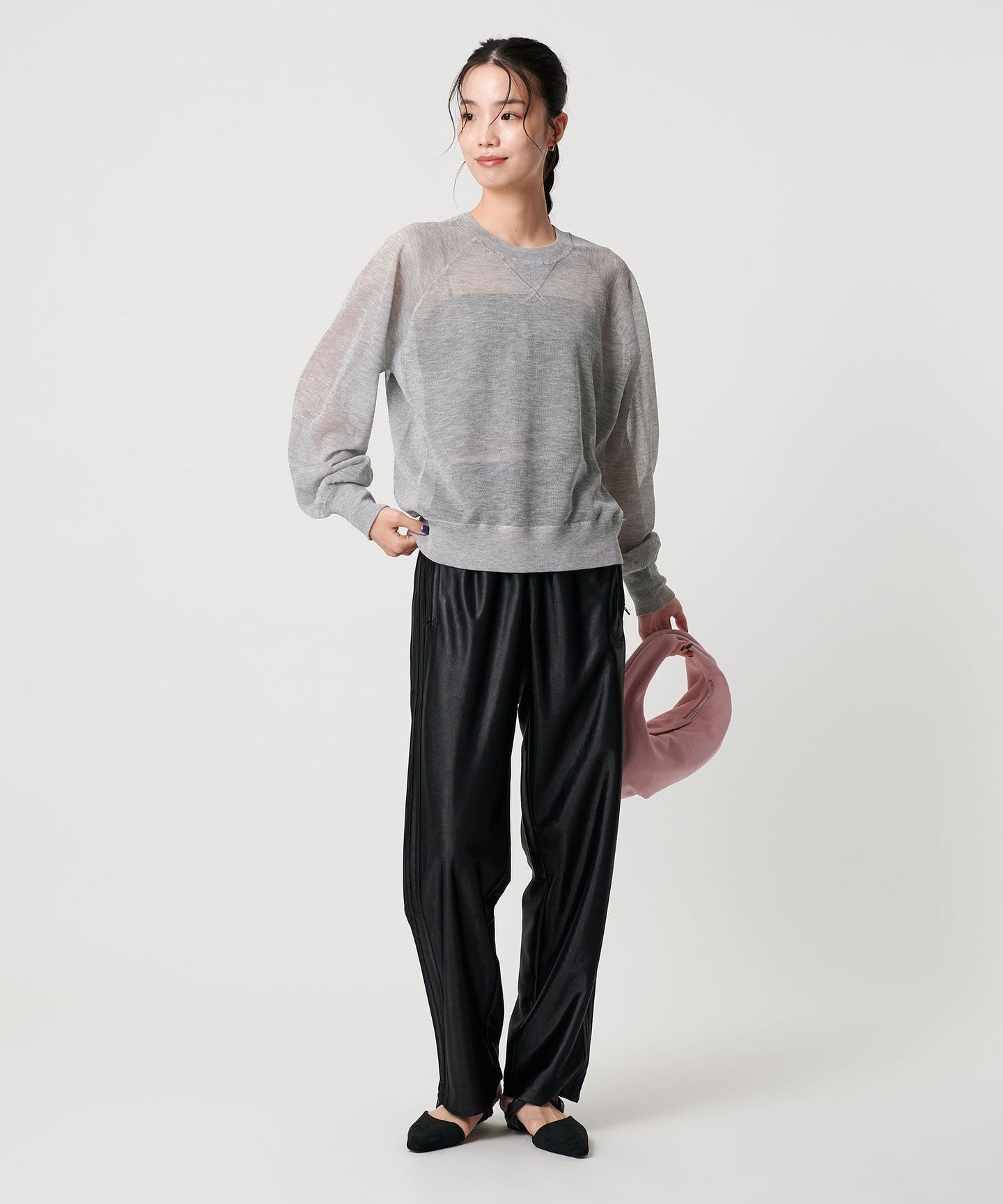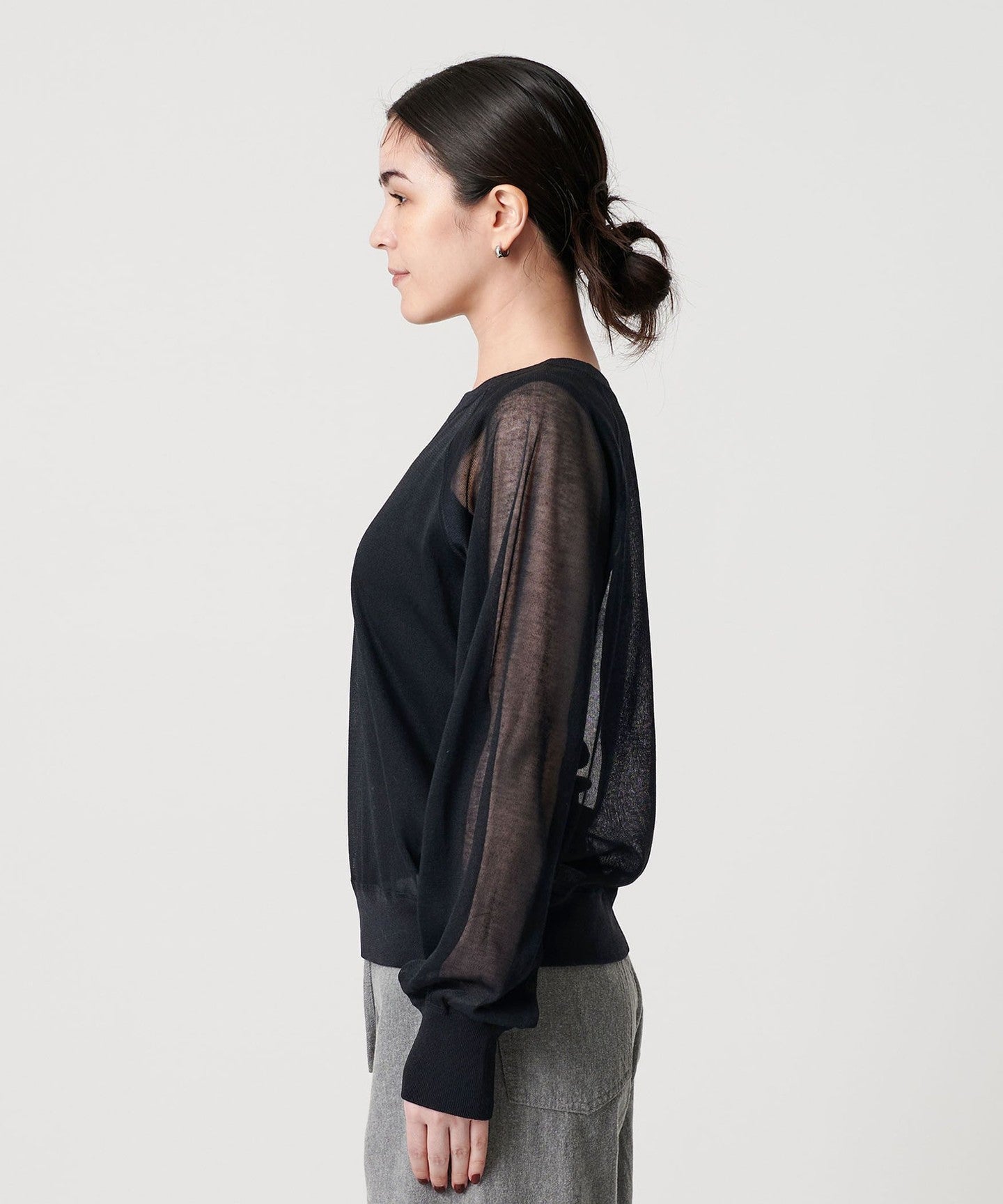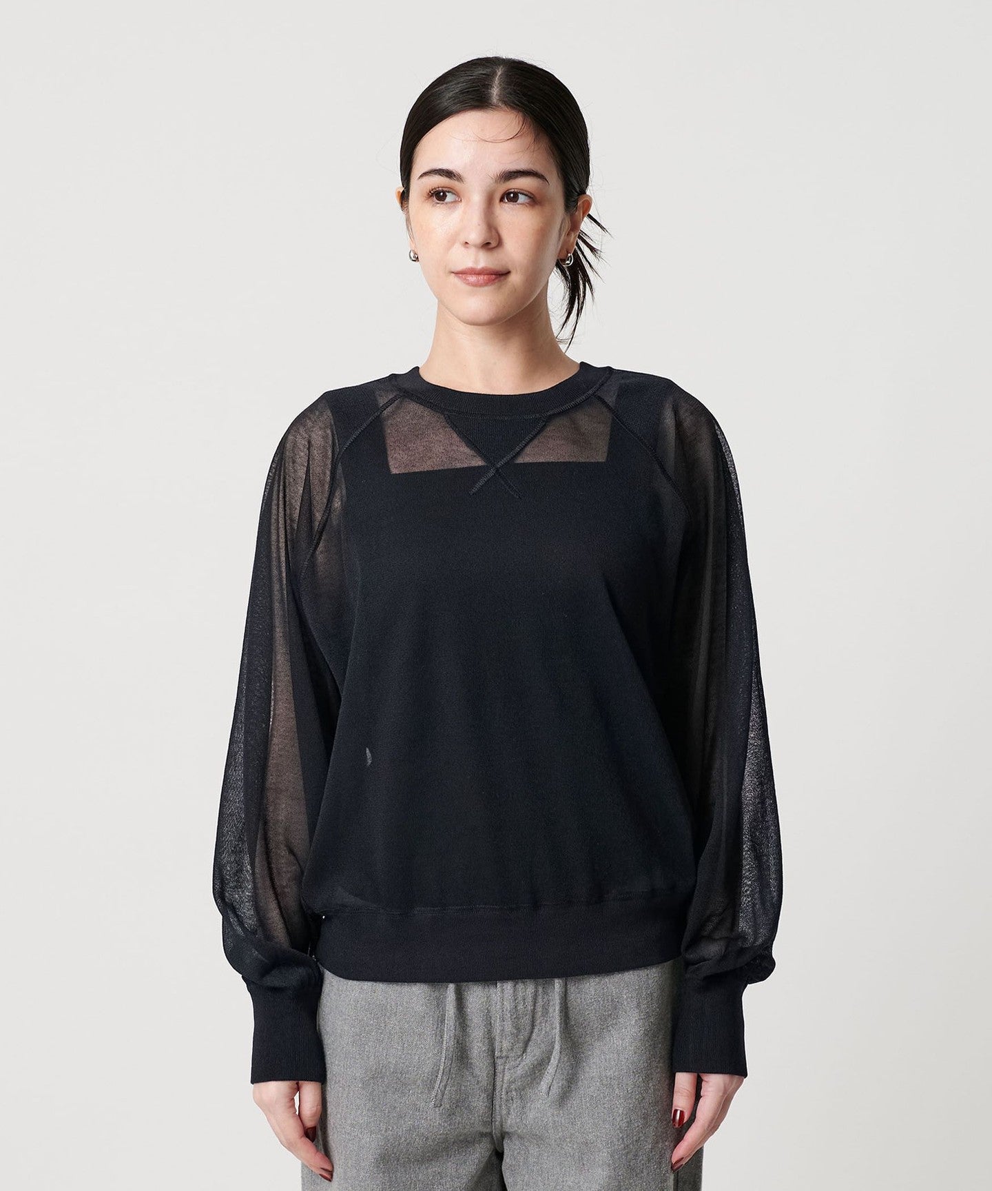 A sheer knit with sweatshirt details that captivates with its sheerness