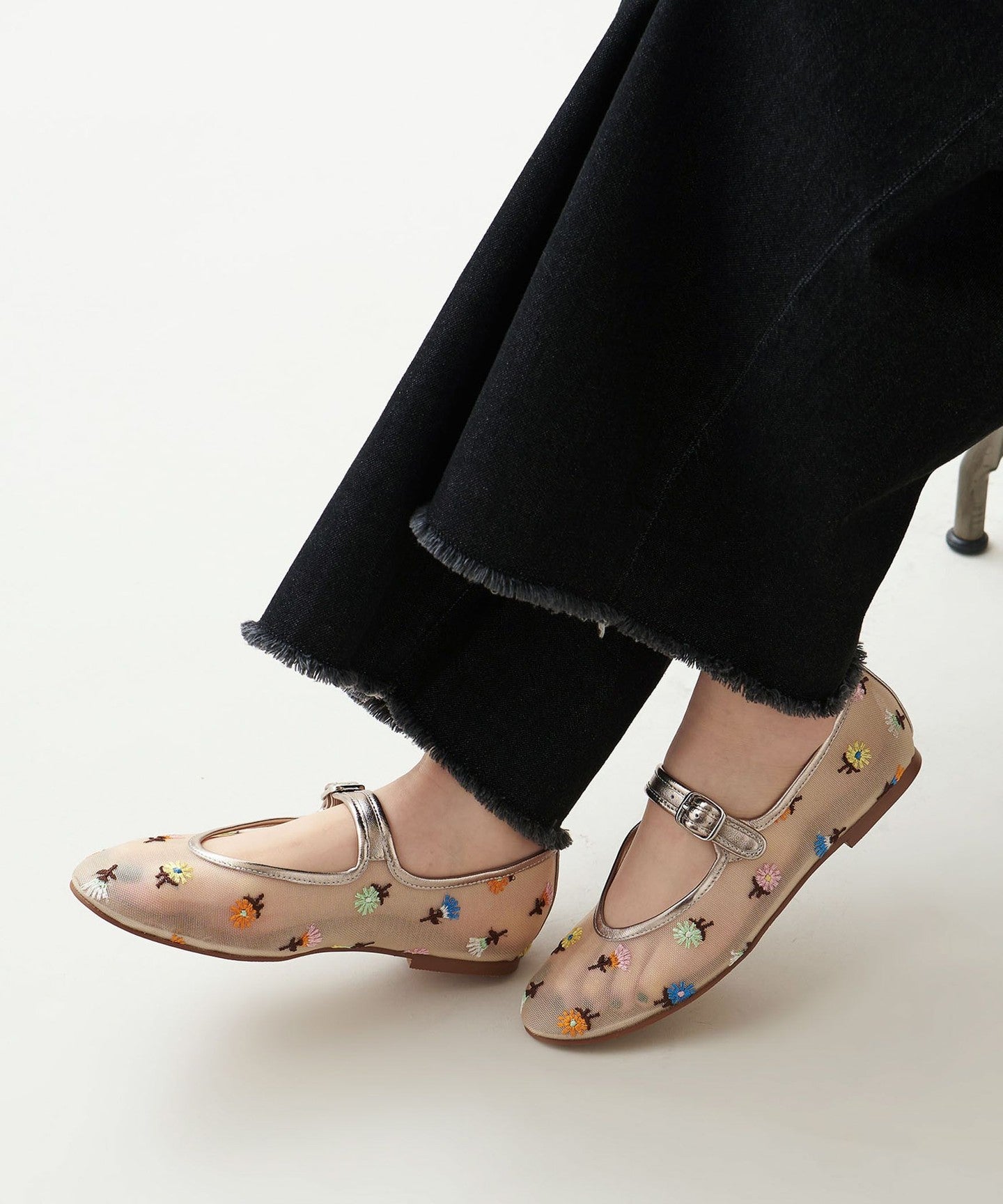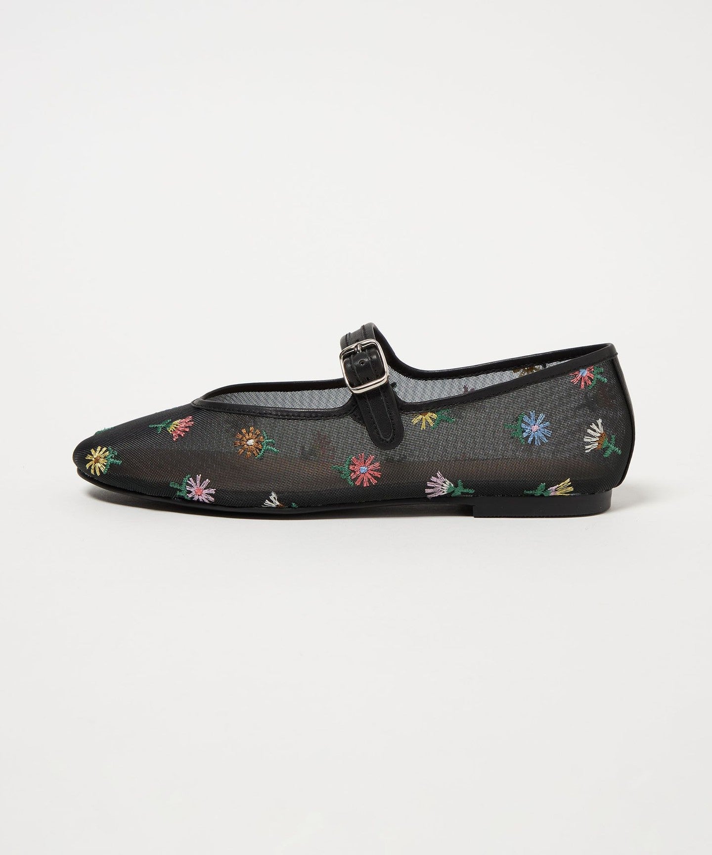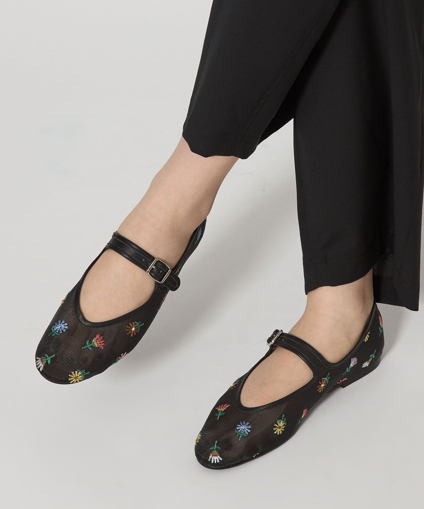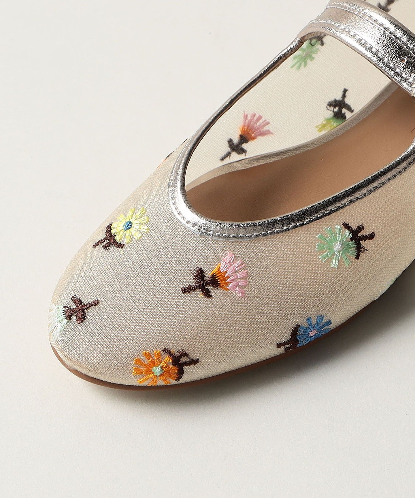 Eye-catching floral embroidery Mary Jane flats