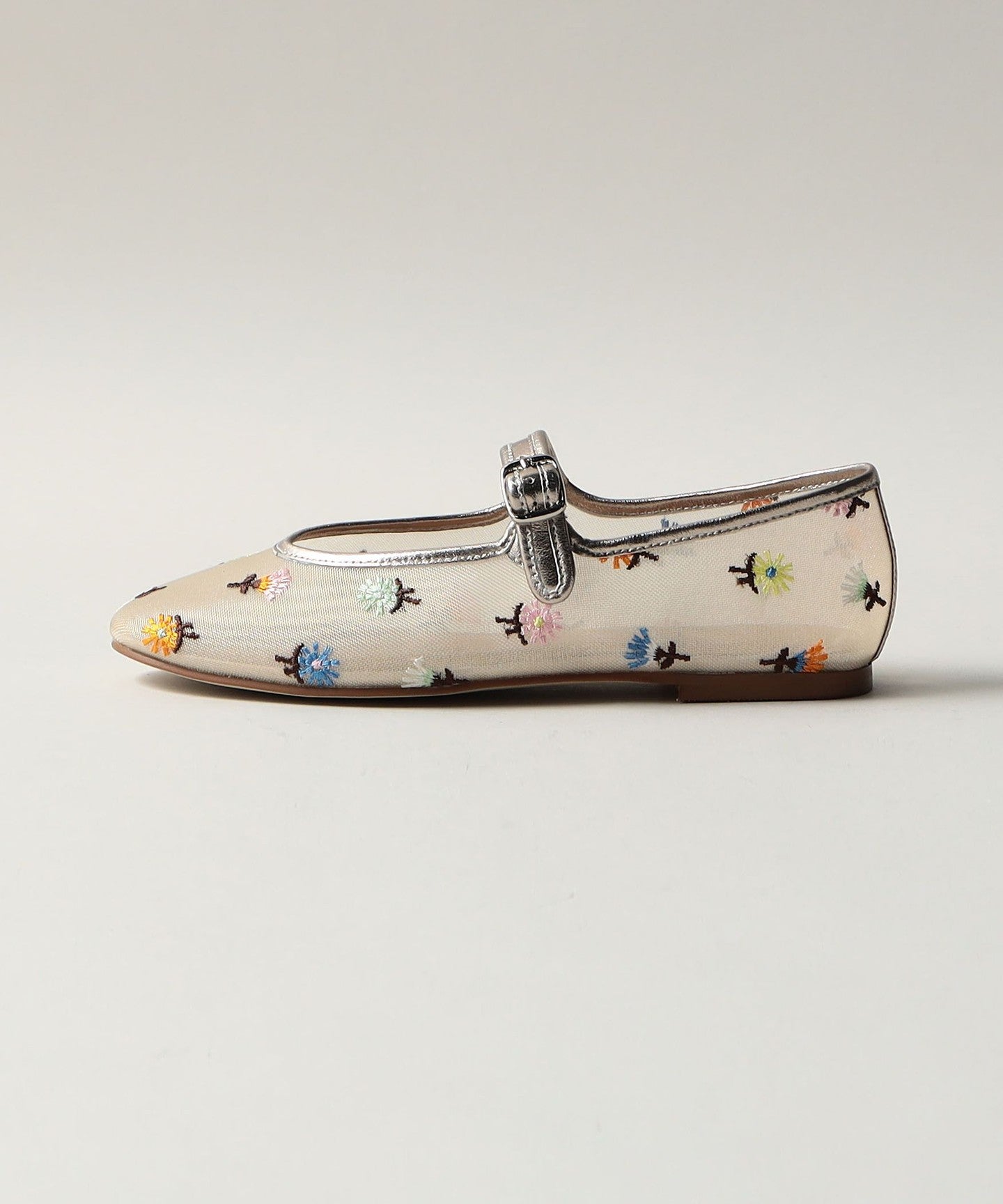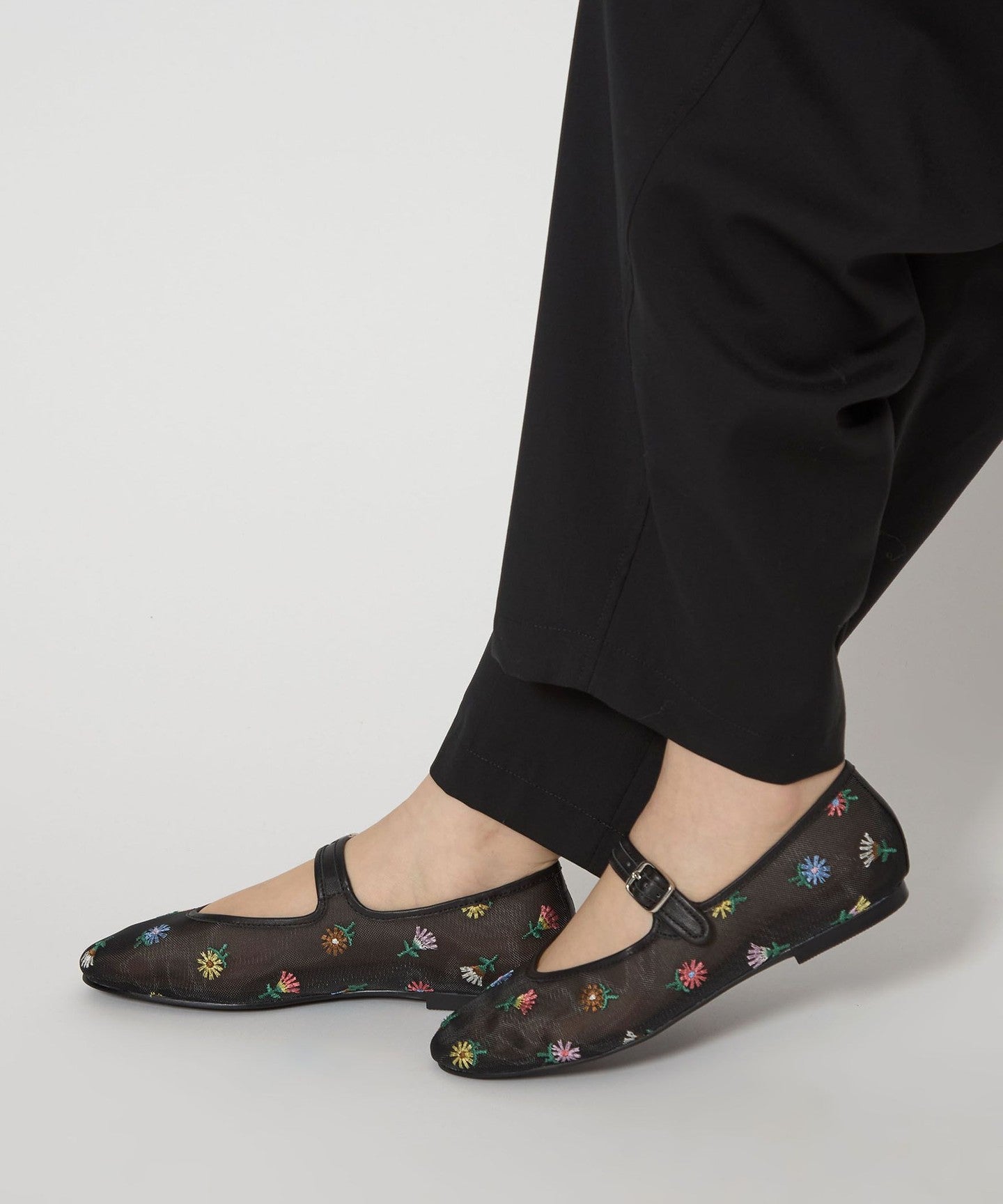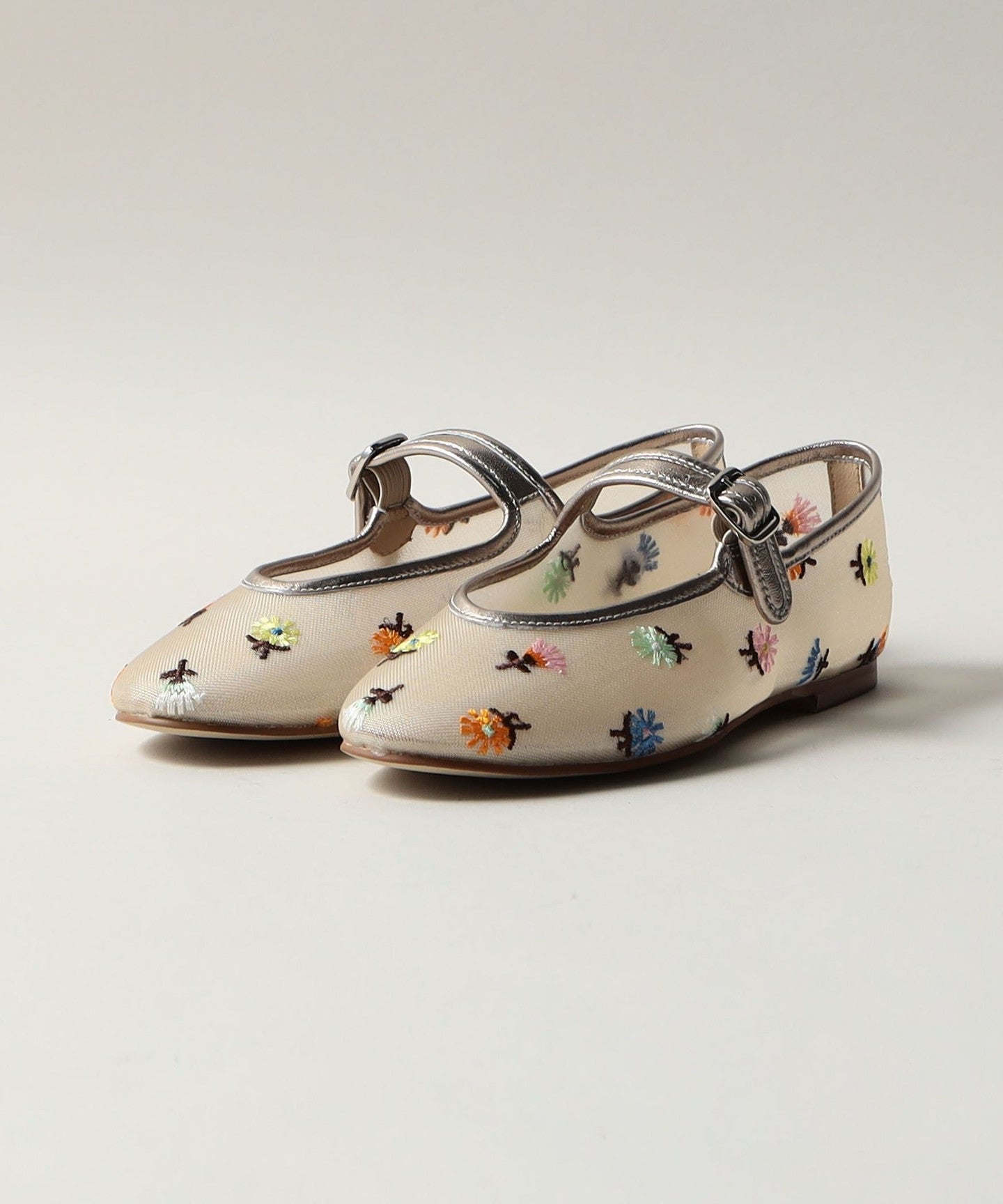 Eye-catching floral embroidery Mary Jane flats