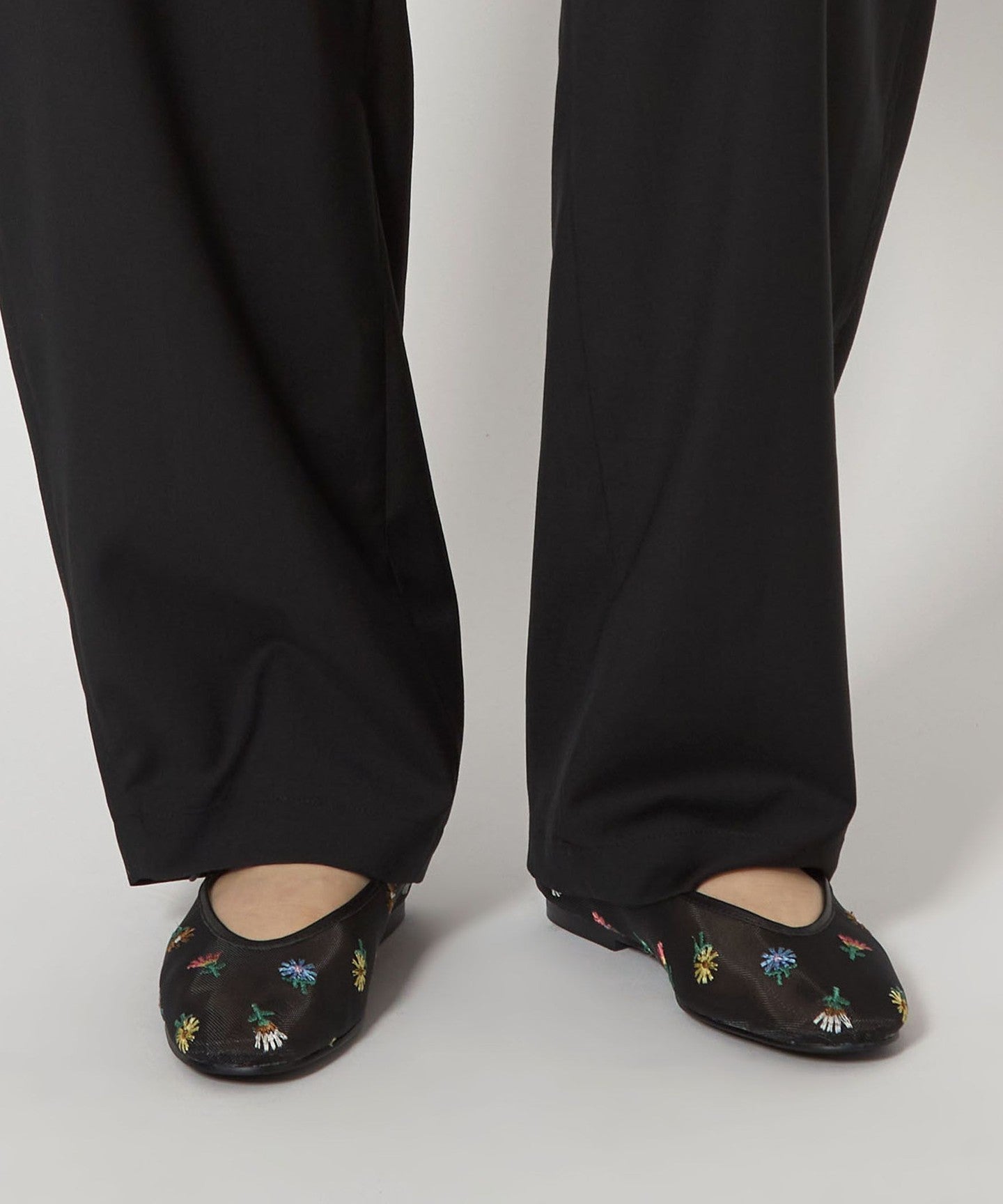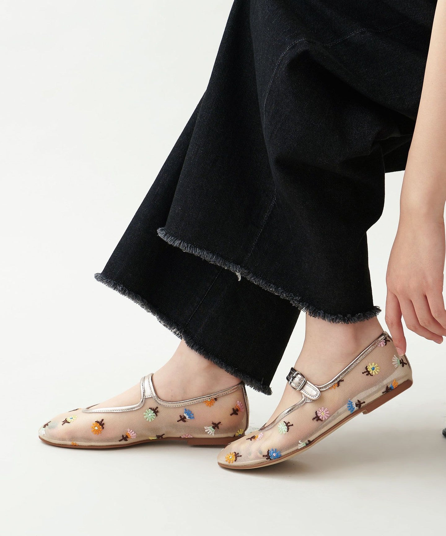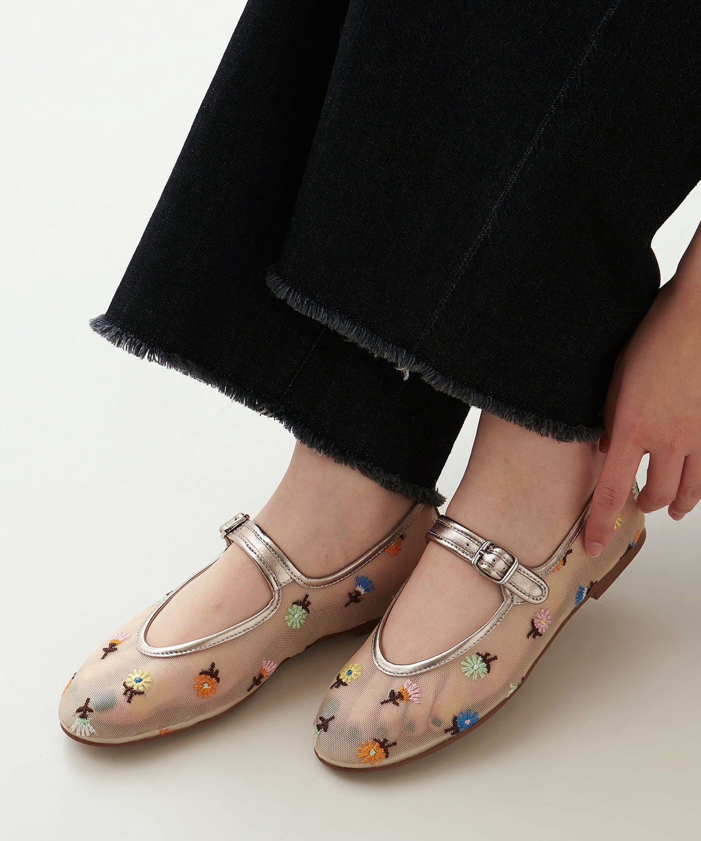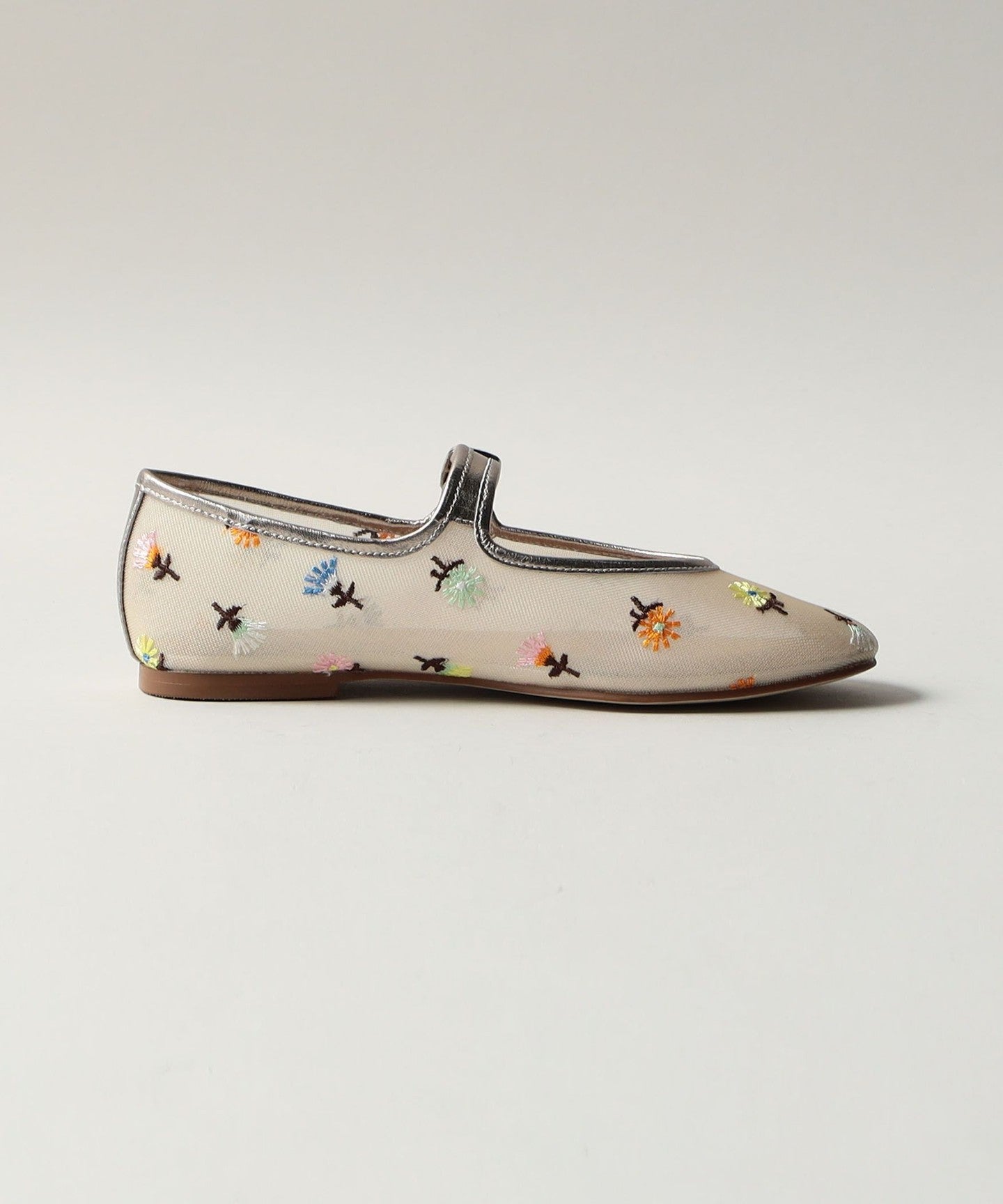 Eye-catching floral embroidery Mary Jane flats