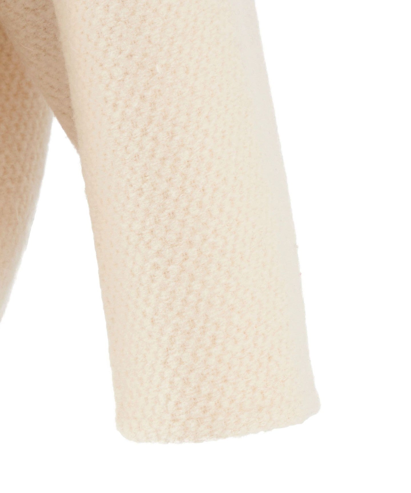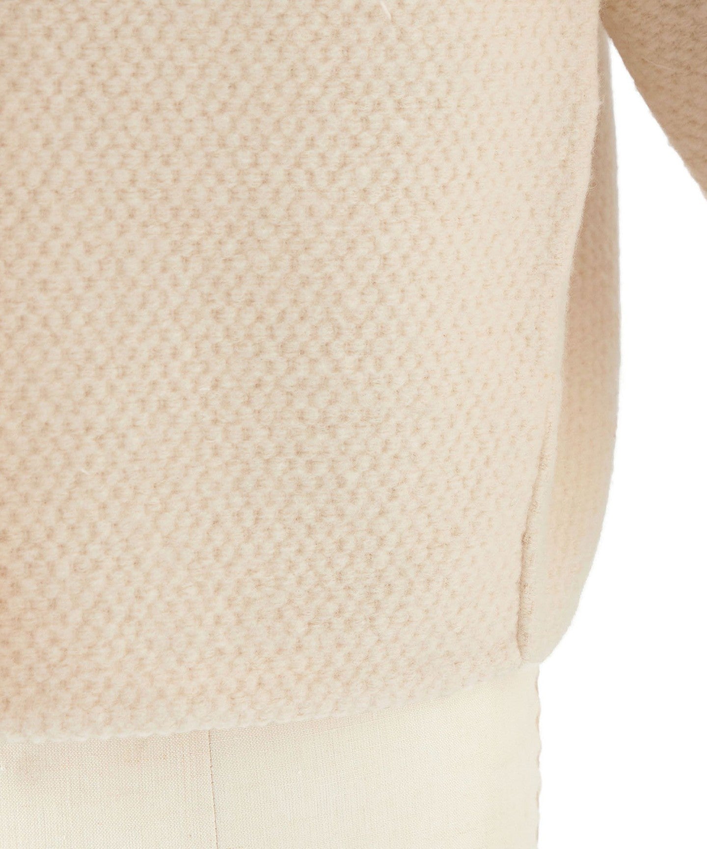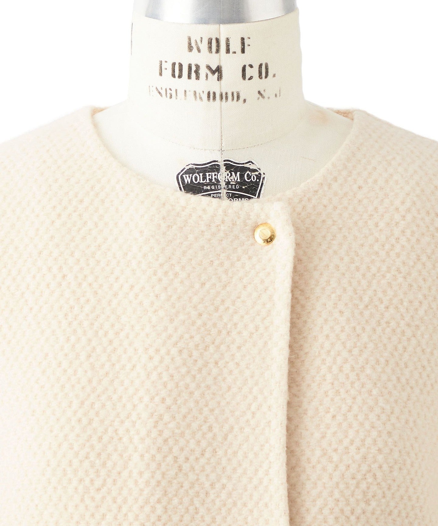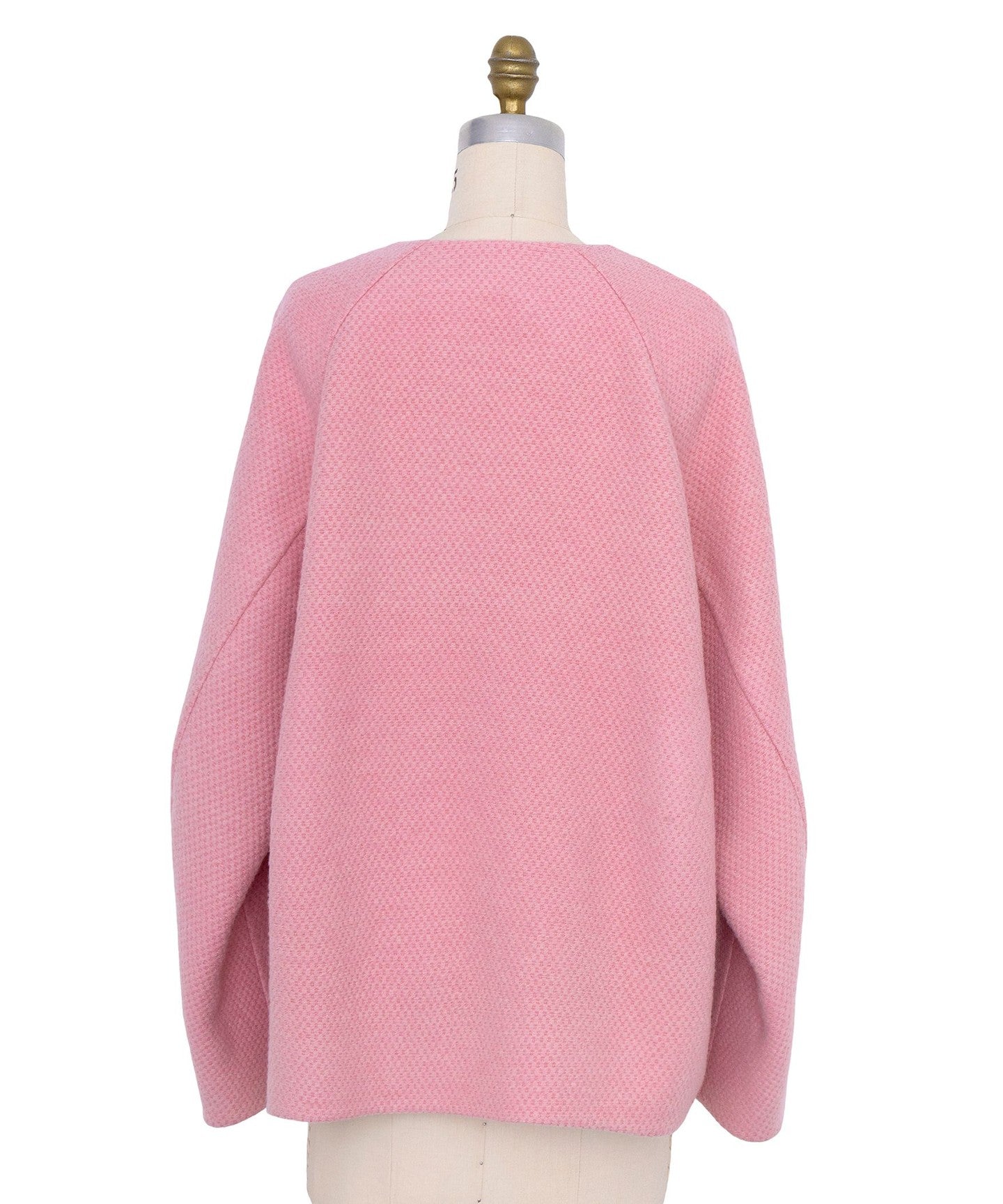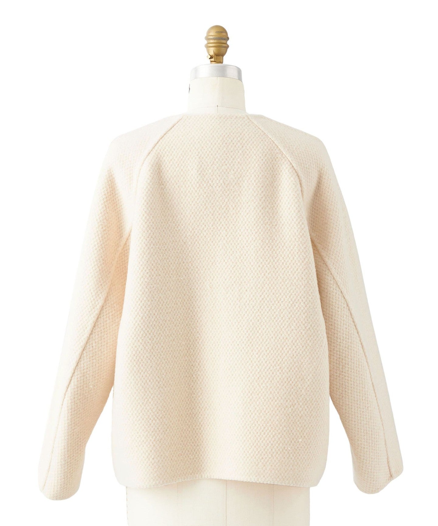 It has a long, cocoon-shaped silhouette that falls to the hips, allowing for a wide range of styling options.