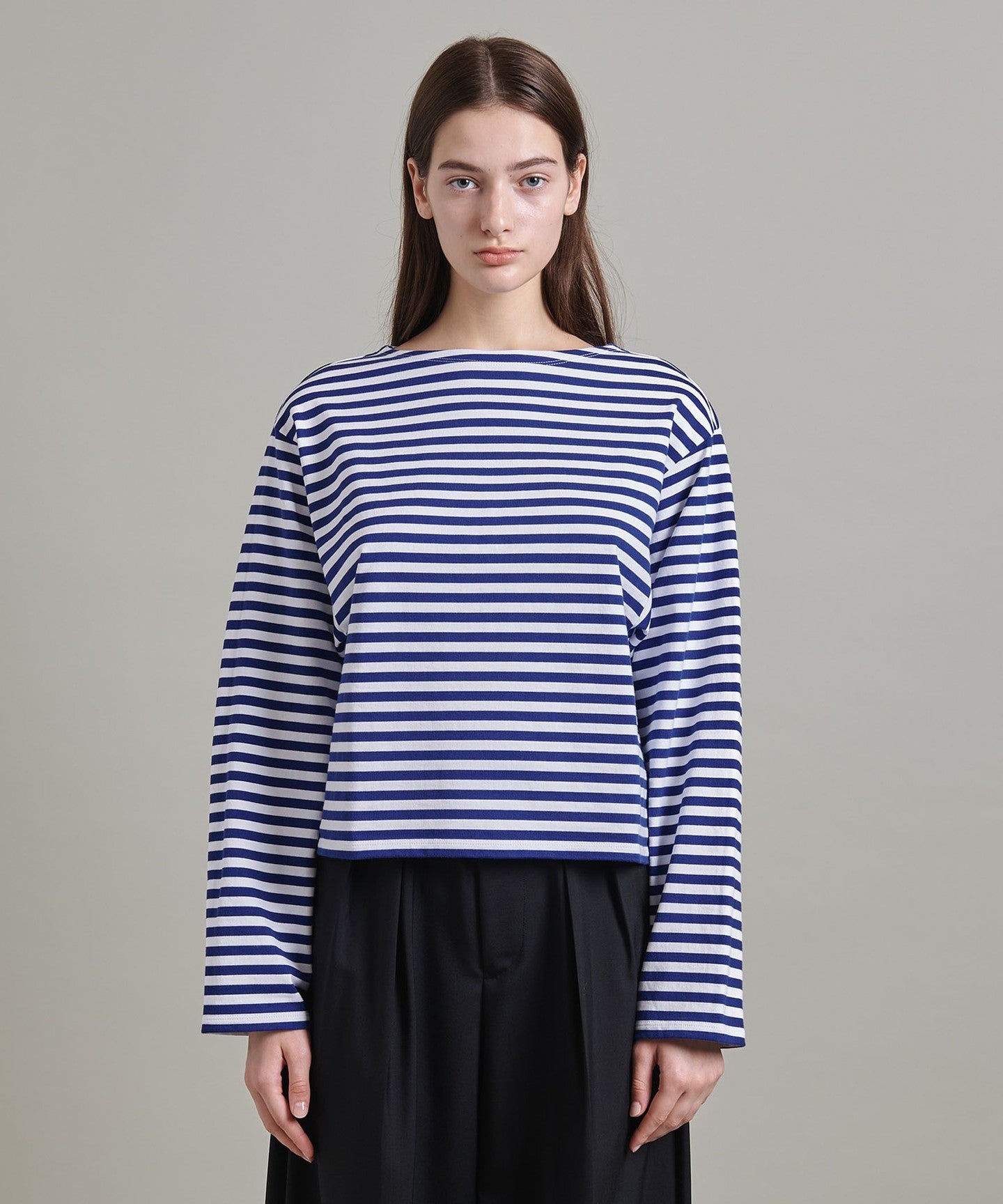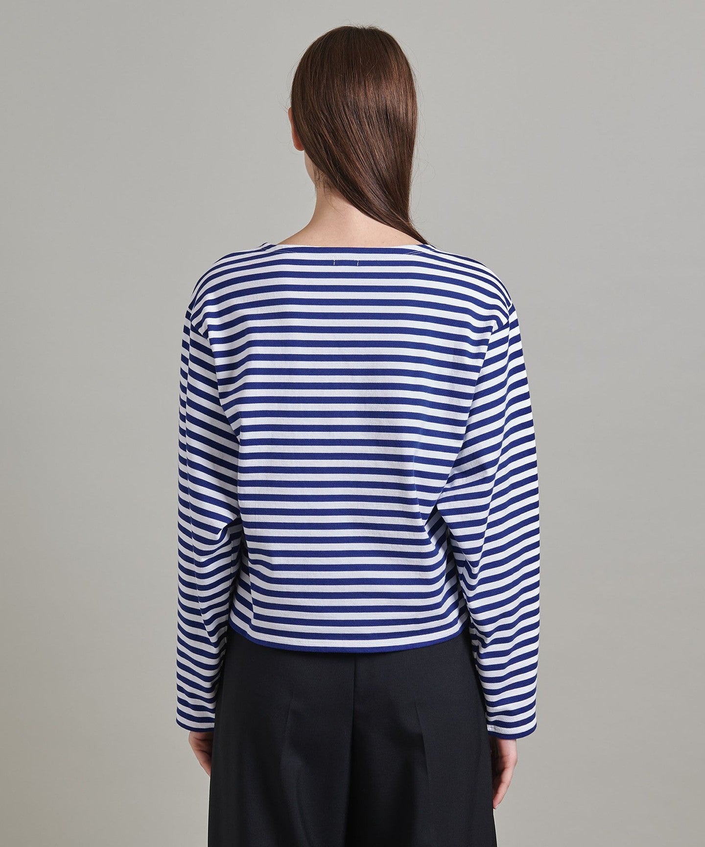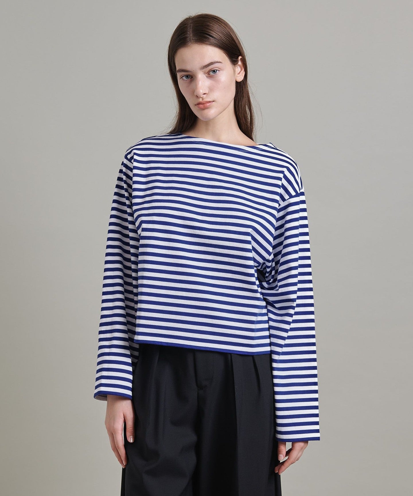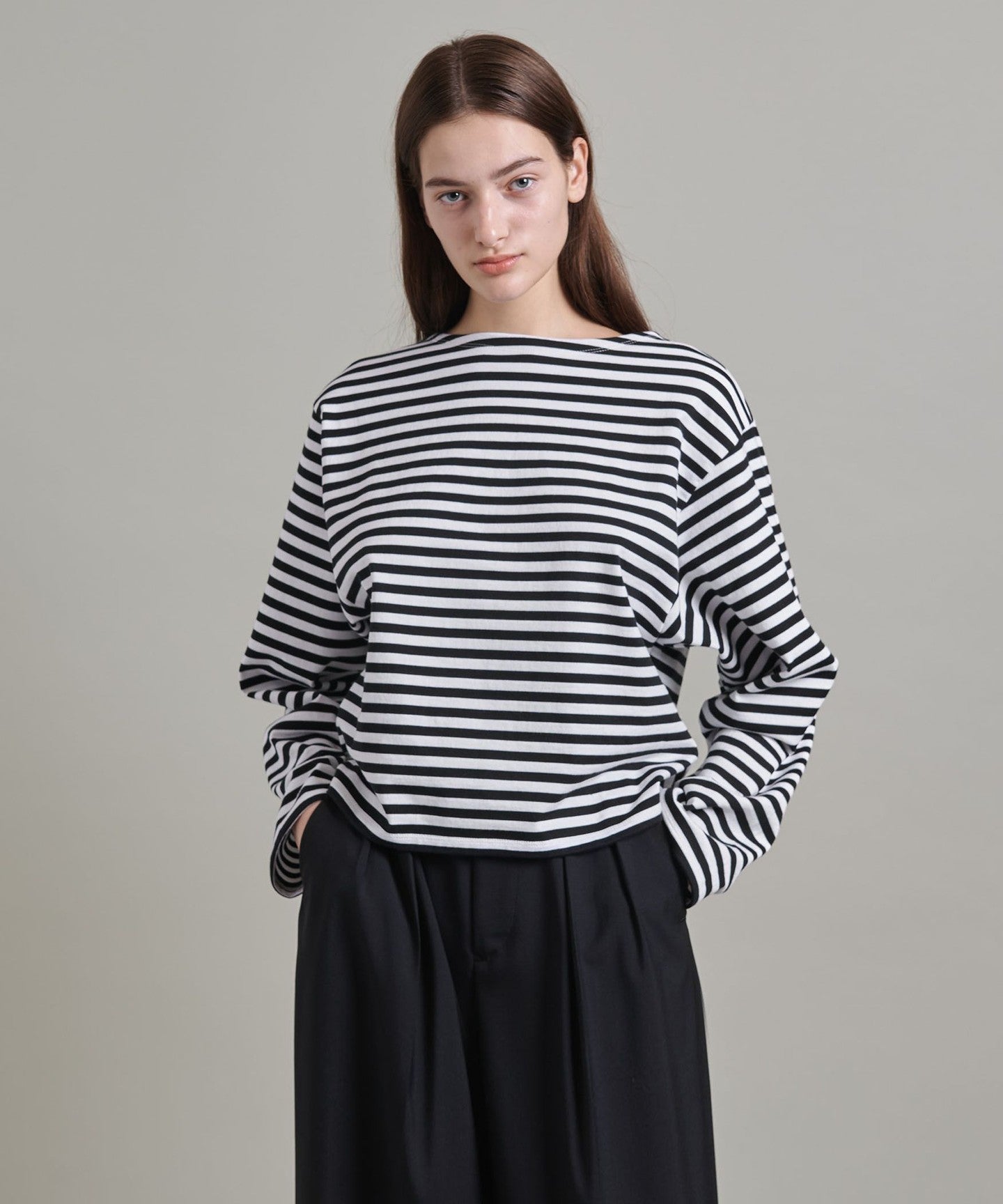This striped T-shirt has a well-balanced boxy silhouette and long, loose, dolman-style sleeves.
