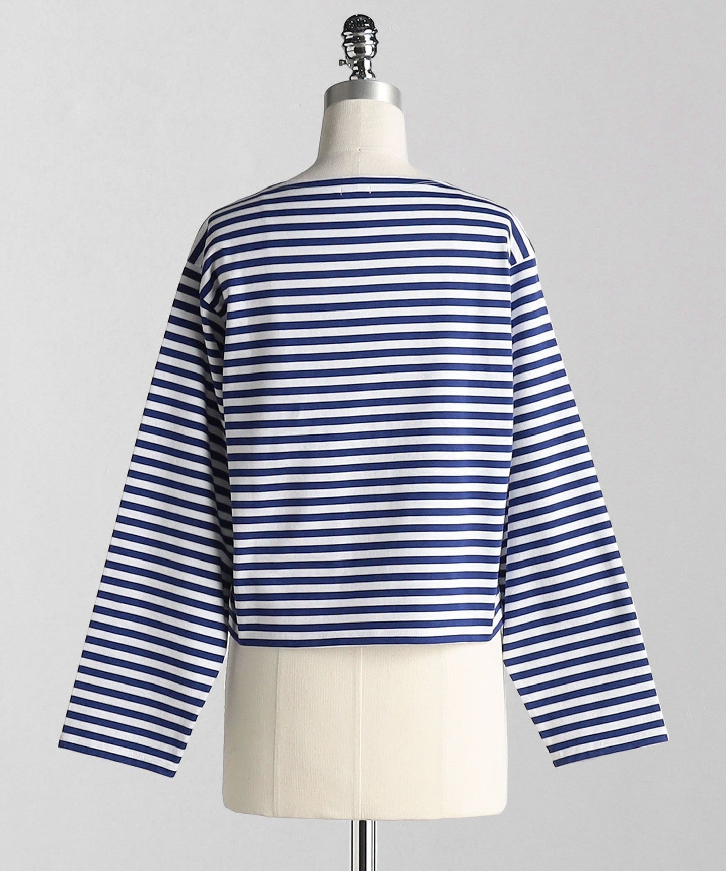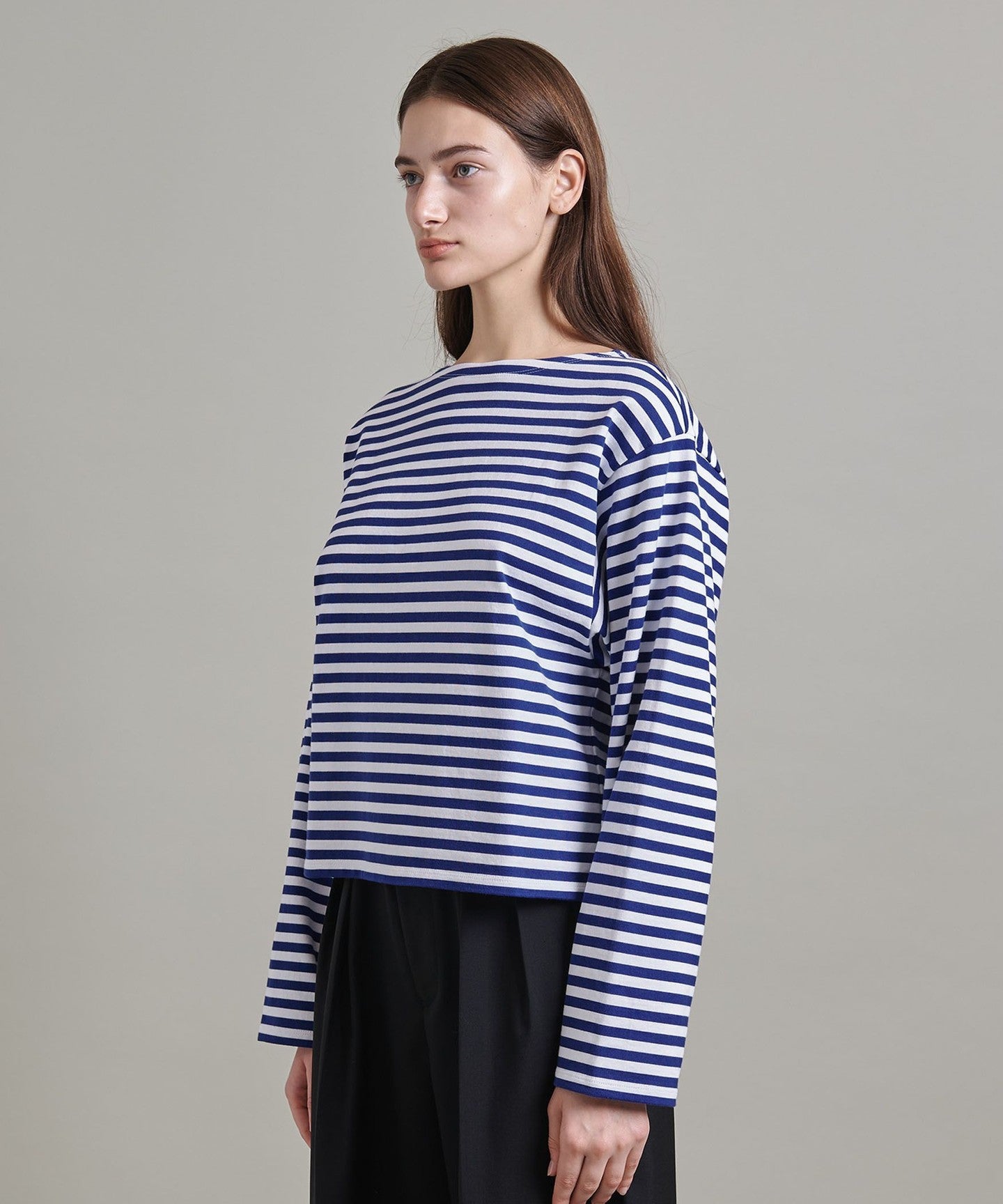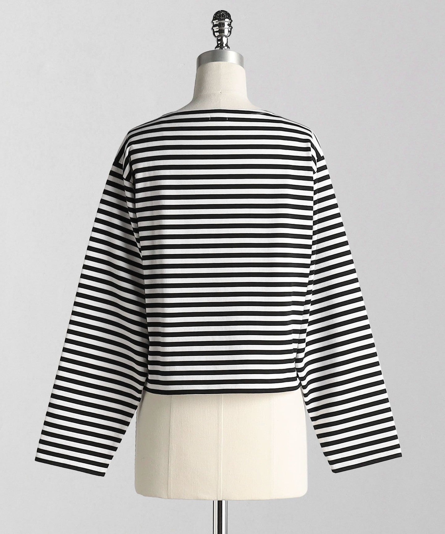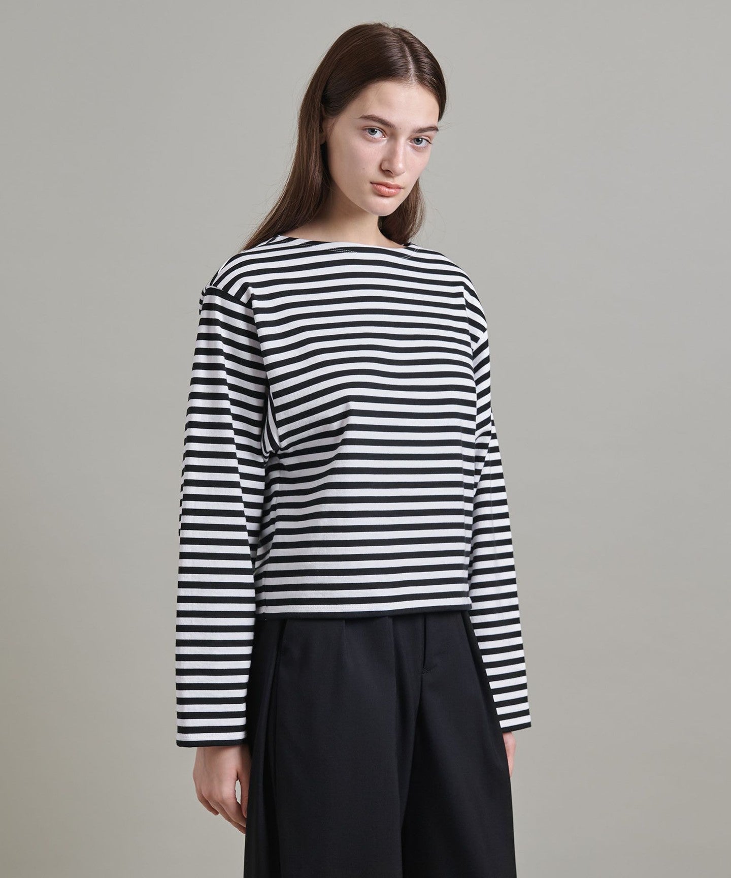 This striped T-shirt has a well-balanced boxy silhouette and long, loose, dolman-style sleeves.