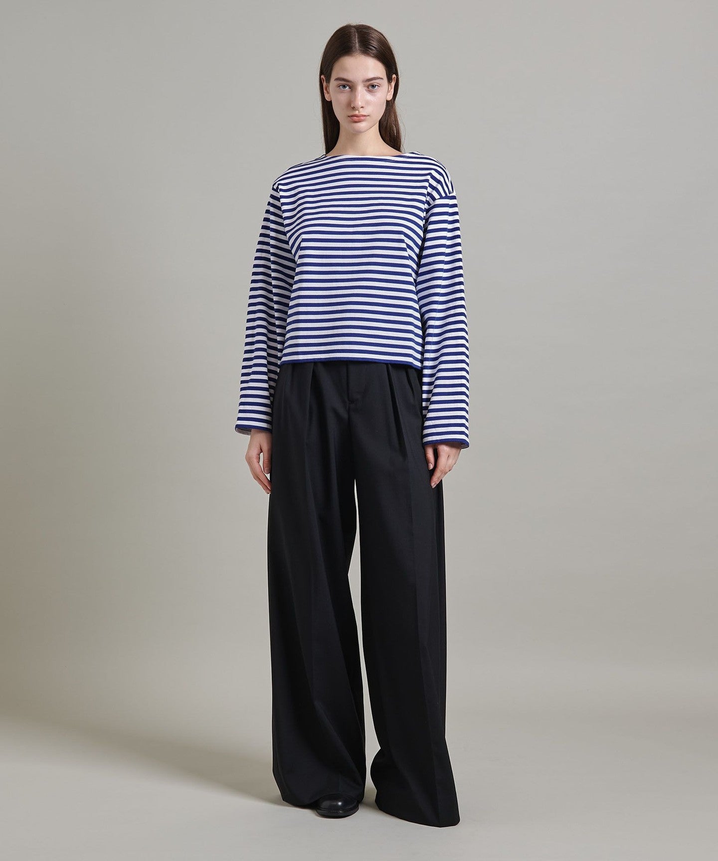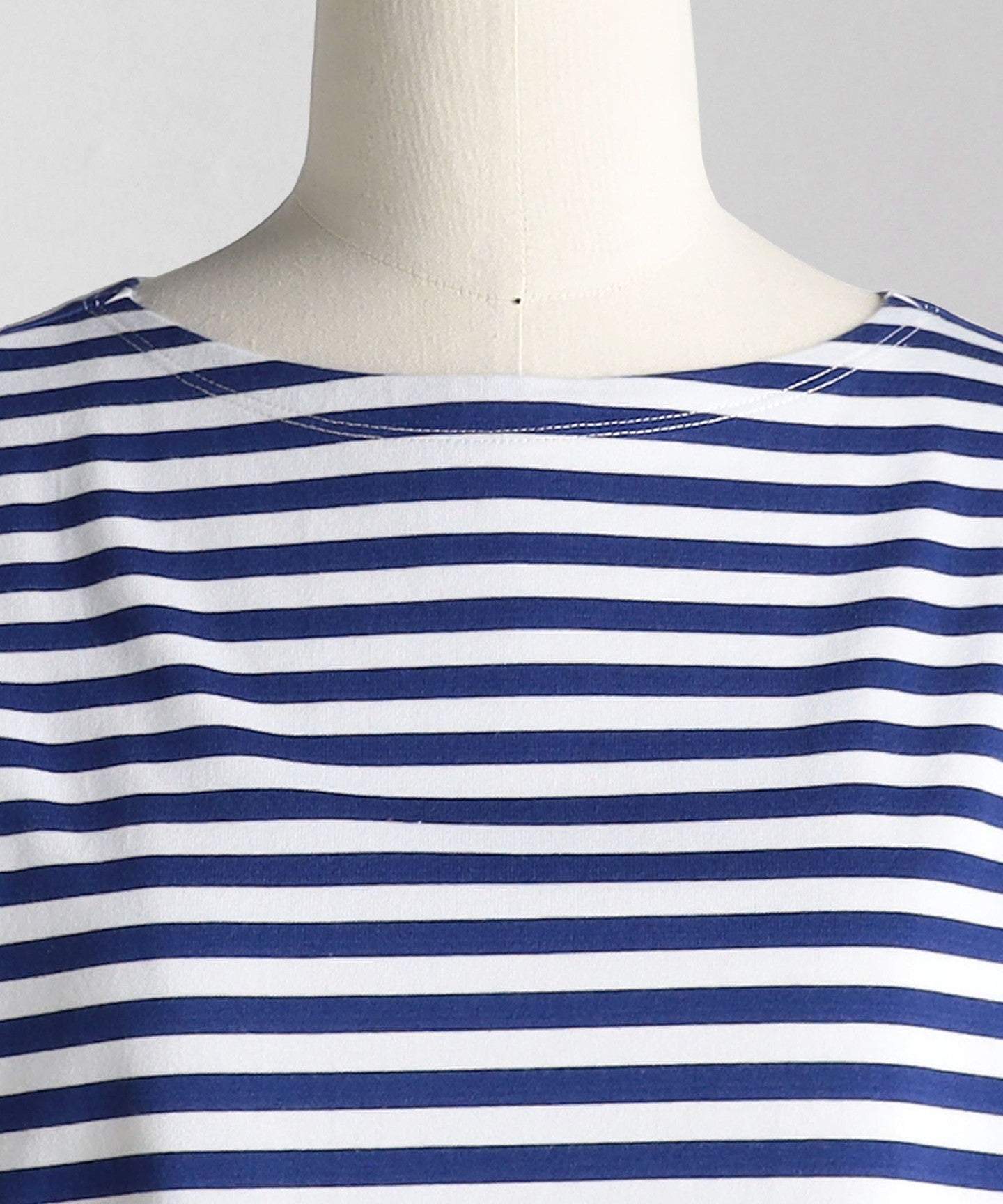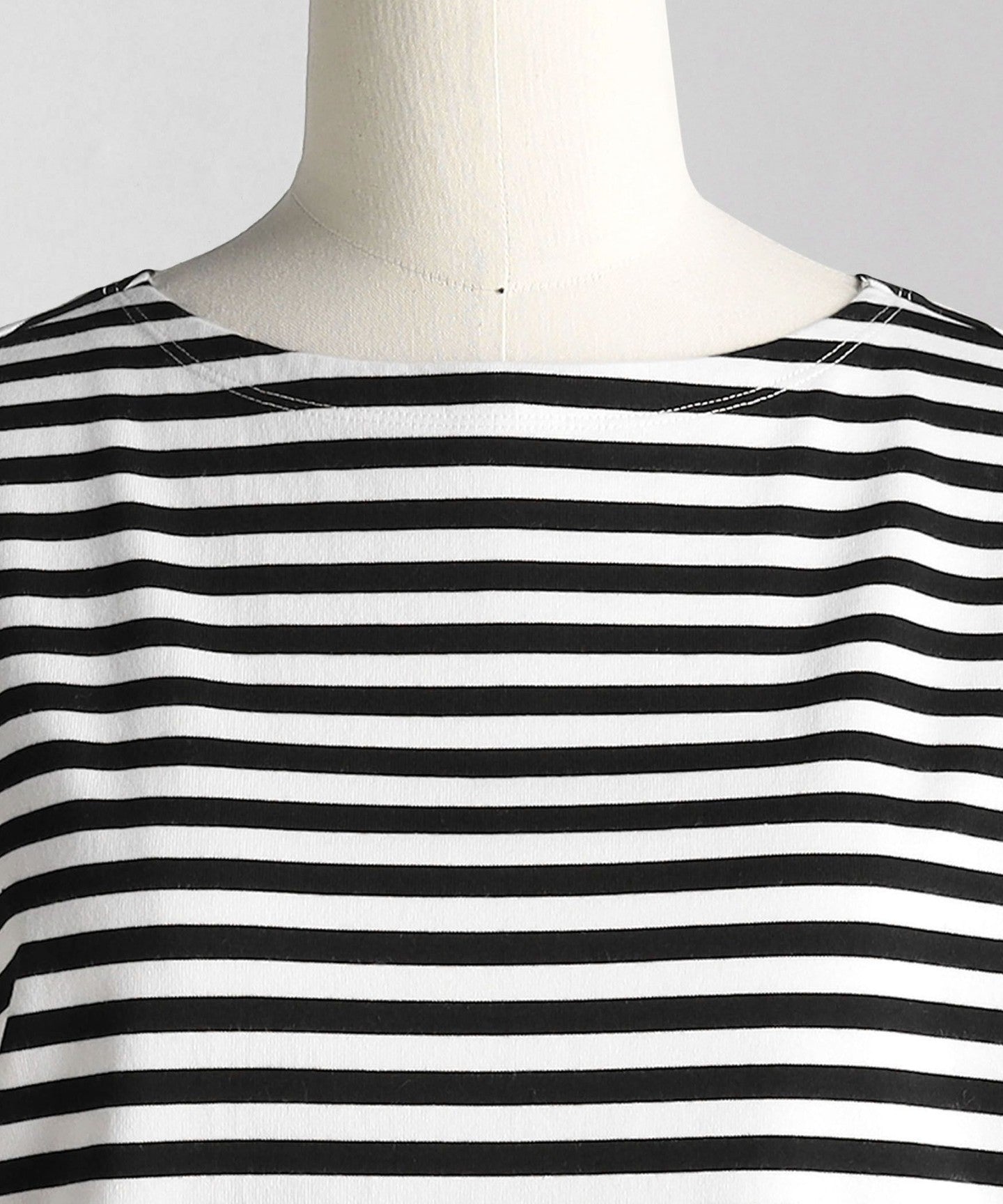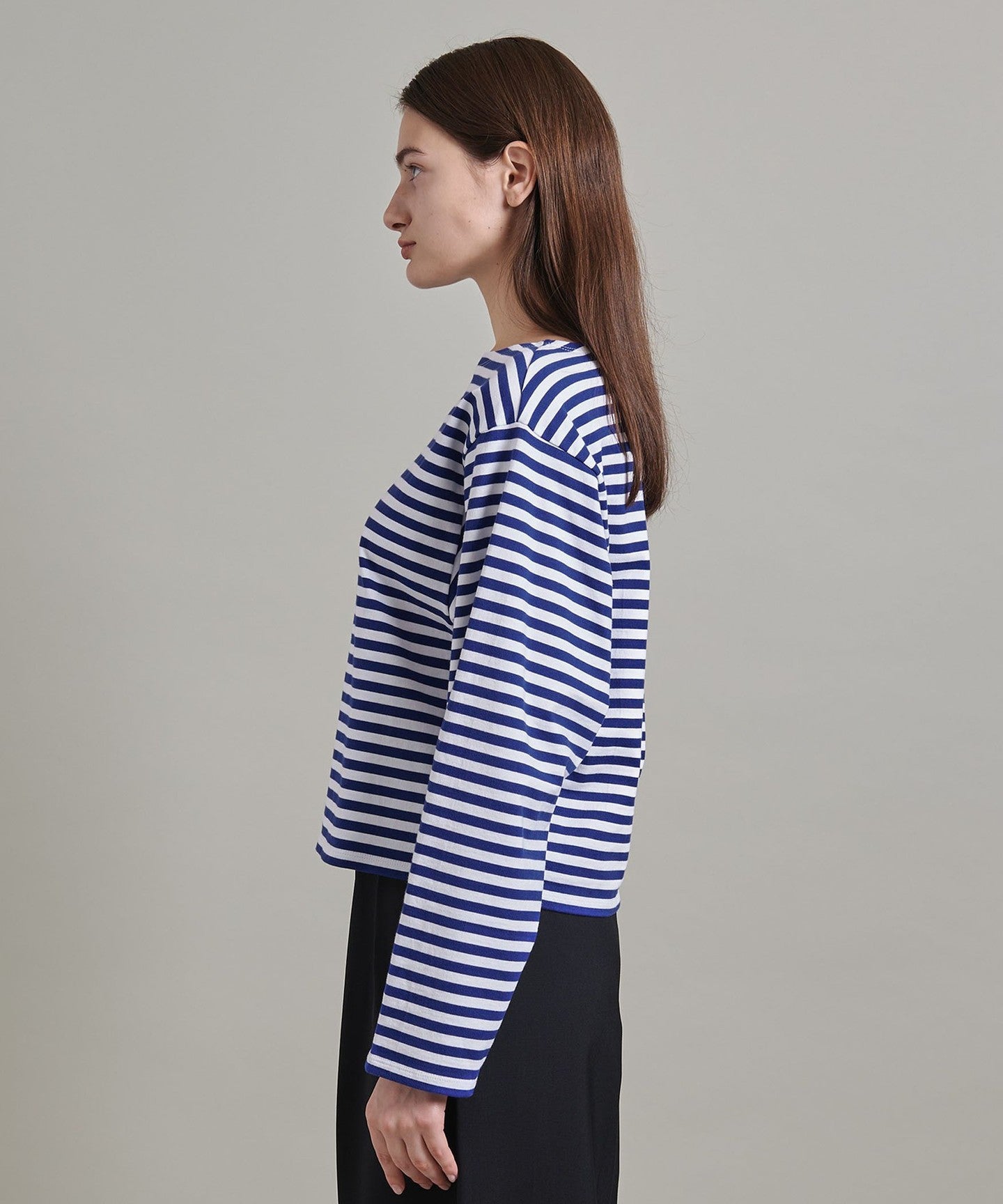 This striped T-shirt has a well-balanced boxy silhouette and long, loose, dolman-style sleeves.
