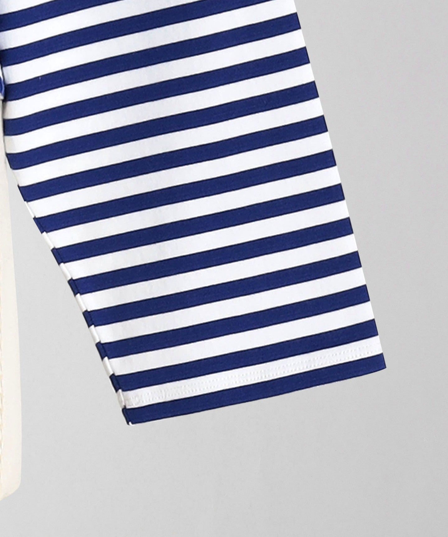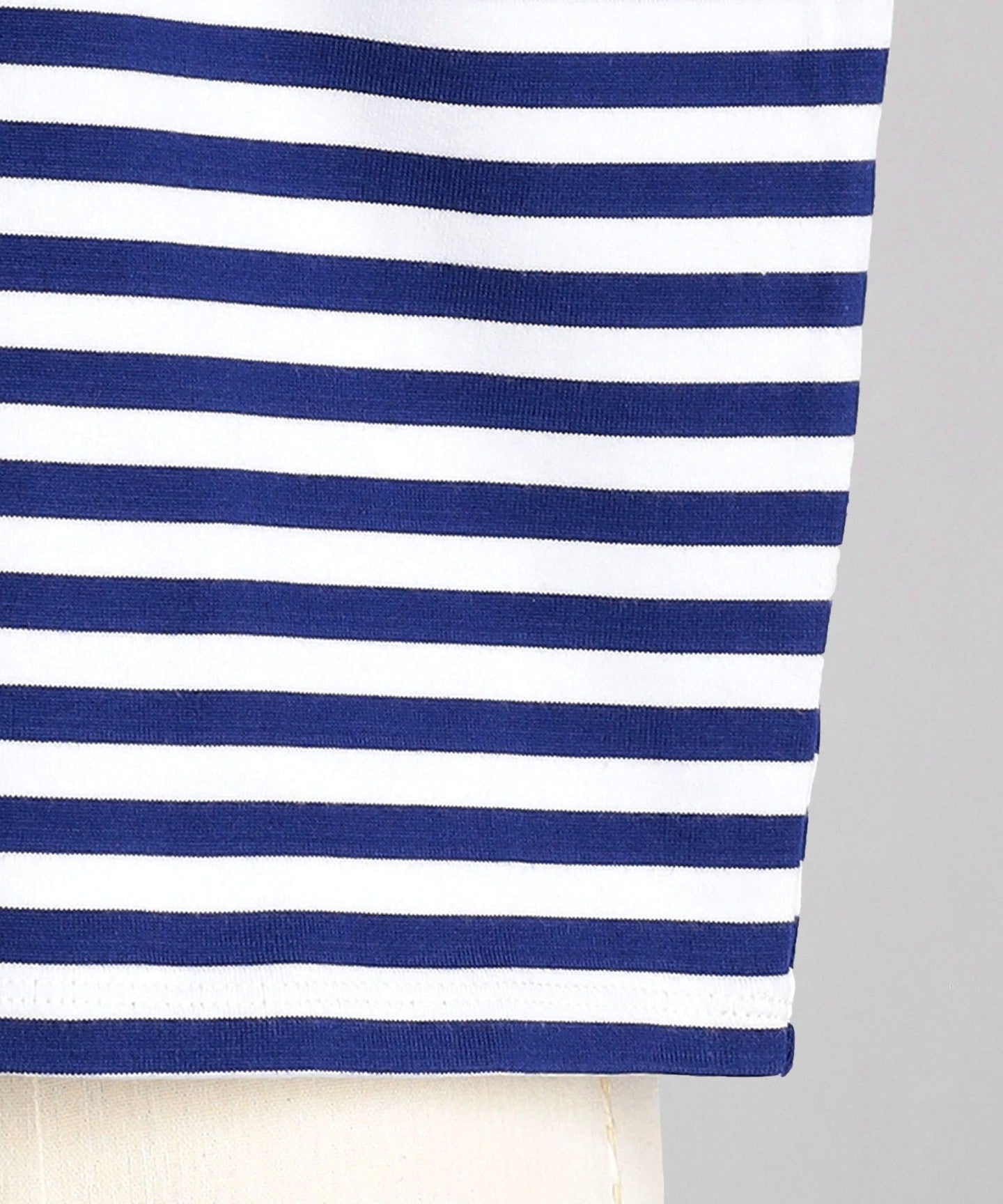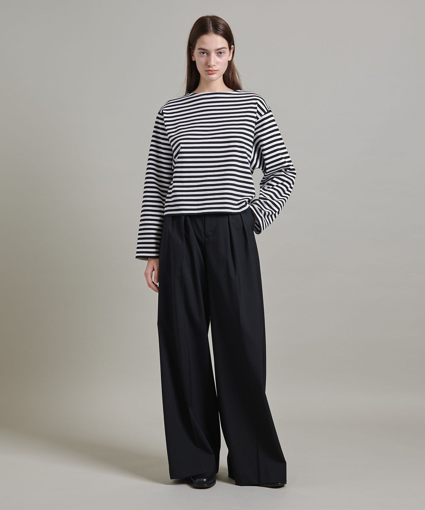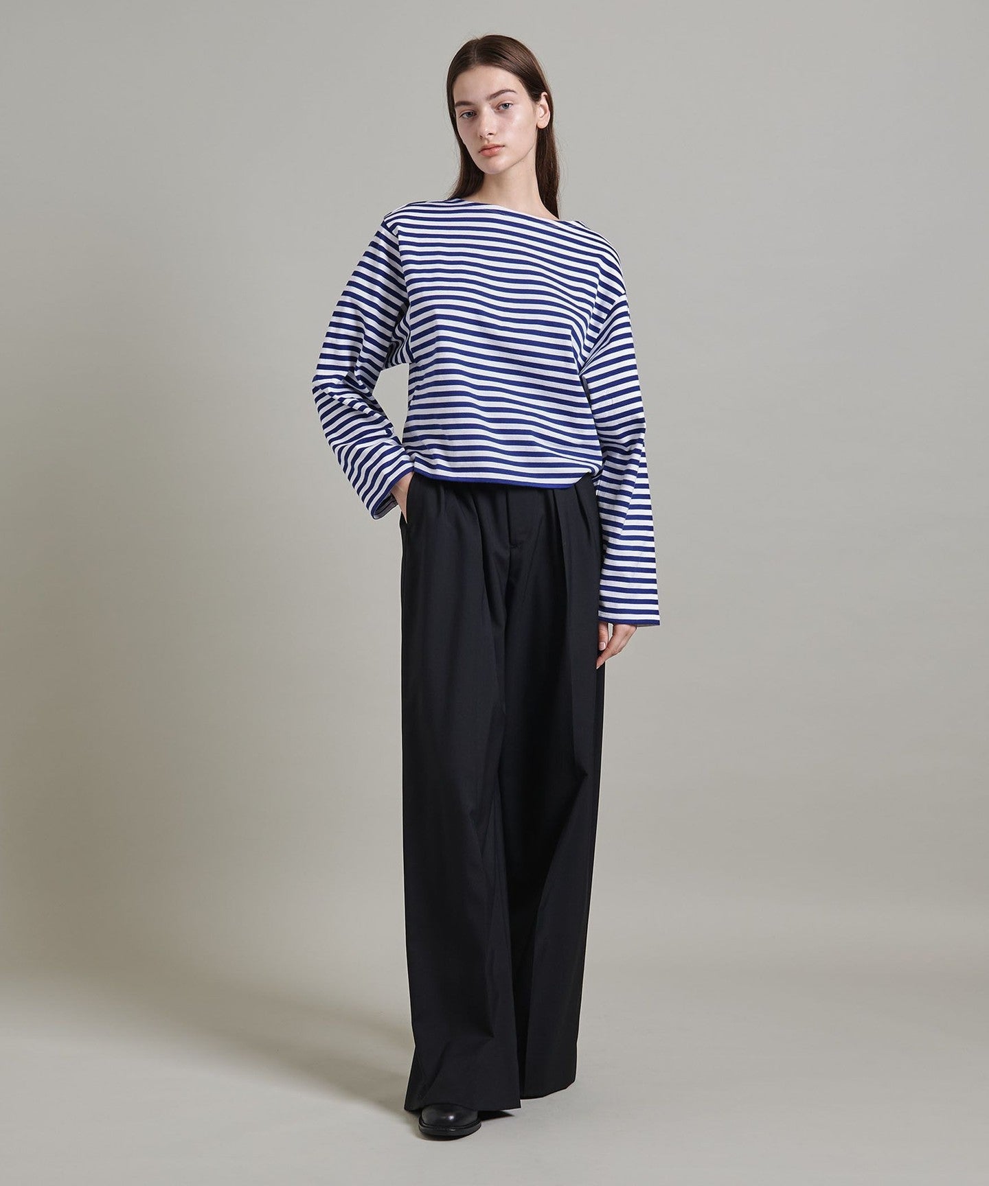 This striped T-shirt has a well-balanced boxy silhouette and long, loose, dolman-style sleeves.
