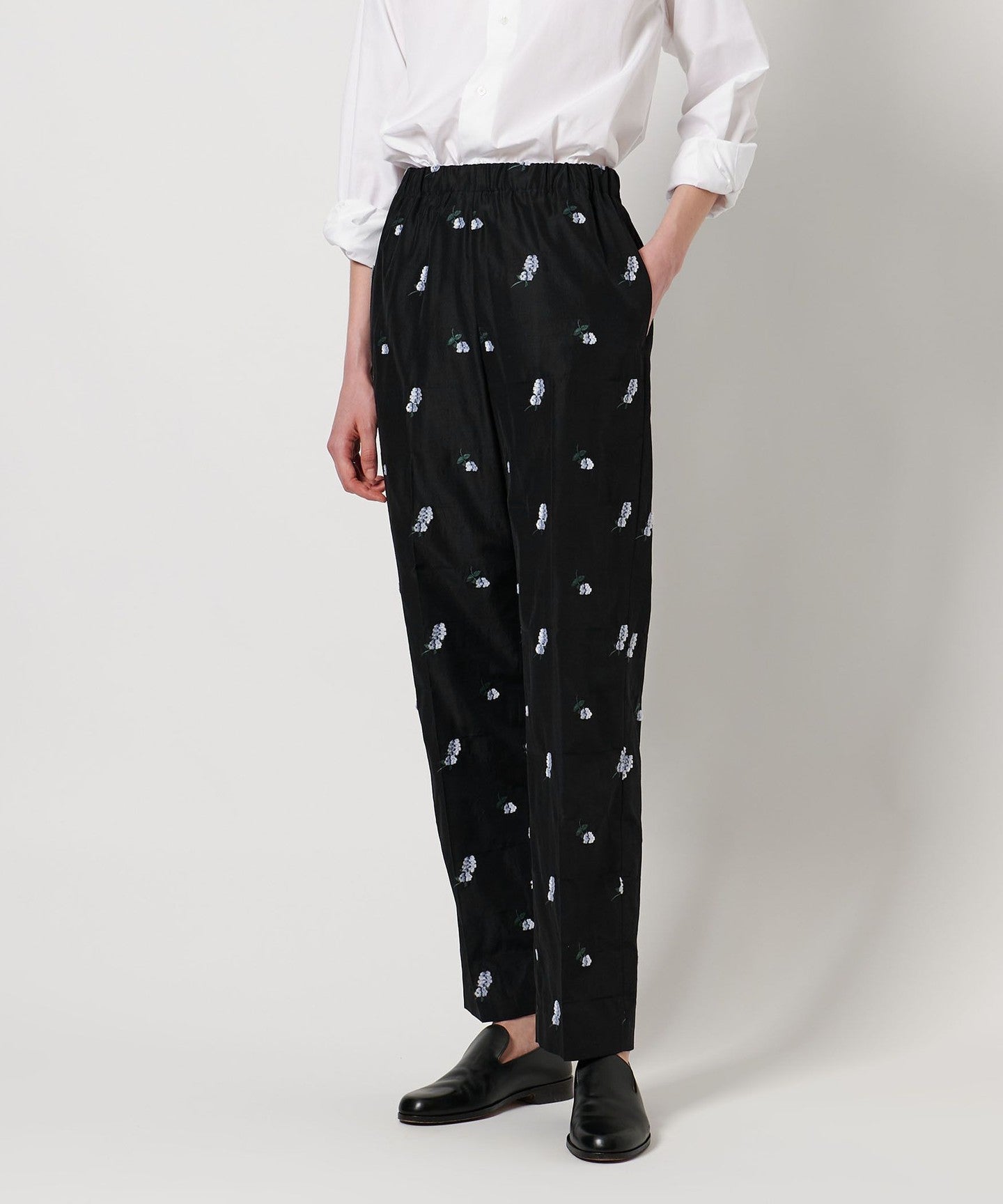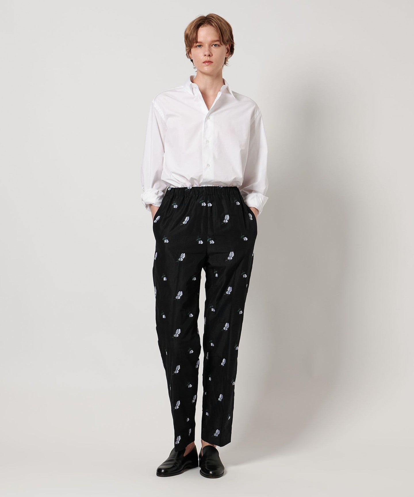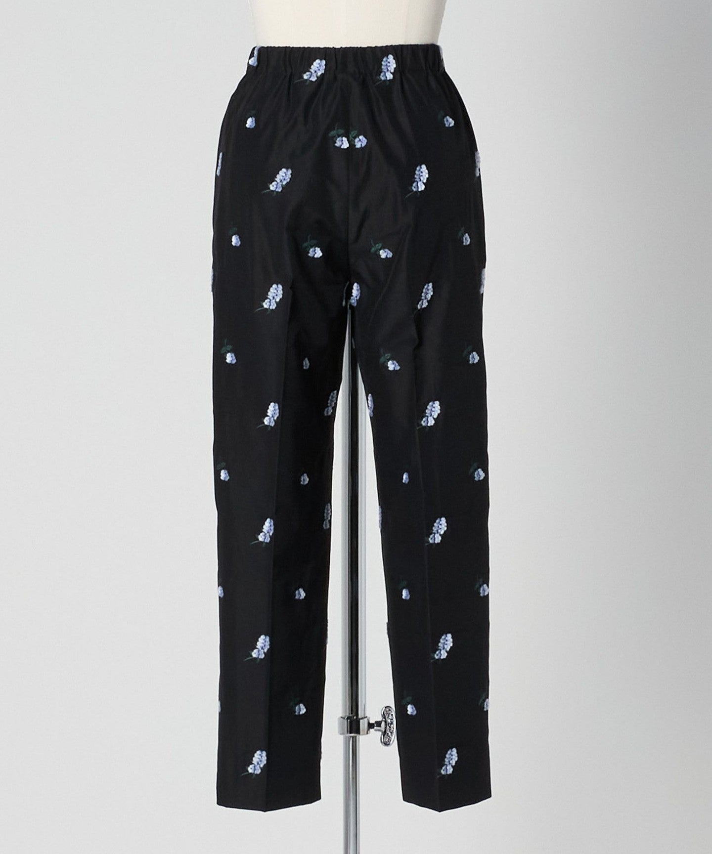 These tapered pants feature a cute catnip pattern and are made from original jacquard material.