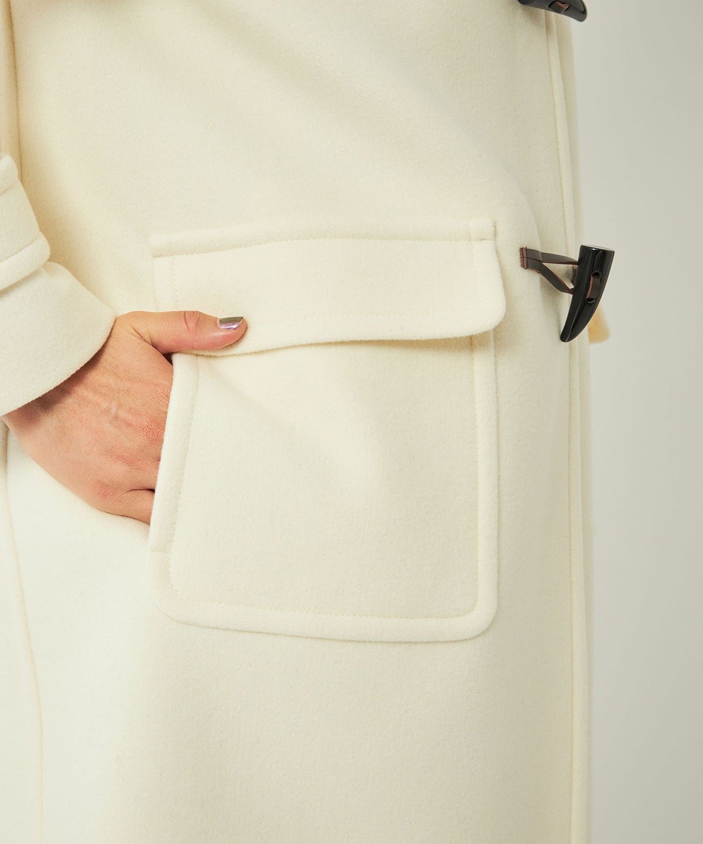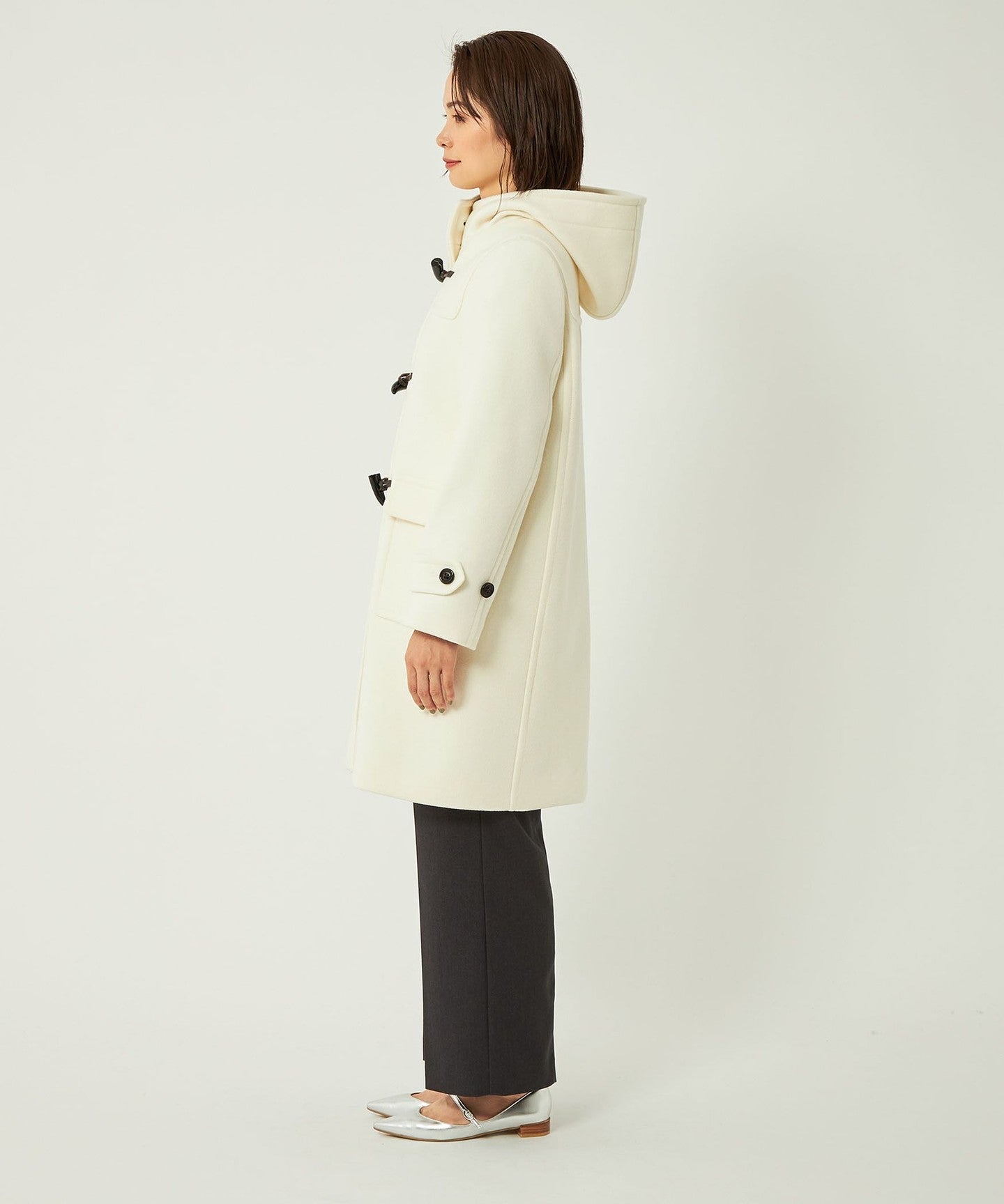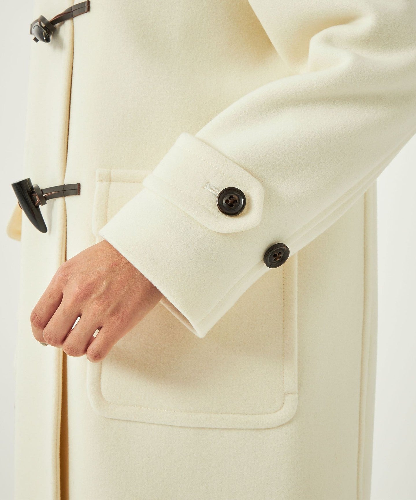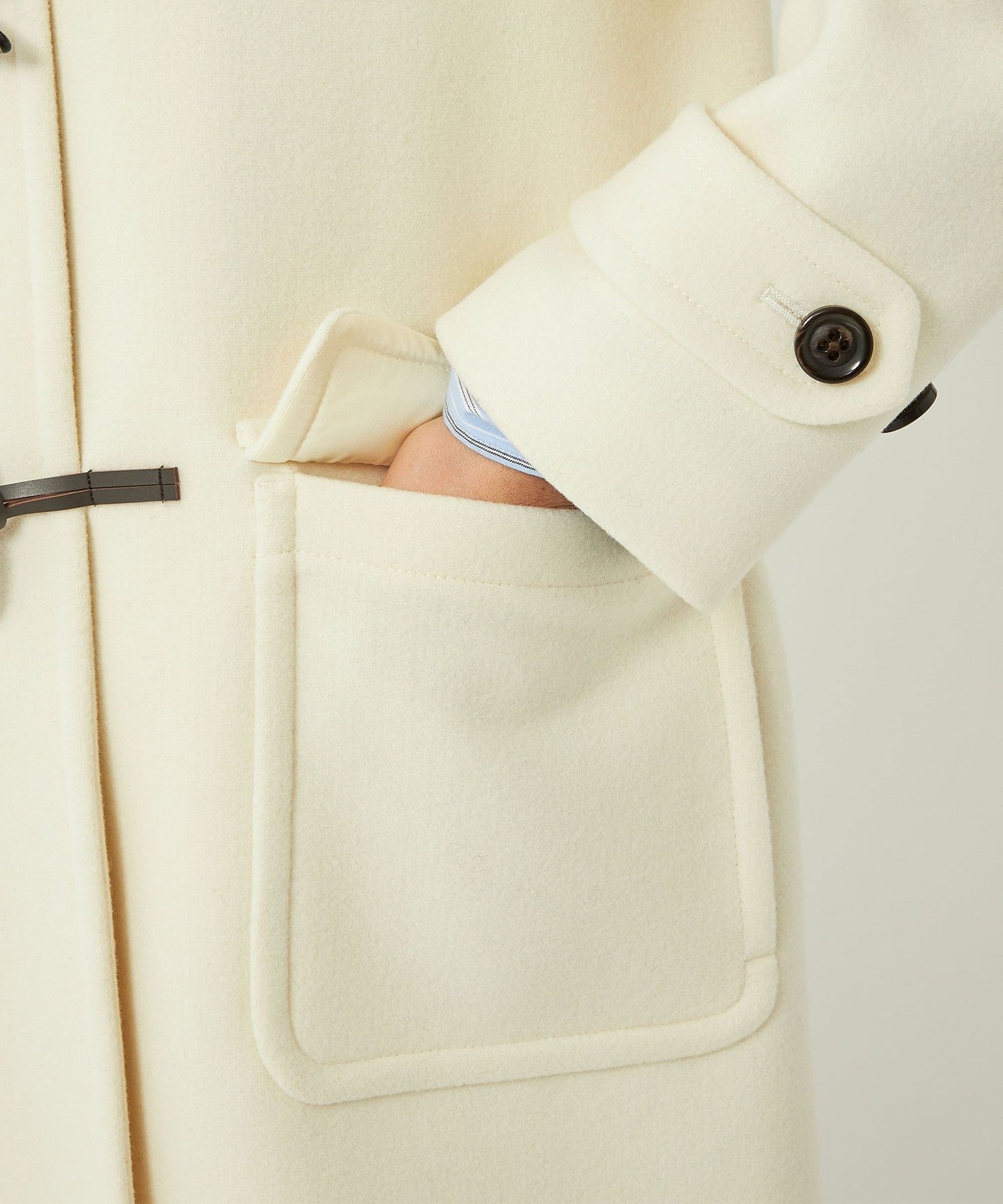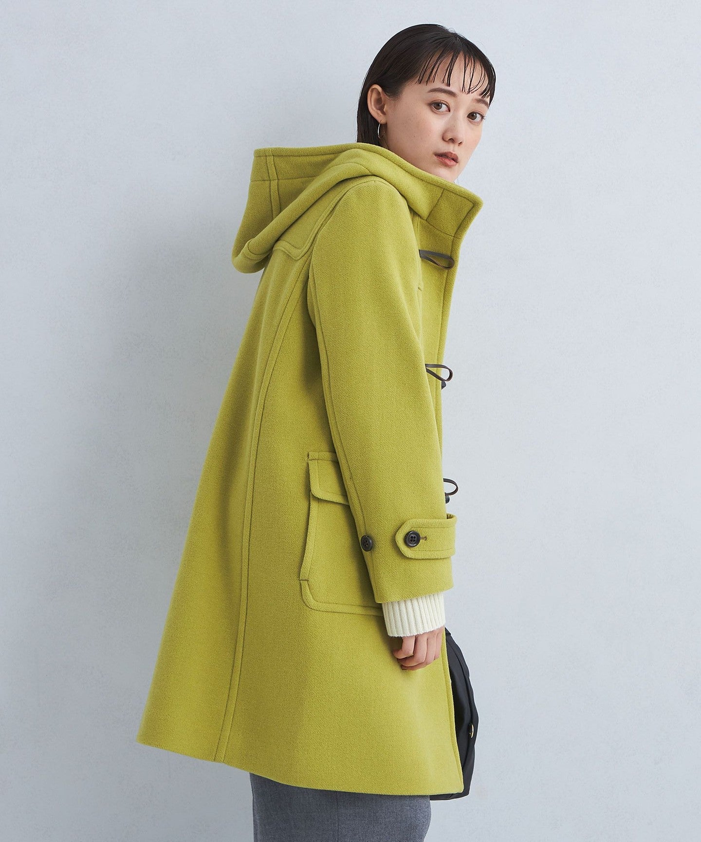 The neat silhouette when worn with the toggle button open is also a highlight.