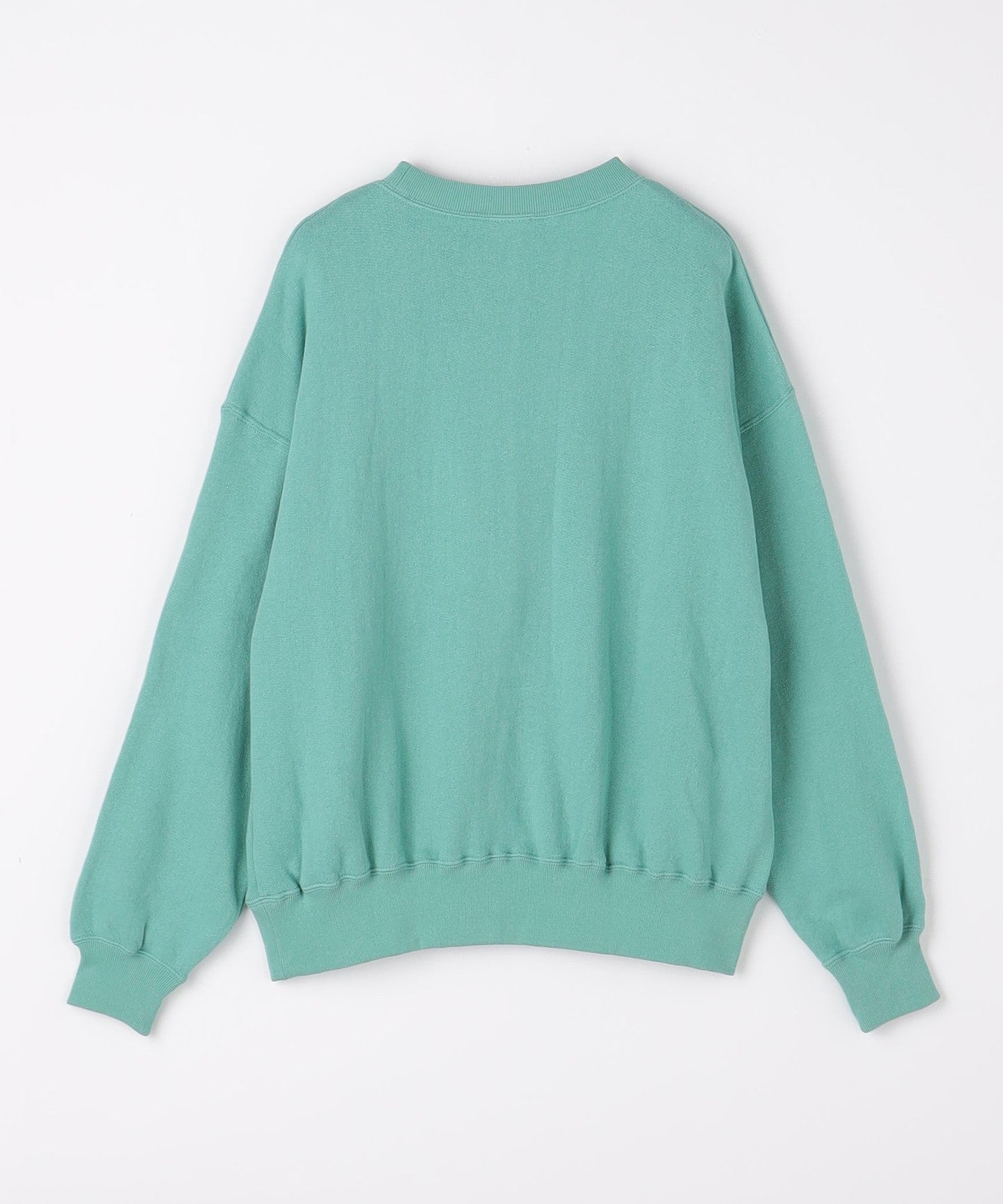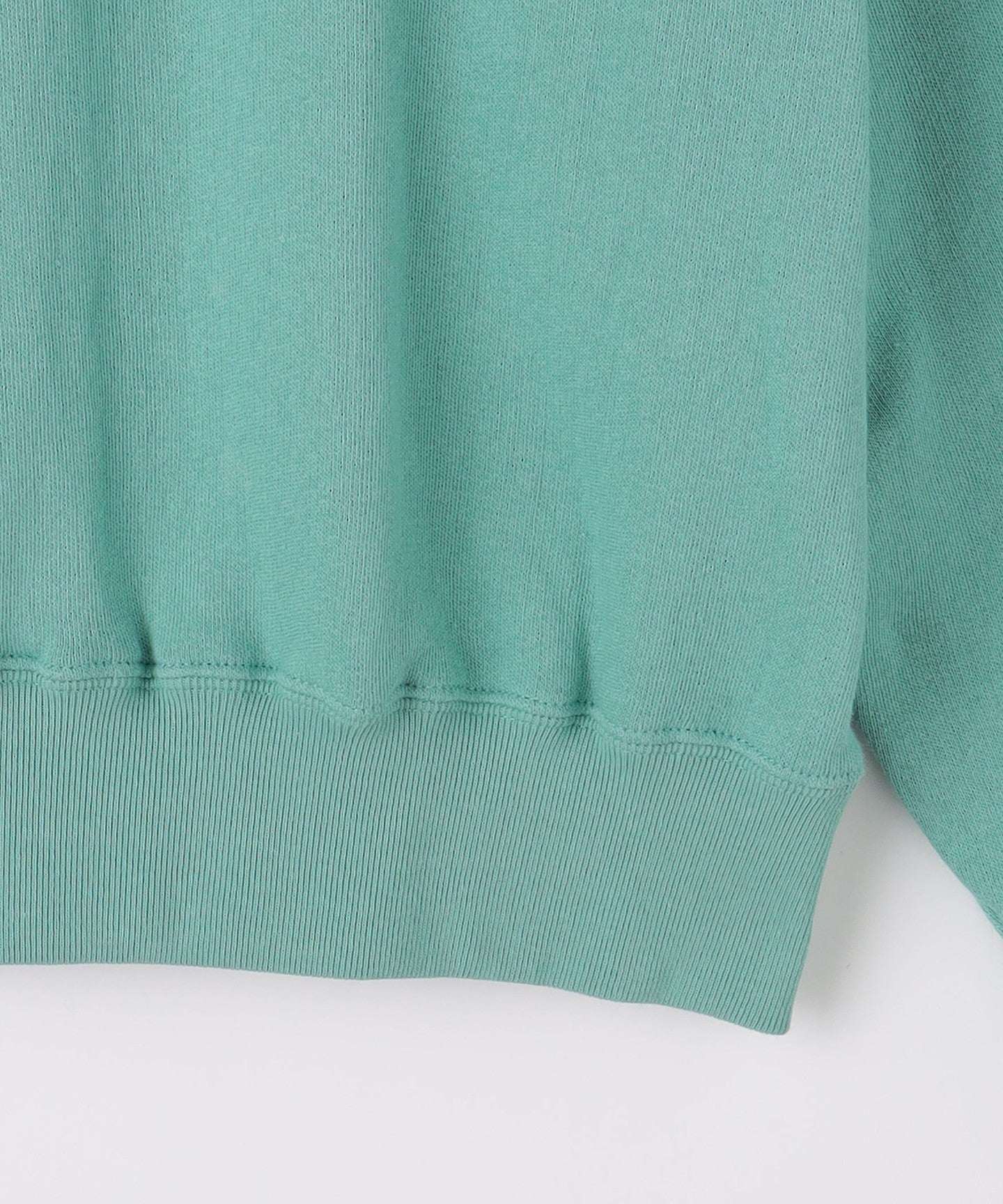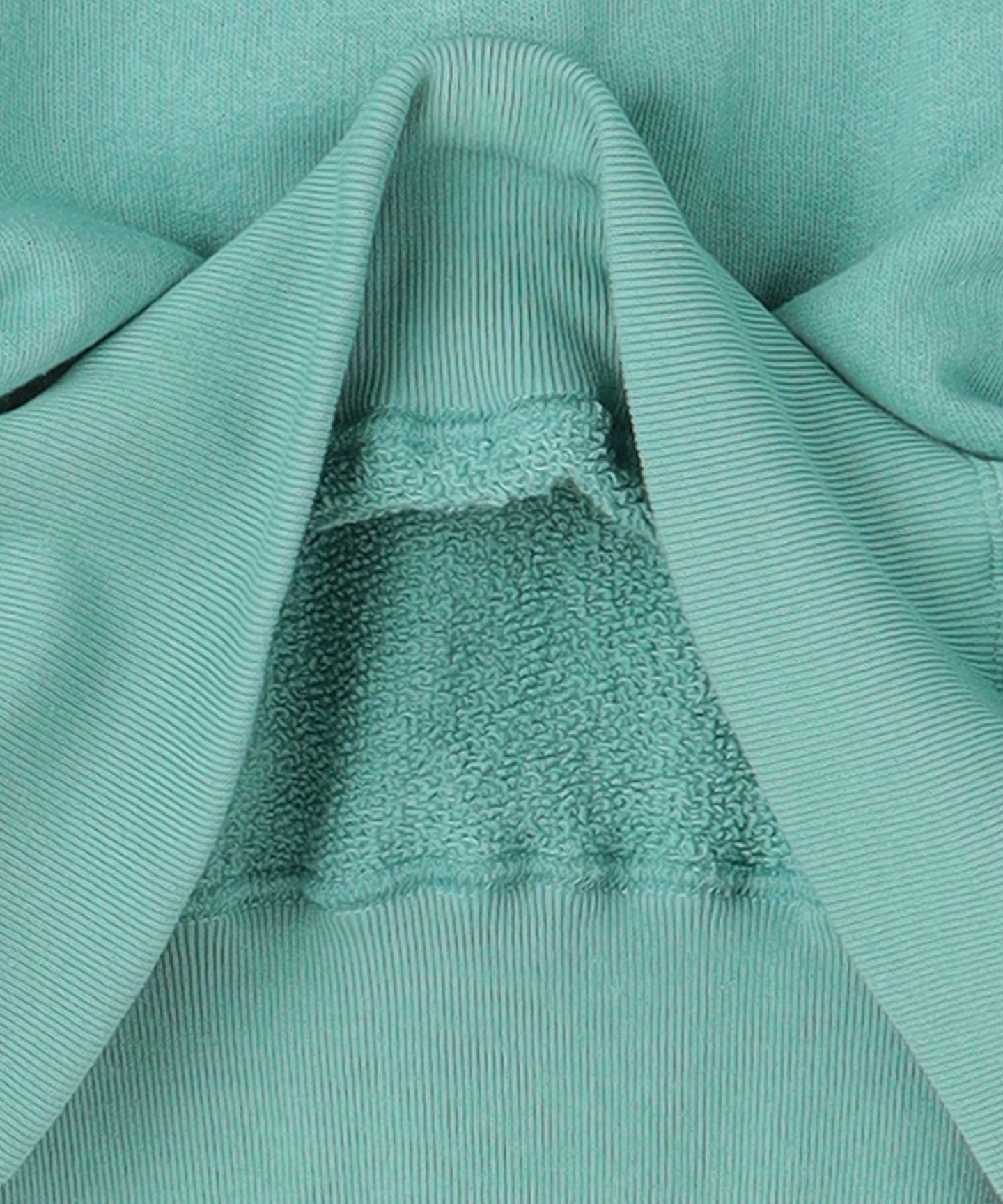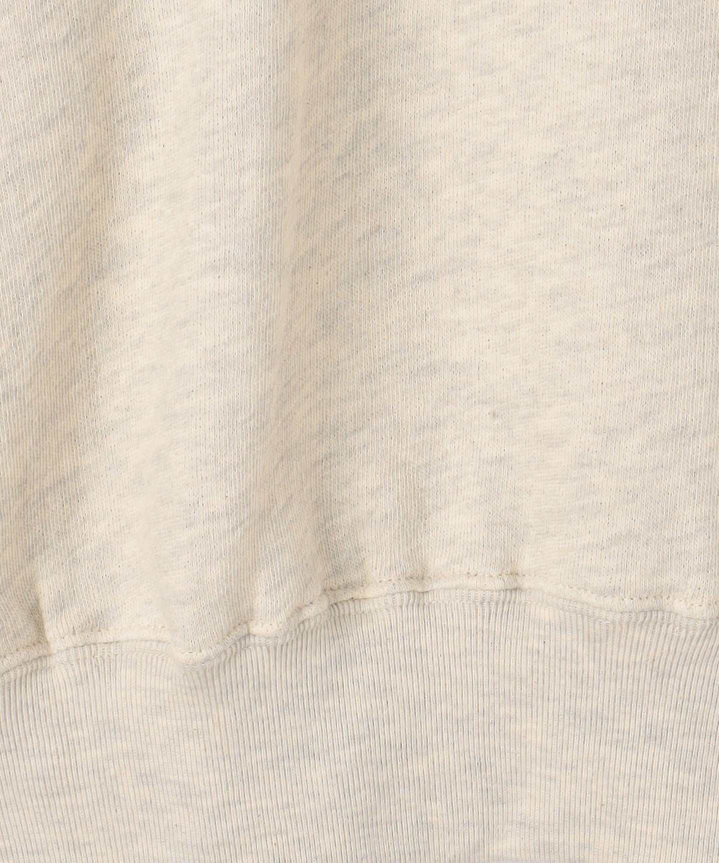 The sweatshirt material is knitted on an old-fashioned hanging knitting machine, allowing for a loose stitch, and is knitted slowly over a period of more than twice as long as regular sweatshirt fabric.