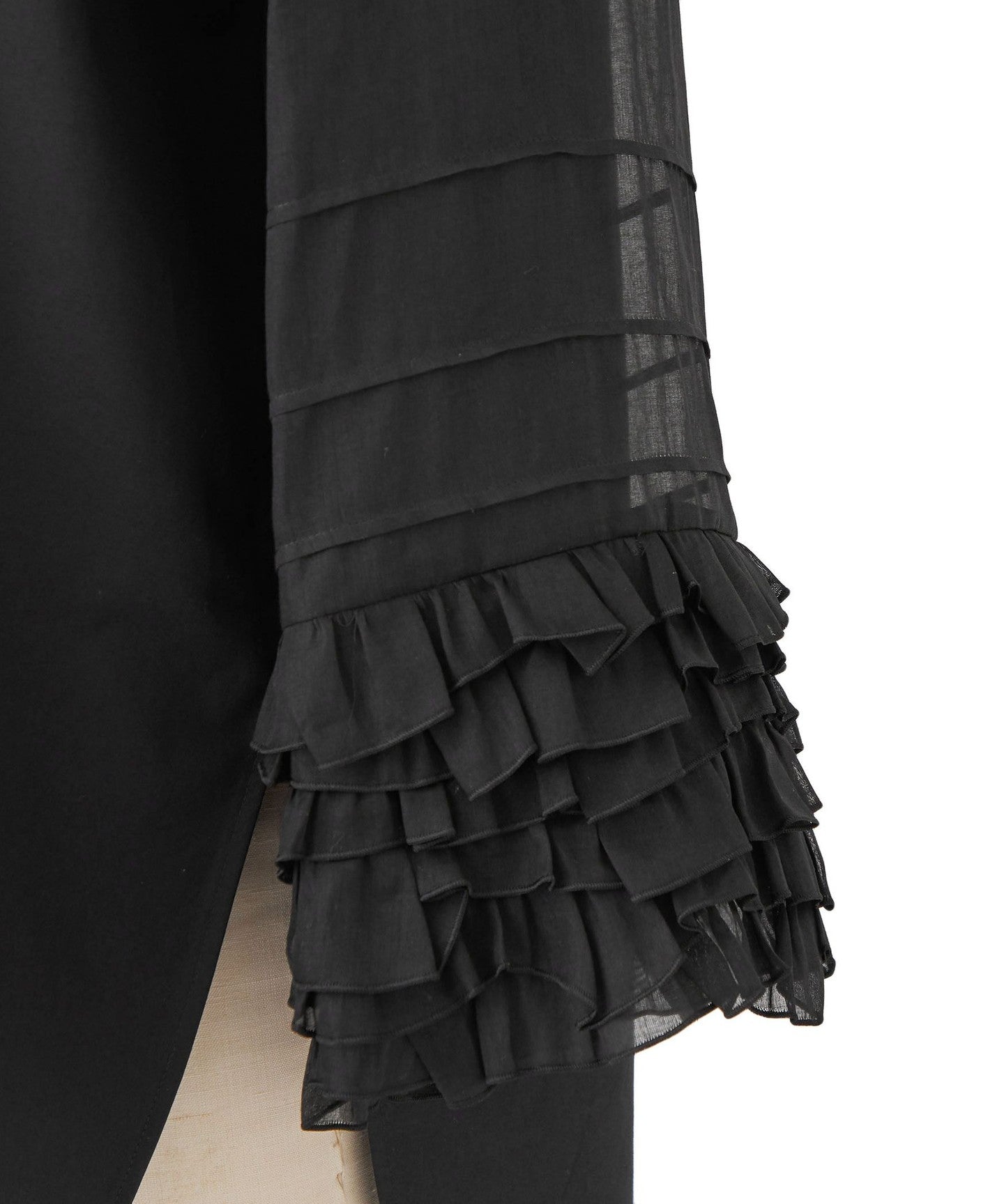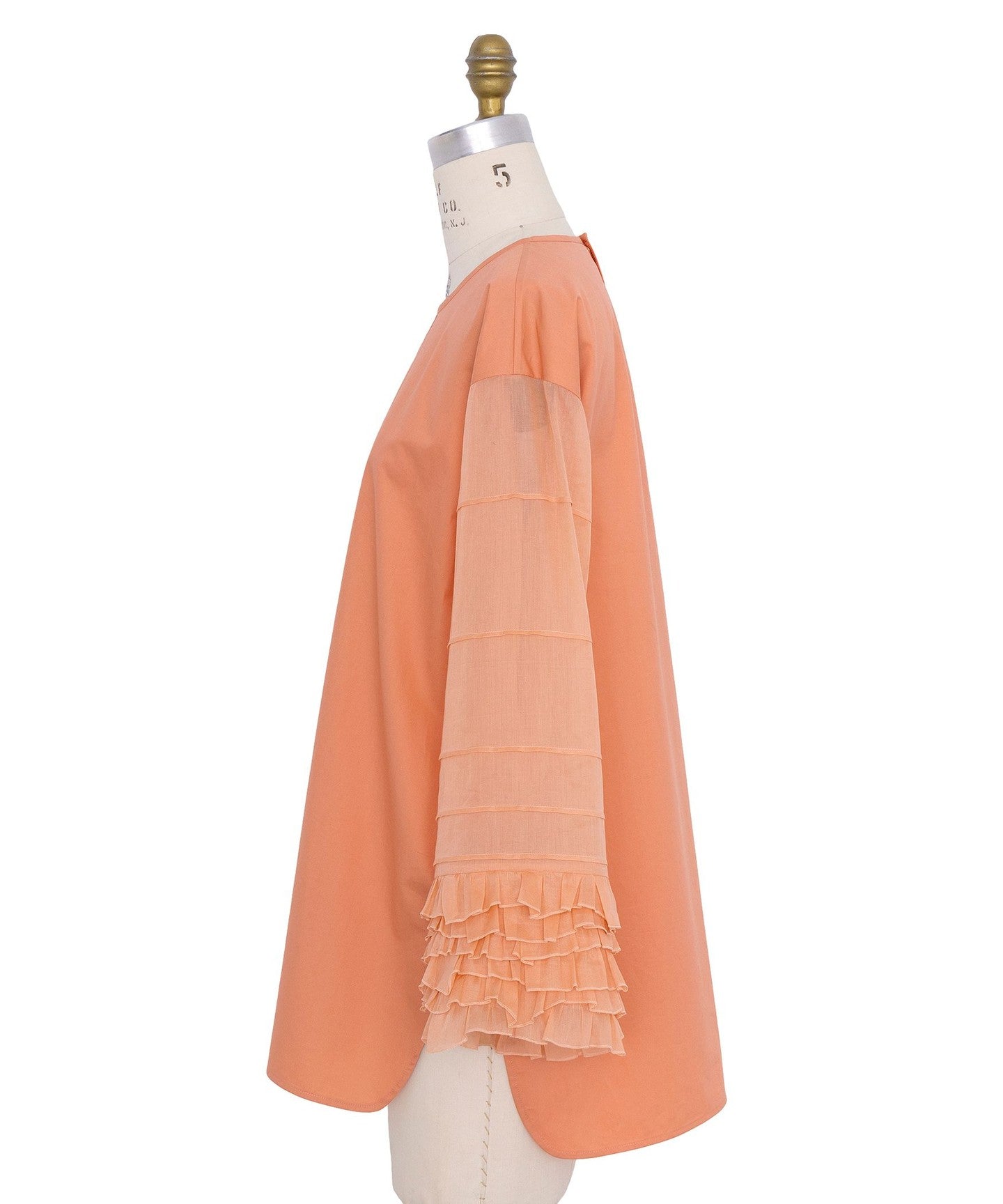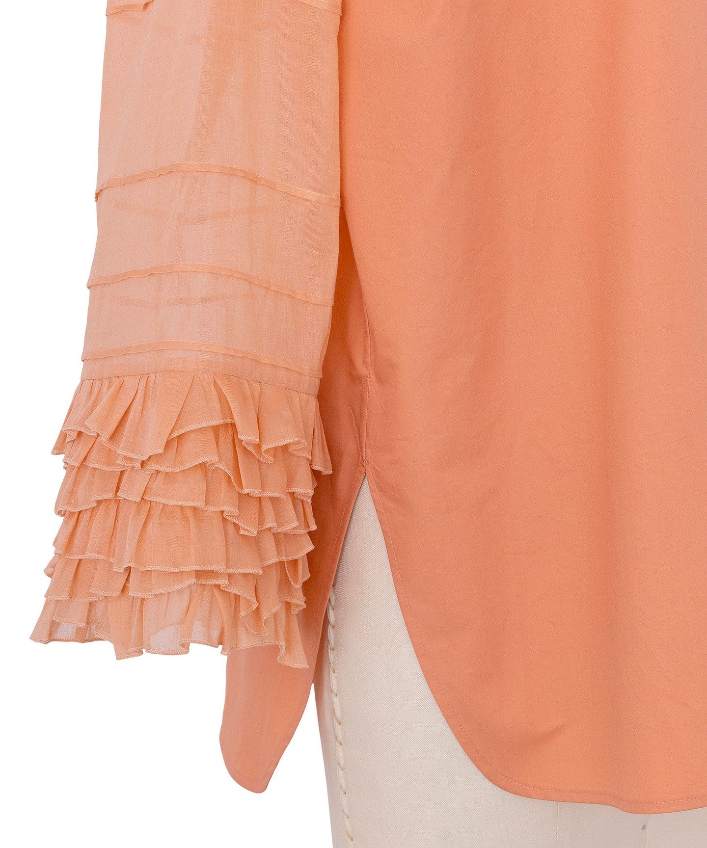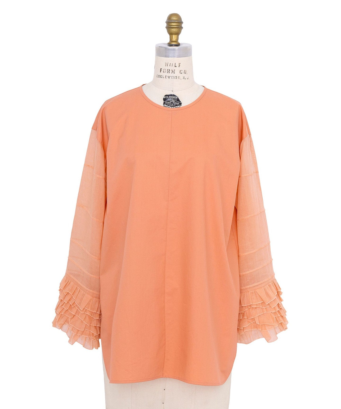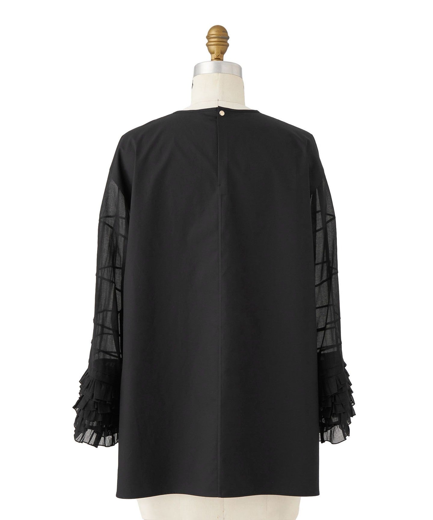 A blouse with sheer ruffle sleeves that gives an elegant look