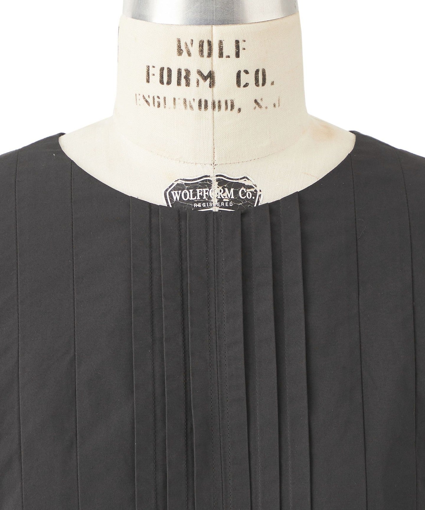A sleeveless blouse with random tucks extending from the chest, creating a voluminous flared line.