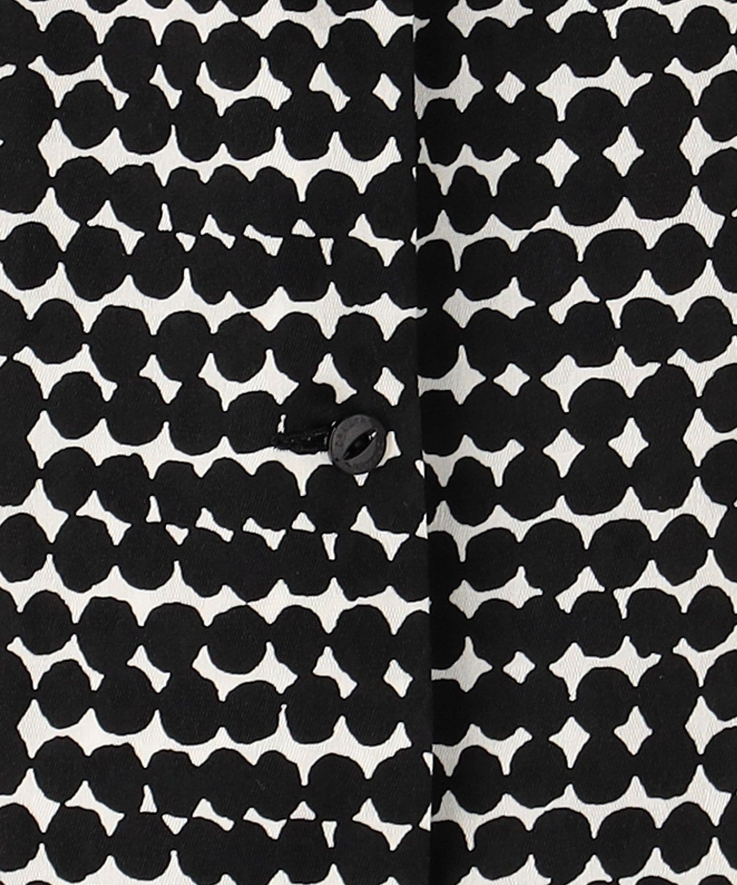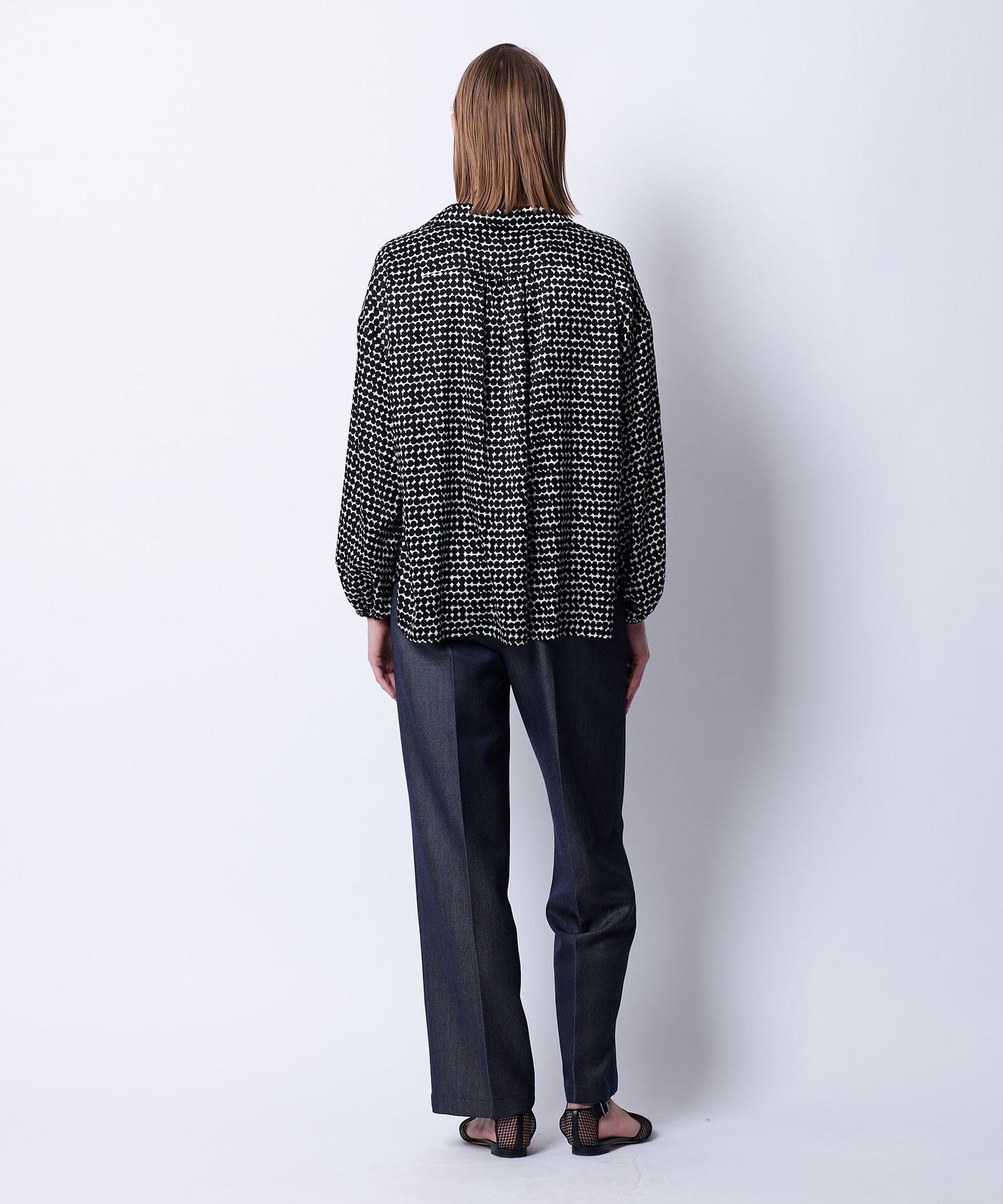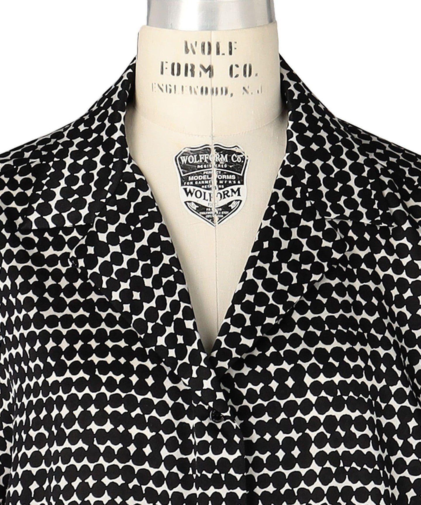 A front button blouse with an eye-catching polka dot pattern that gives it a modern feel.