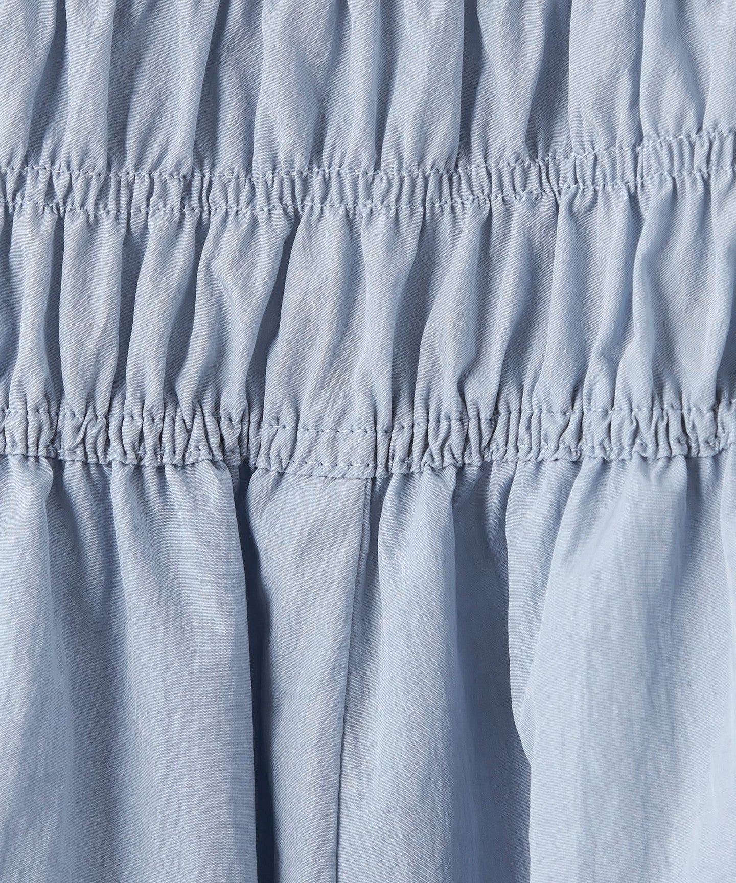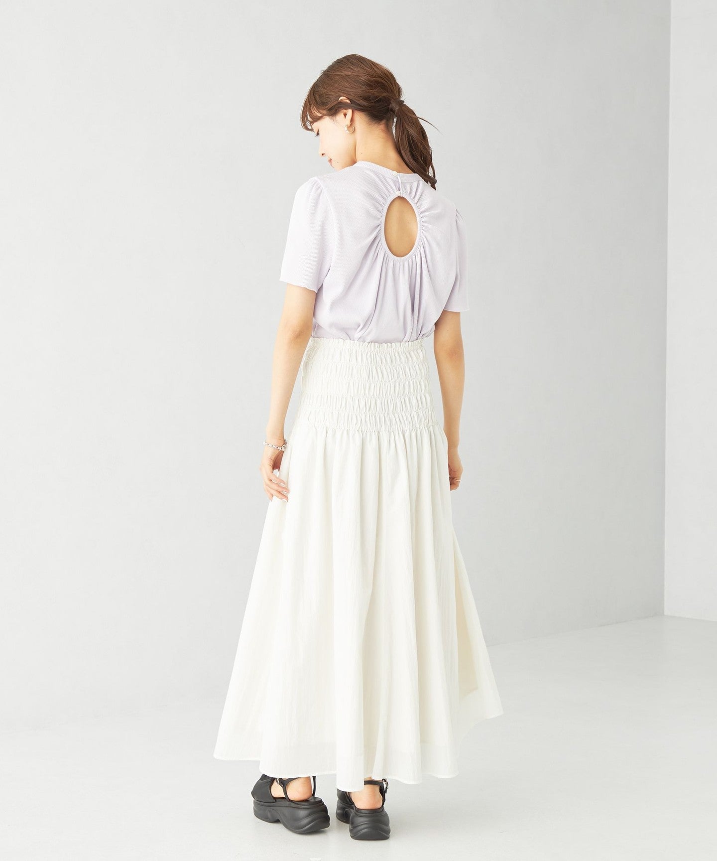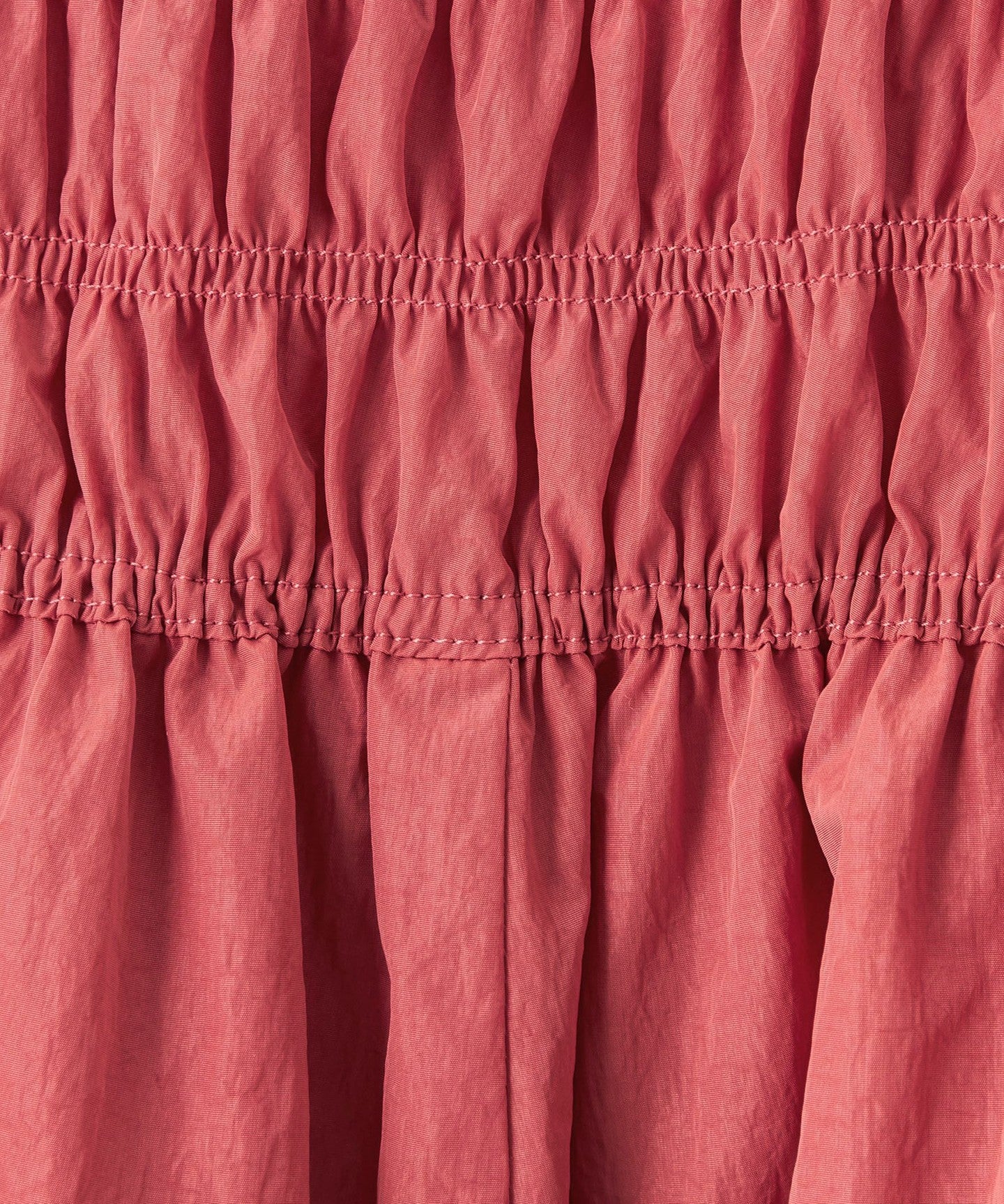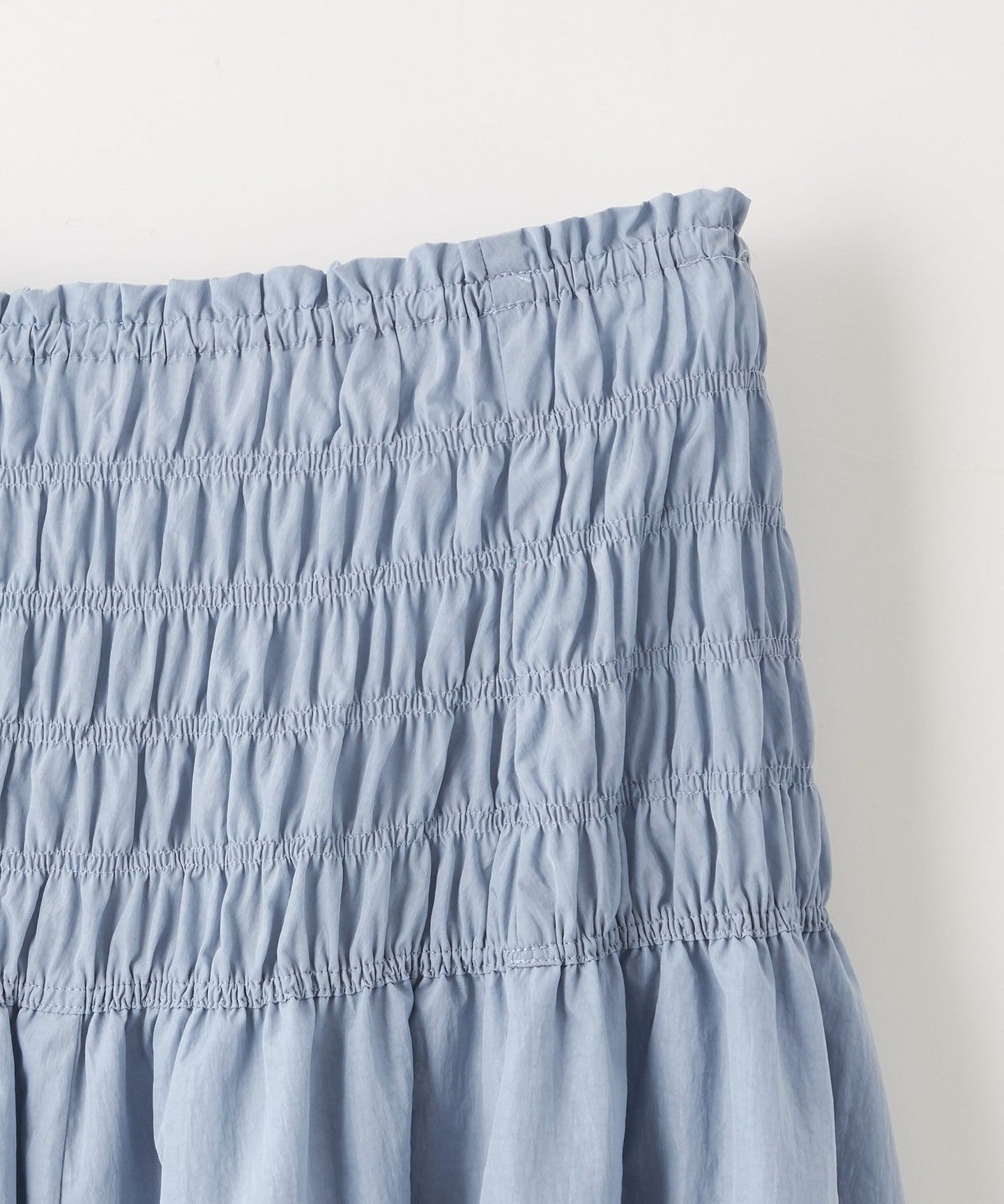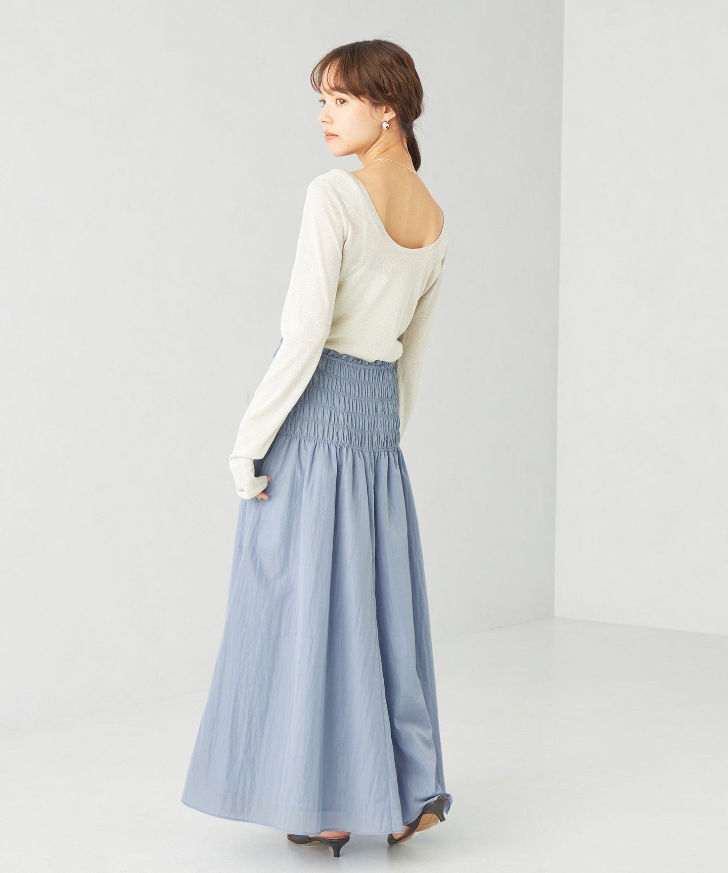 This long skirt's vibrant color will look great with any spring or summer outfit, and the shirring at the waist and dramatic silhouette are key features.