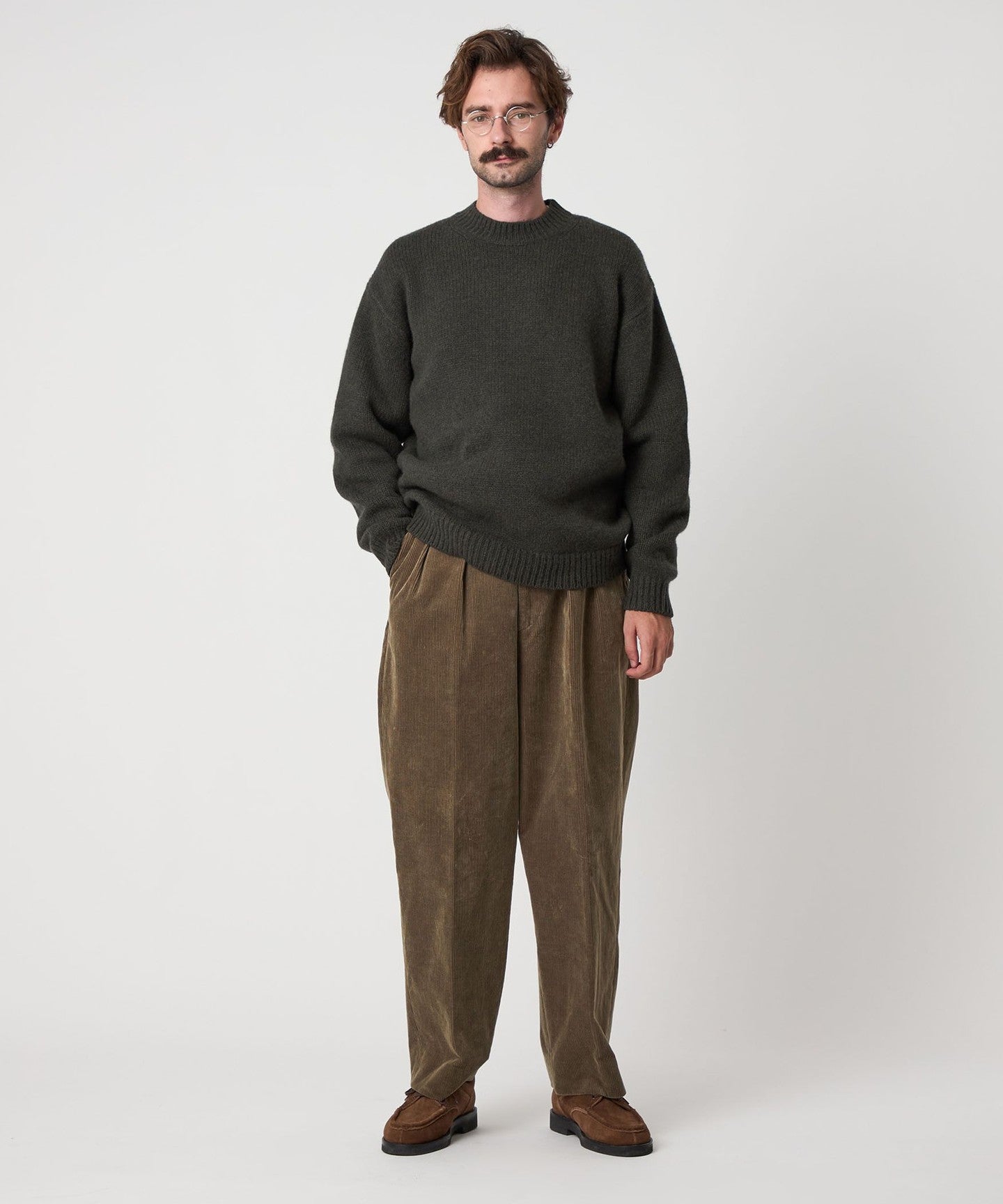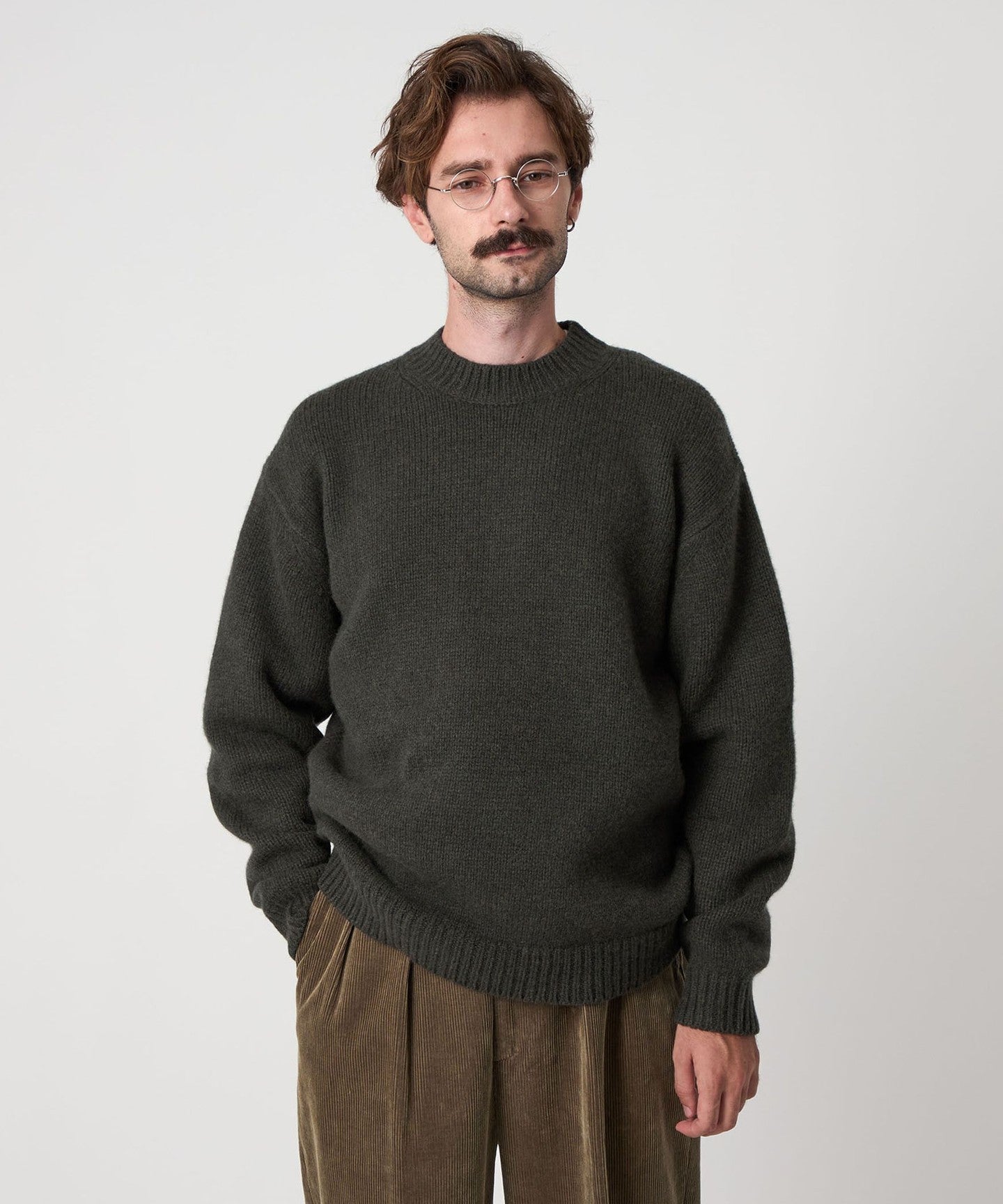 A crew neck knit featuring a fresh neck design that is set slightly higher.