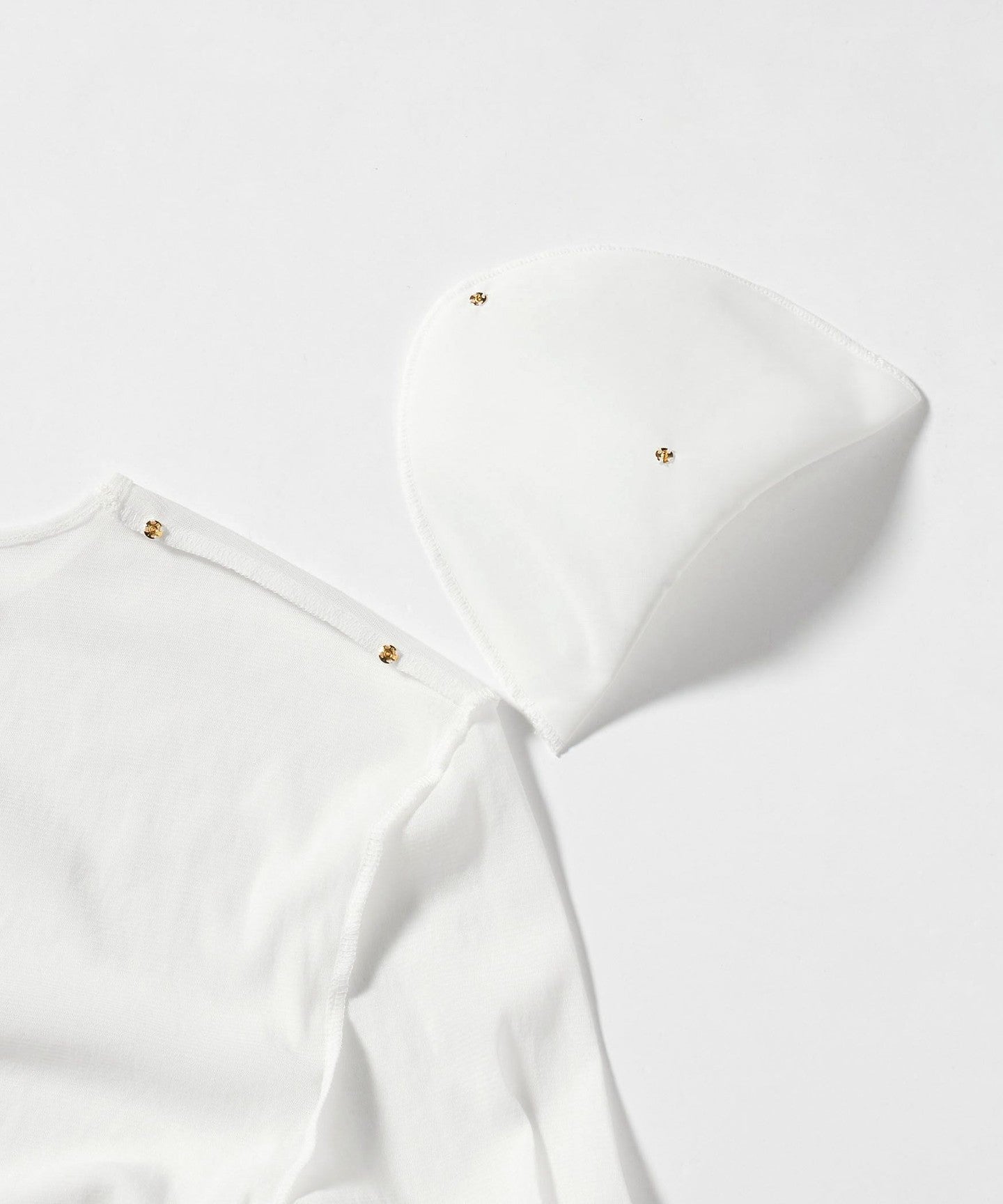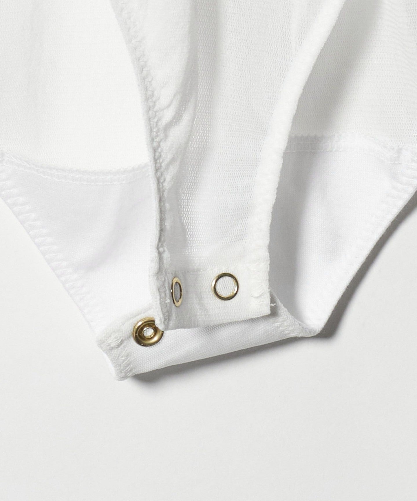 <6(ROKU)>Nylon Tulle Shoulder Pad Bodysuit