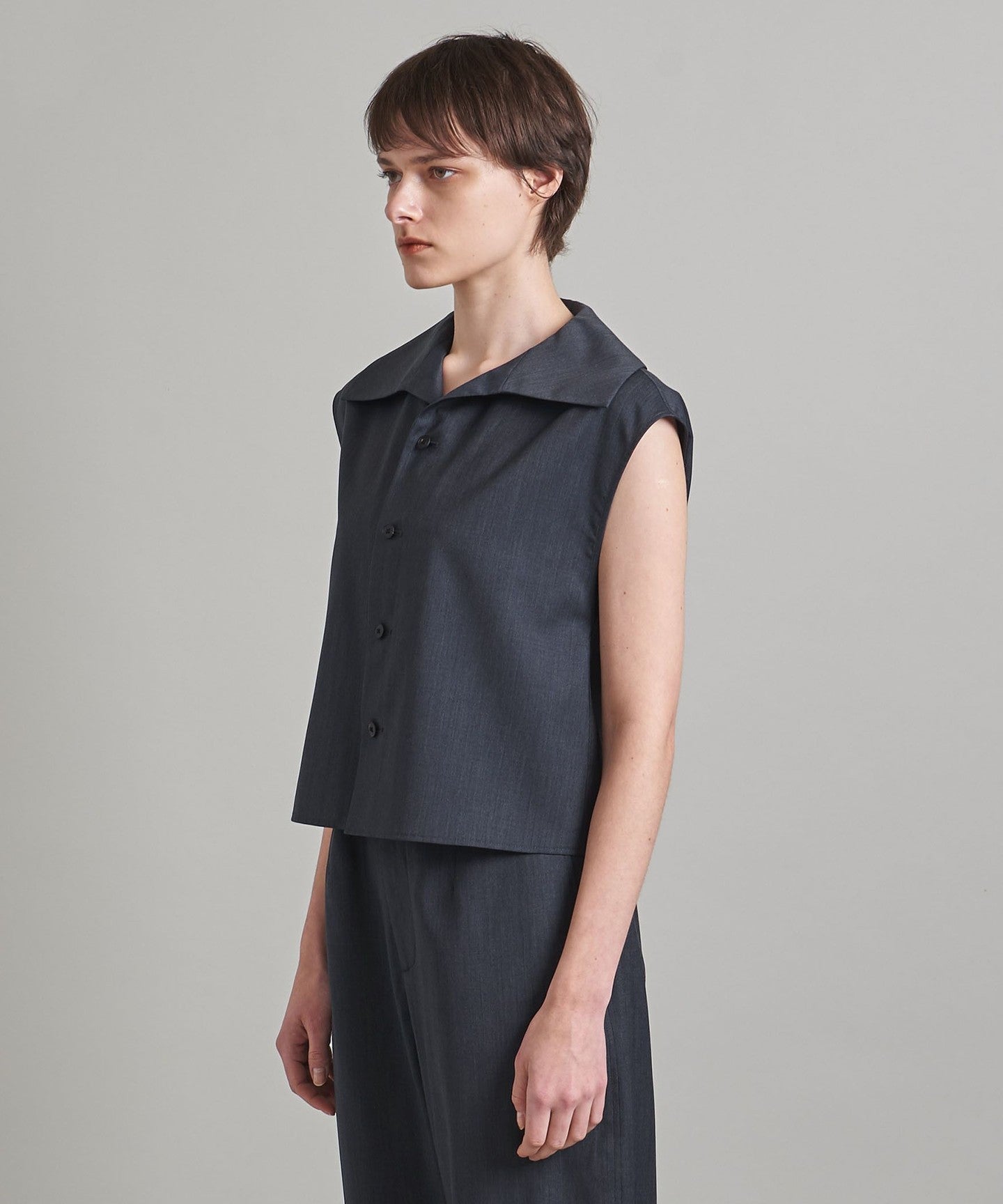A sailor collar vest made of summer wool that feels comfortable against bare skin.