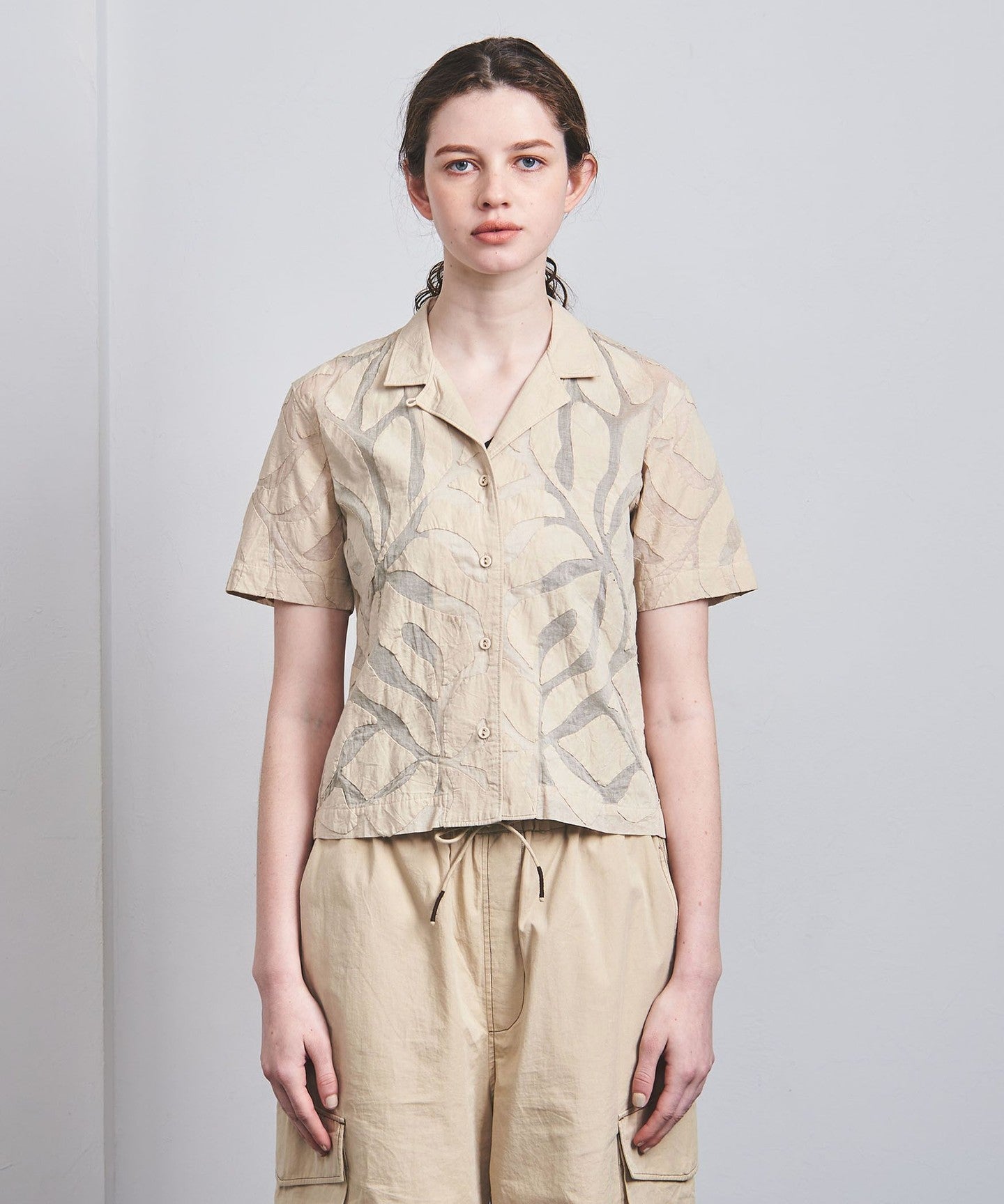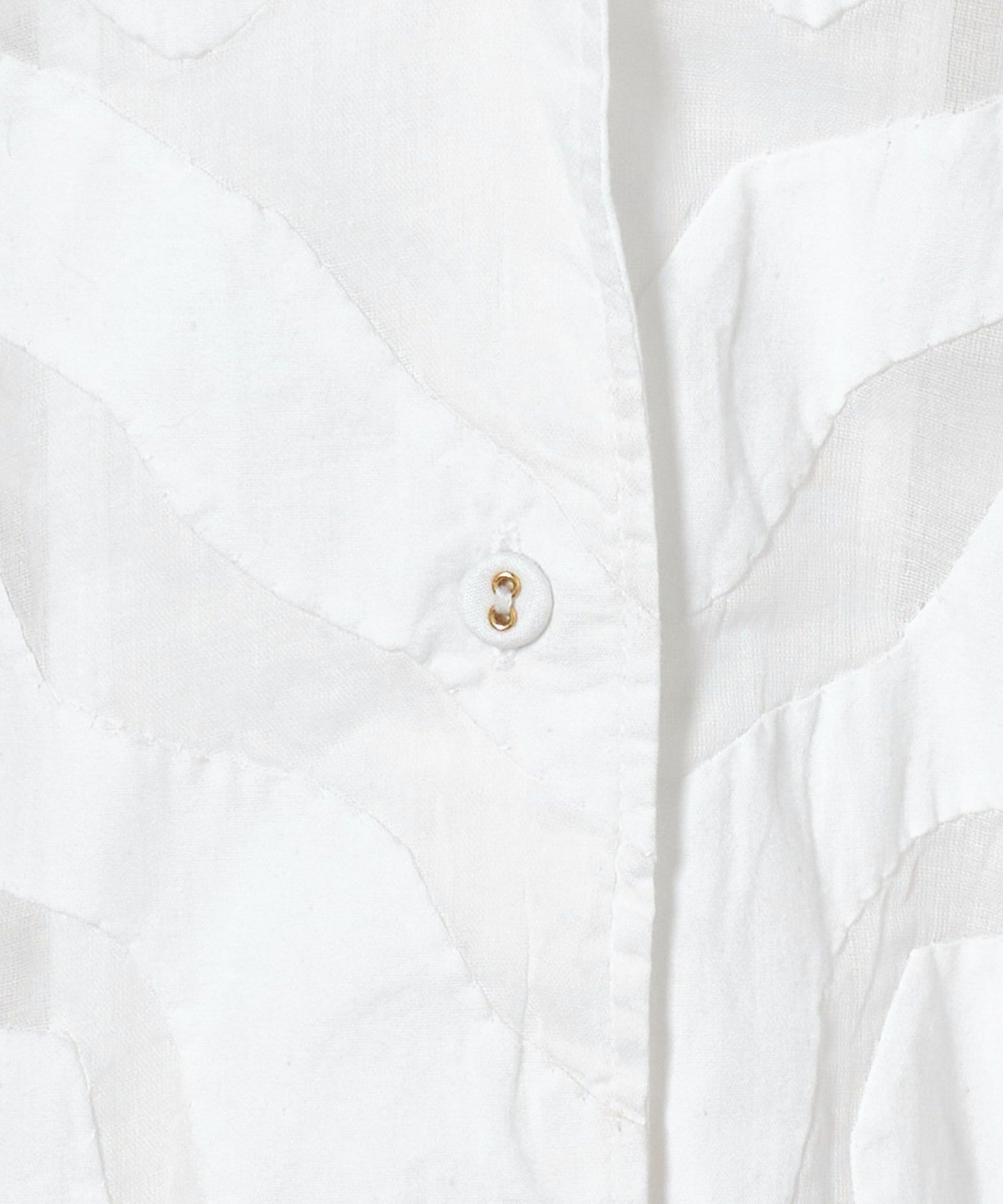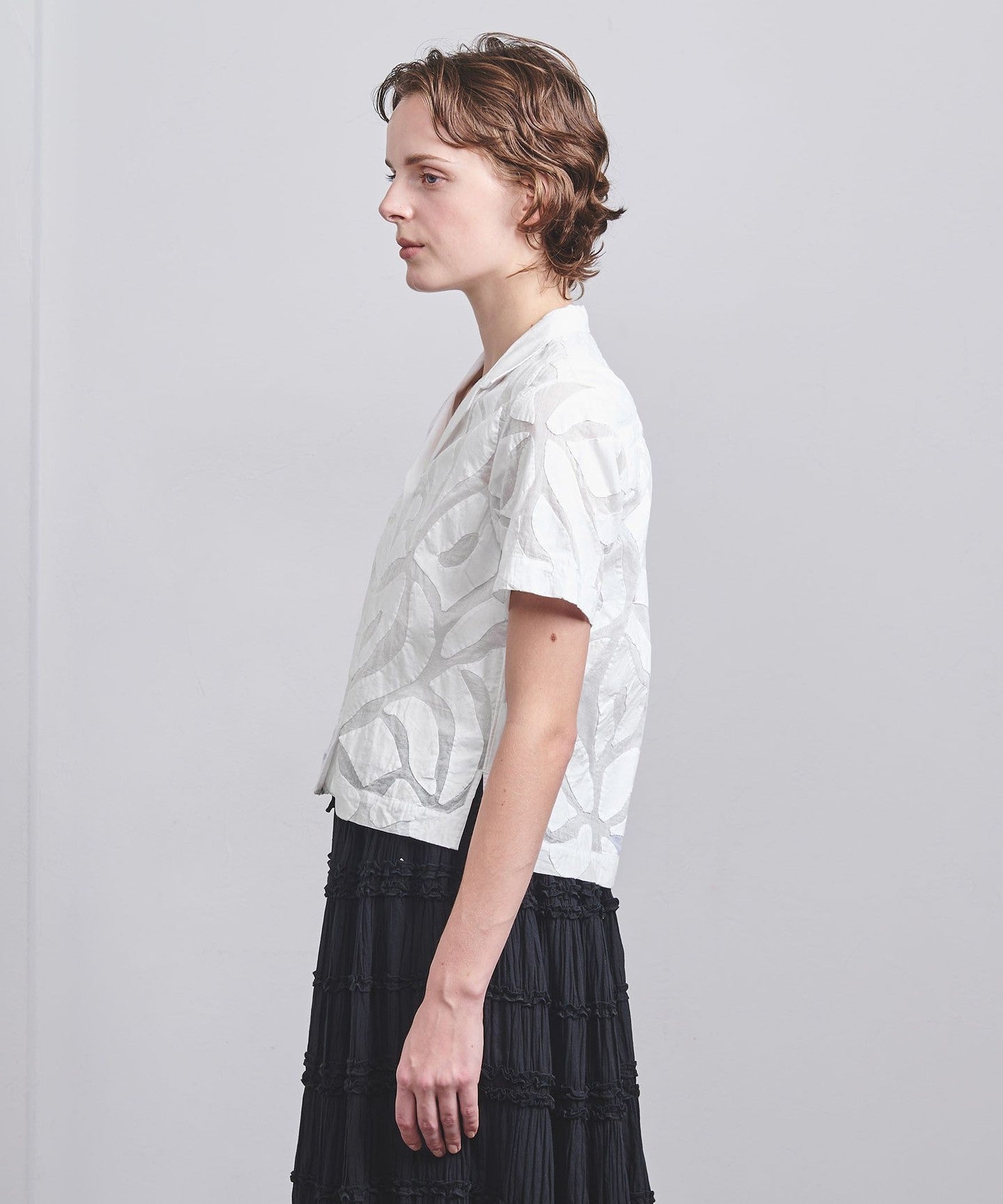 Each piece is individually drawn, with designs that resemble maps or flowers. SHELL Short sleeves with hand-sewn appliqués cut out SHIRT .