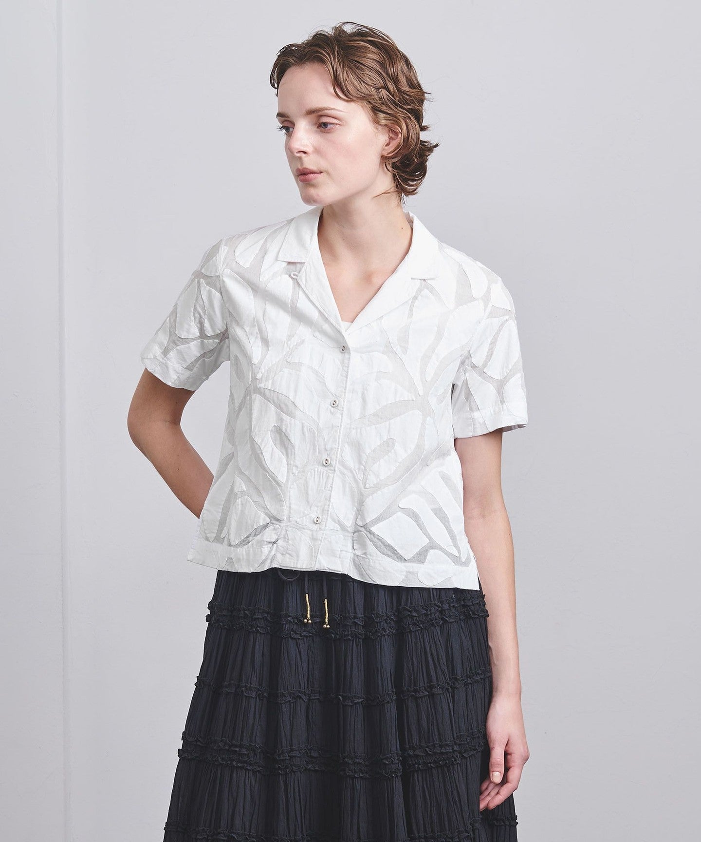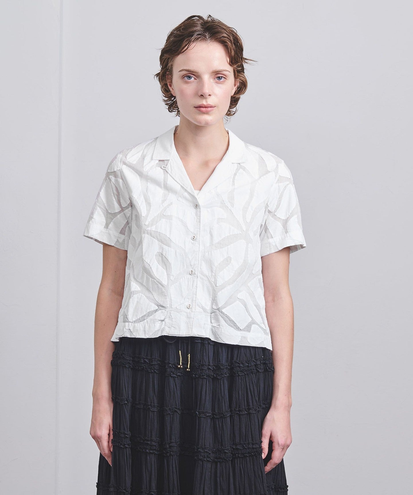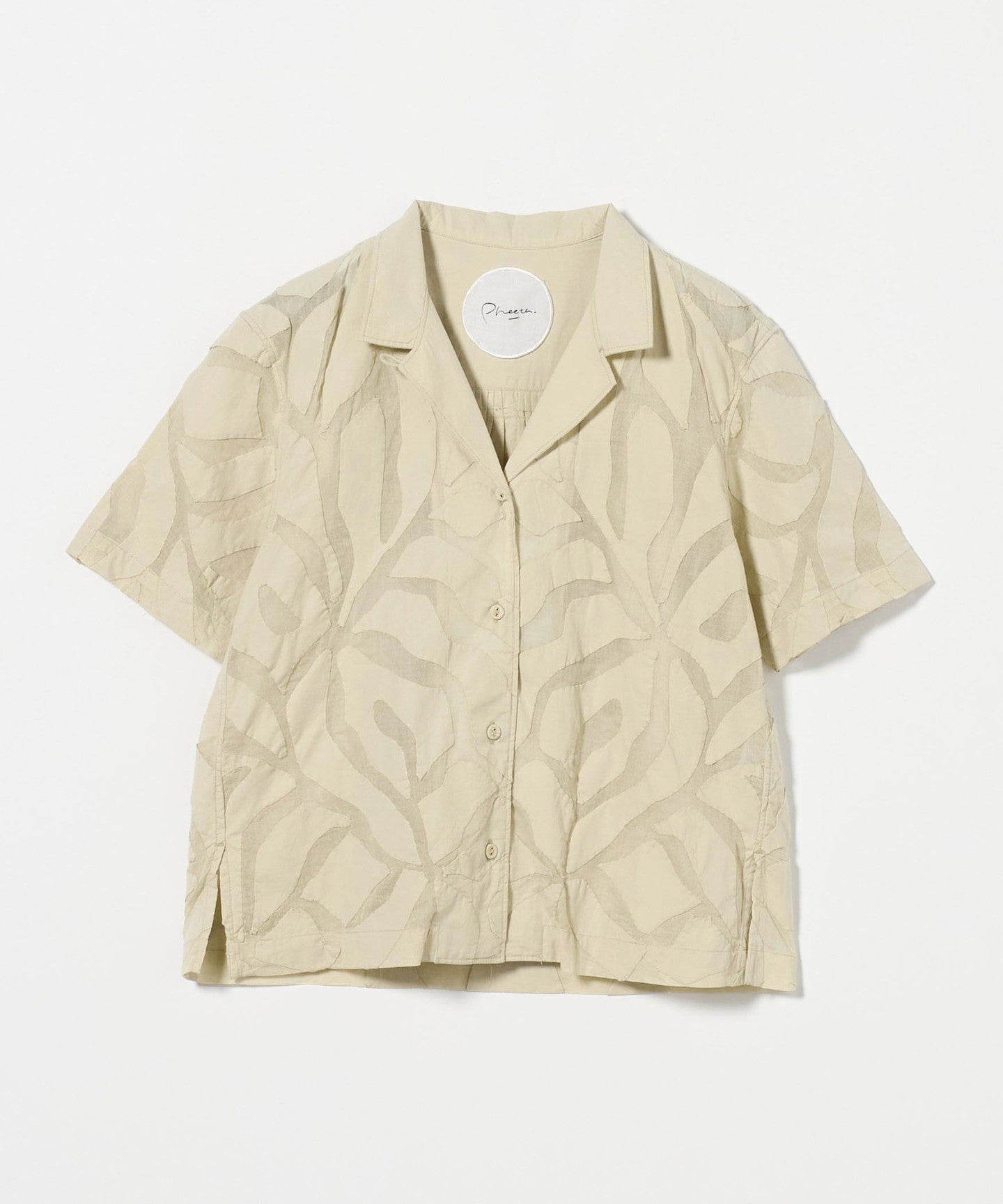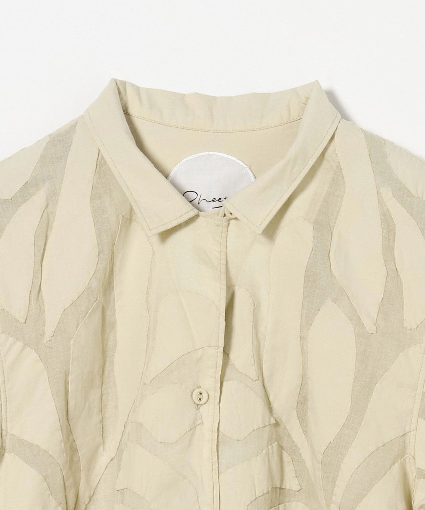 Each piece is individually drawn, with designs that resemble maps or flowers. SHELL Short sleeves with hand-sewn appliqués cut out SHIRT .