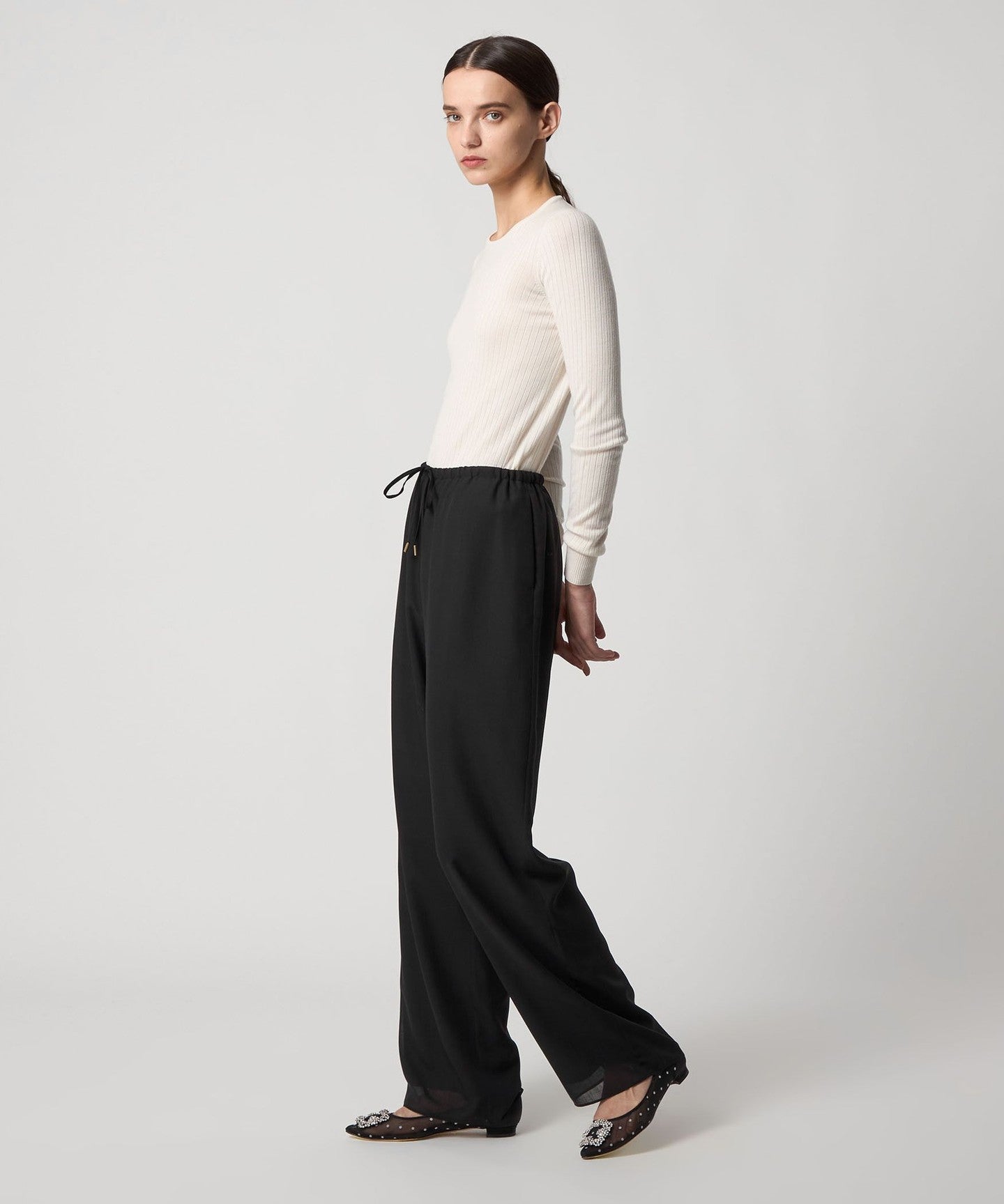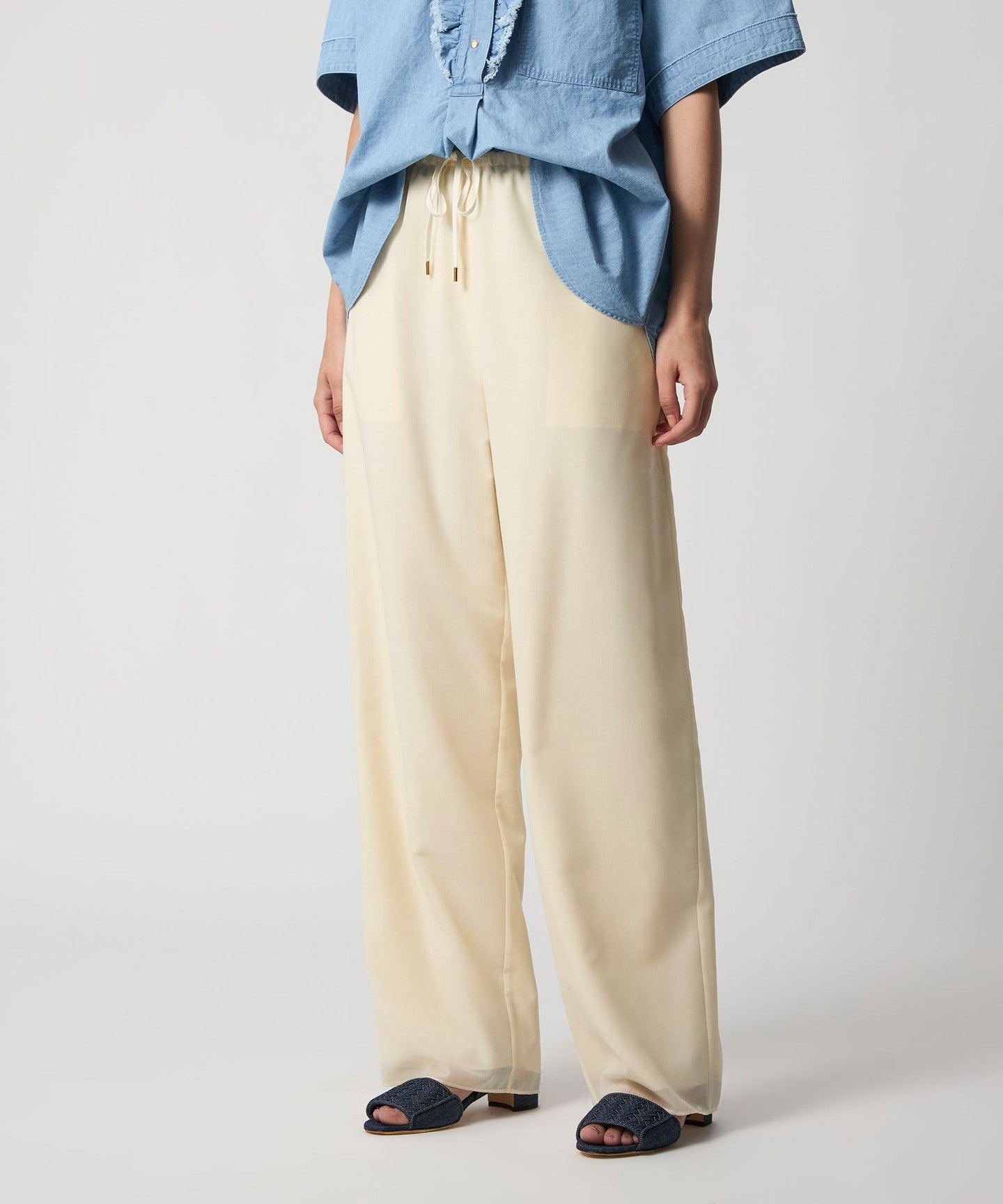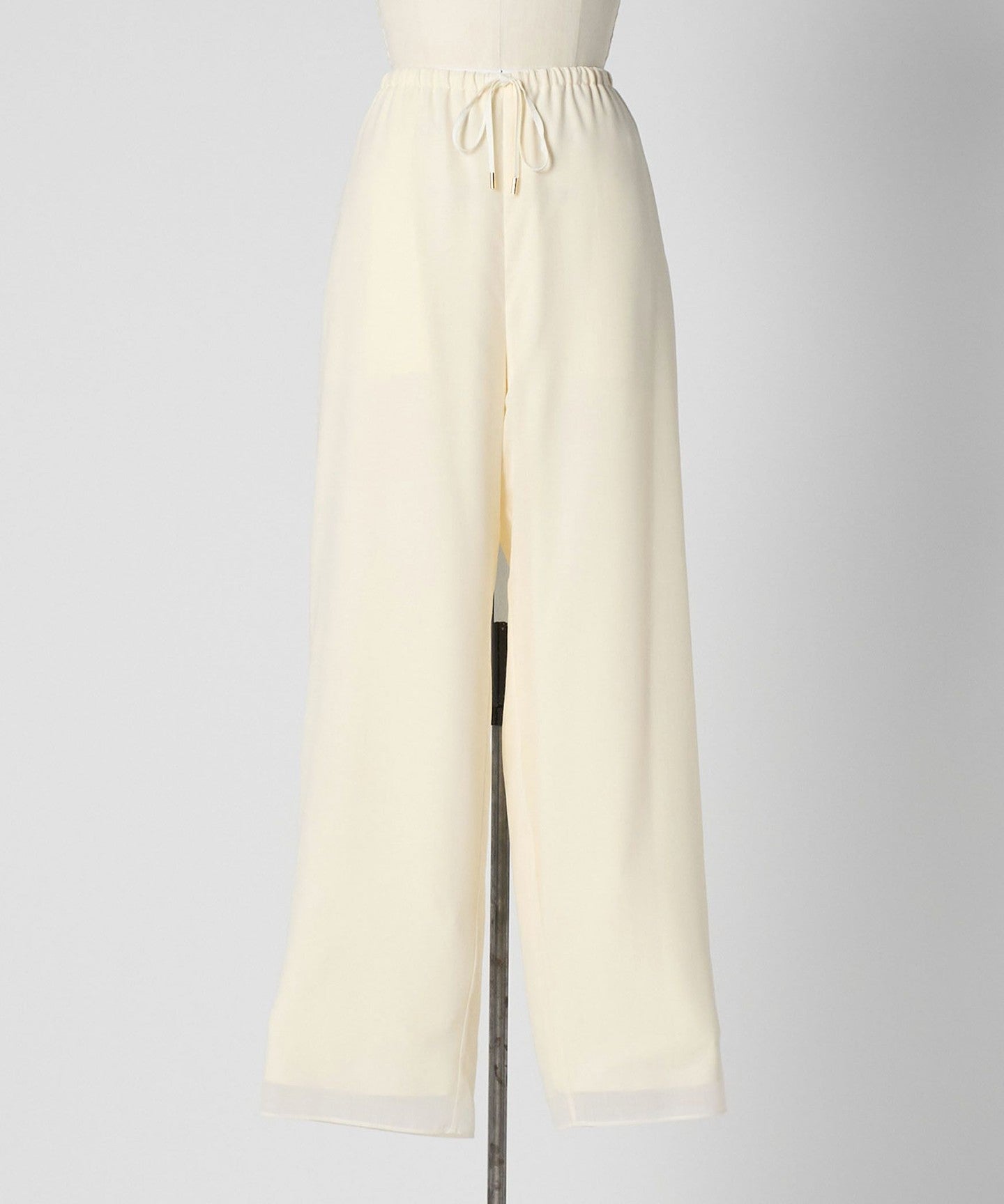 Drawstring pants with a delicate sheer feel that gives off an elegant vibe.